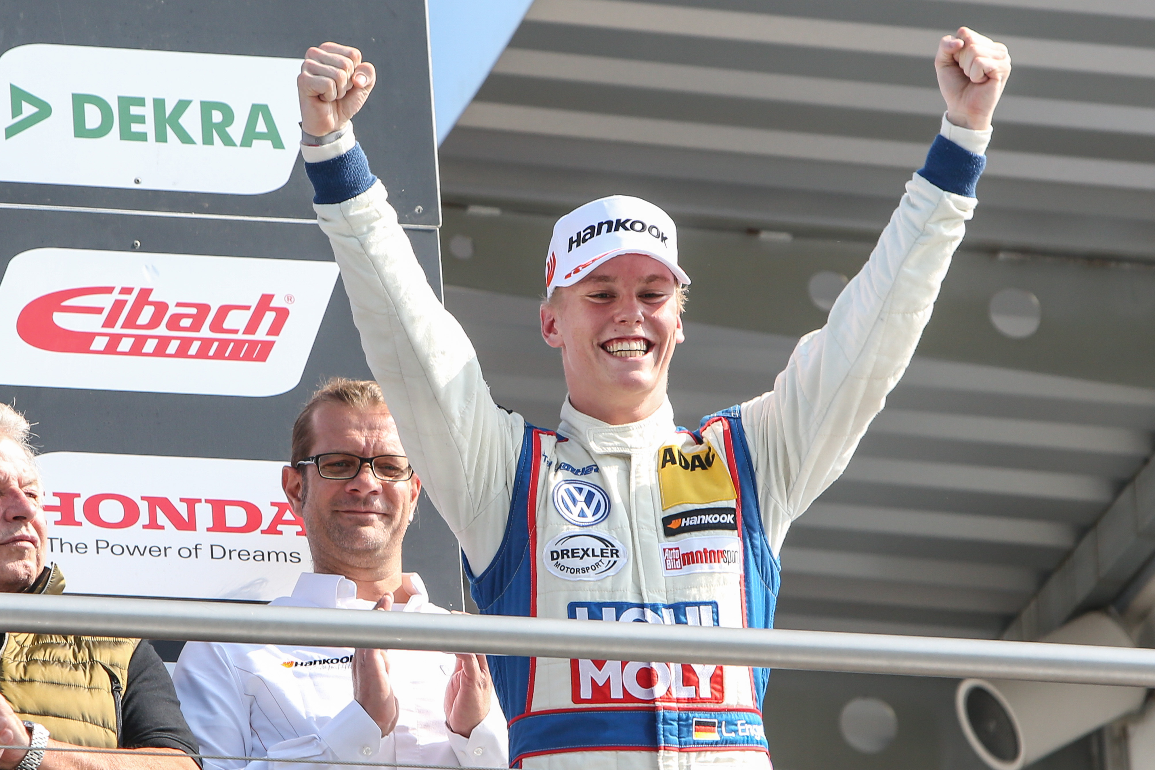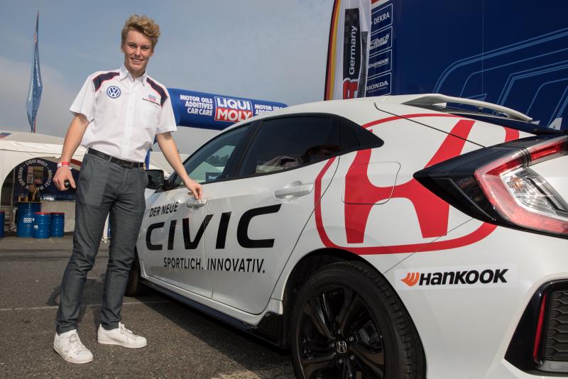 In dieser Saison hatte Luca Engstler (17, Wiggensbach, LIQUI MOLY Team Engstler) die Wertung dominiert und durfte sich exakt vier Wochen vor Weihnachten am 24. November seine Siegprämie abholen. Aus den Händen von Kniedel erhielt der 17-Jährige die Schlüssel für einen neuen Honda Civic. Für Engstler kommt die Prämie übrigens zu einem perfekten Zeitpunkt. Anfang November hatte der Gymnasiast, der im Frühjahr sein Abitur macht und am 8. März 2018 volljährig wird, die theoretische Führerscheinprüfung bestanden. Noch vor Weihnachten soll die Praxisprüfung folgen. „Das ist ein mega Auto. Das ist für uns Rookies eine phantastische Wertschätzung unserer Leistungen und dafür bin ich mehr als dankbar. Bei der ersten Runde im Honda war ich leider nur als Beifahrer dabei, ich darf ja noch nicht fahren“, freut sich Engstler jr. auf seine persönliche Premiere am Steuer des Honda Civic mit 1.5-VTEC-TURBO-Motor und 182 PS: „Es wird echt Zeit, dass ich 18 werde.“
