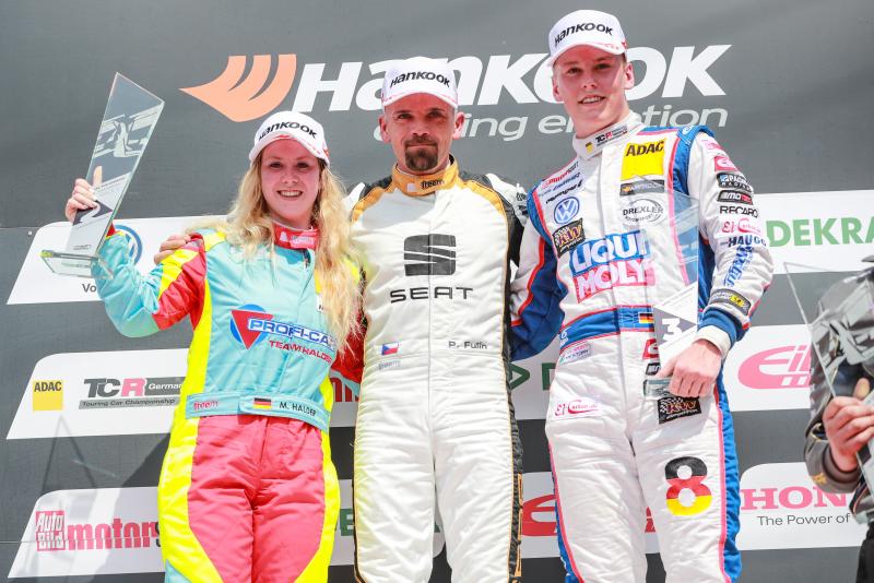 Der Tscheche Fulin, der etwa 80 km von Most entfernt zu Hause ist, gewann am Sonntag vor Rookie Michelle Halder (18, Meßkirch, Profi-Car Team Halder), die ihren zweiten Platz nervenstark ins Ziel brachte und damit für eine große Überraschung sorgte. Michelle Halder ist die erste Frau in der Geschichte der ADAC TCR Germany, die aufs Podium fährt.
