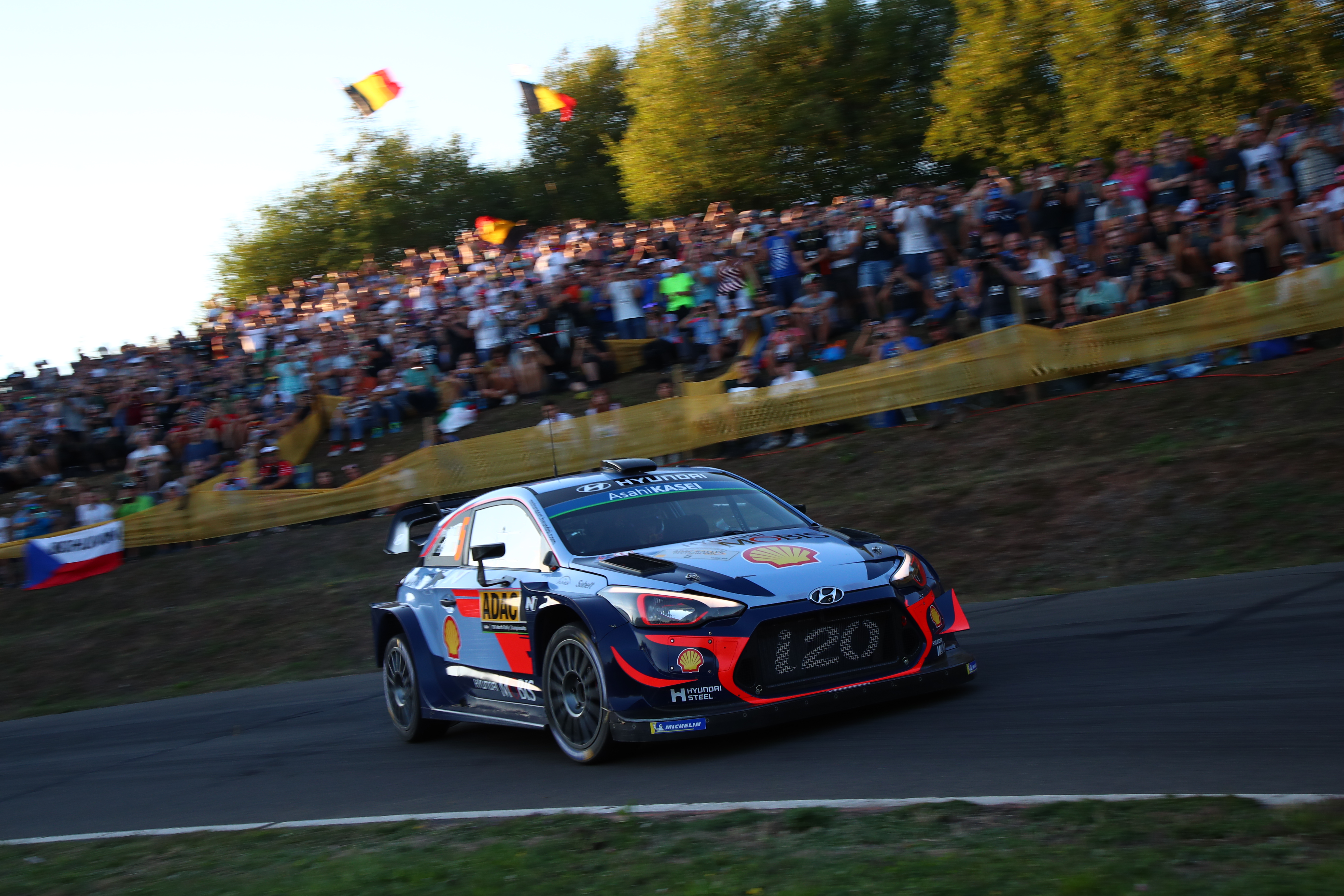 München/St. Wendel. Stimmungsvoller Auftakt, spektakuläre Action, ideale Bedingungen - davon hatte der heutige Eröffnungstag der ADAC Rallye Deutschland 2018 reichlich zu bieten. Den sportlichen Höhepunkt erlebten die Fans bei der ersten Wertungsprüfung des deutschen WM-Laufs, die im neuen Start- und Zielort St. Wendel stattfand. Im Arena-artigen Wendelinuspark meisterten die Teilnehmer einen 2,04 km langen Rundkurs und sorgten mit millimetergenauen Drifts für Begeisterung.