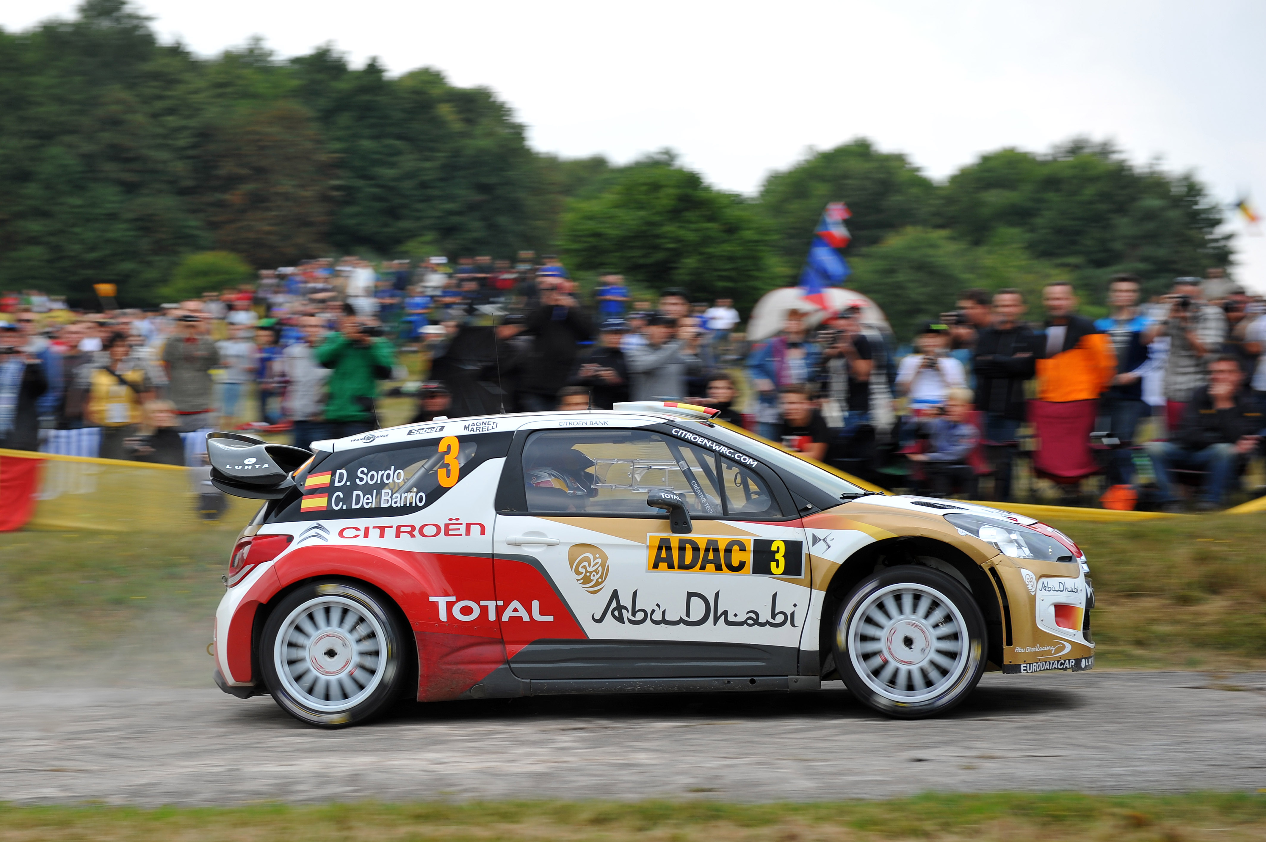 Munich/Trier, 24 August 2013 – A lead change in the ADAC Rallye Deutschland. Finn Jari-Matti Latvala had to retire early from the Saturday of the rally. On the twelfth stage of the ADAC Rallye Deutschland, in rainy conditions, the Finn slid off the road and damaged the rear of his Volkswagen Polo R WRC in such a way that he was forced to retire. While his team-mate Sébastien Ogier showed a remarkable recovery, Ford driver Thierry Neuville and Citroën’s Daniel Sordo had a fascinating battle for the overall lead in the rally. Belgian driver Neuville having damaged the exhaust on the same special stage and thus losing engine power, Spaniard Sordo moved up into the lead with the tiny margin of only 0.8 seconds.