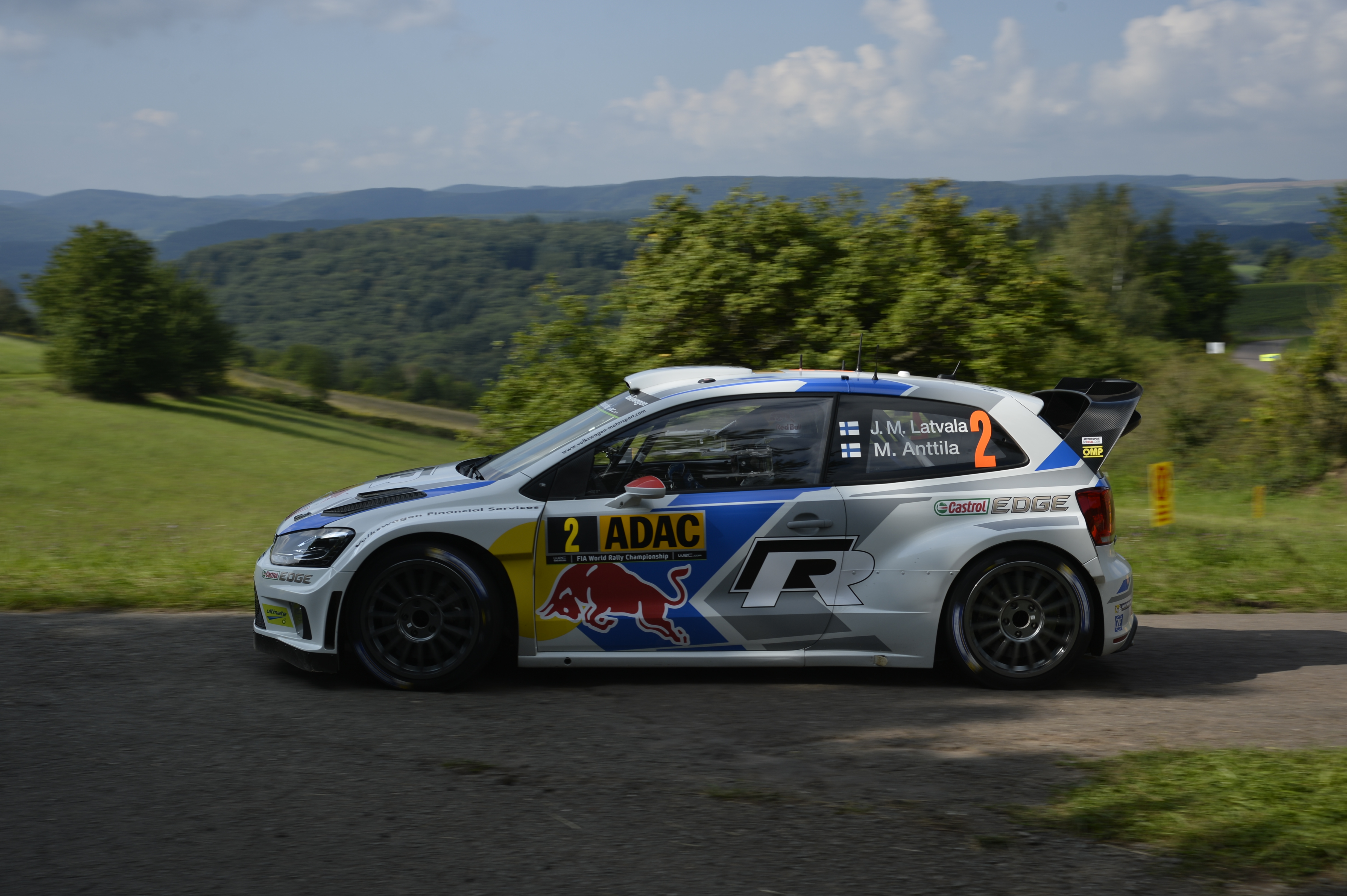 Munich/Trier, 21 August 2014 – Volkswagen driver Jari-Matti Latvala marked the fastest time in the shakedown, the final test prior to the start of the ADAC Rallye Deutschland. At the 4.4 kilometres long track near Konz, Finnish driver Latvala set a fastest time of 2:20.8 minutes and ranked ahead of his team-mate, reigning world champion Sébastien Ogier (2:21.3 min.) and Andreas Mikkelsen (2:21.9 min.), also driving for Volkswagen. Citroën driver Kris Meeke (2:22.5 min.) and Hyundai’s Dani Sordo (2:23.0 min.) followed in fourth and fifth place. Thierry Neuville, who finished second last year, had bad luck. The Belgian came off the road and barrel-rolled his car. He and co-driver Nicolas Gilsoul escaped unscathed. The team tries to repair the damaged World Rally Car for the start on Friday morning.