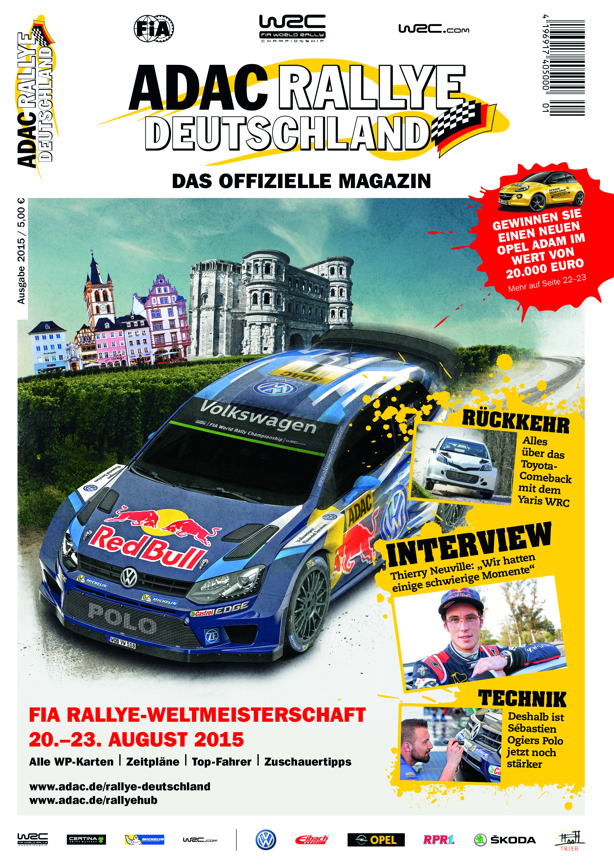 On 84 pages, the magazine highlights the WRC stars and the challenges they will face during the four days of rallying in Germany. In addition to an interview with last year’s winner, Thierry Neuville, the magazine also features interesting background information on the technology of World Champion Sébastien Ogier’s Volkswagen Polo R WRC as well as an article about Toyota’s debut at the WRC.