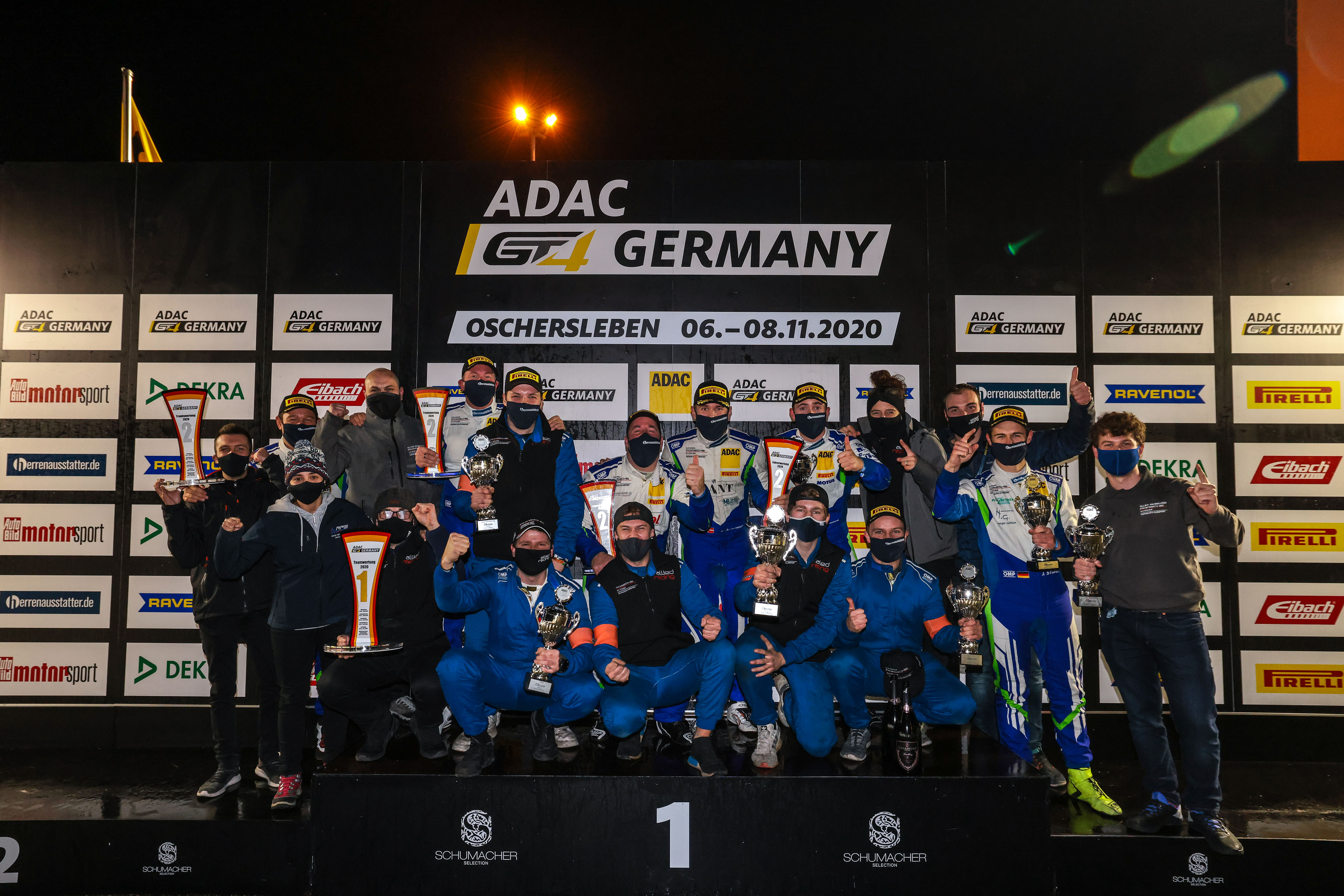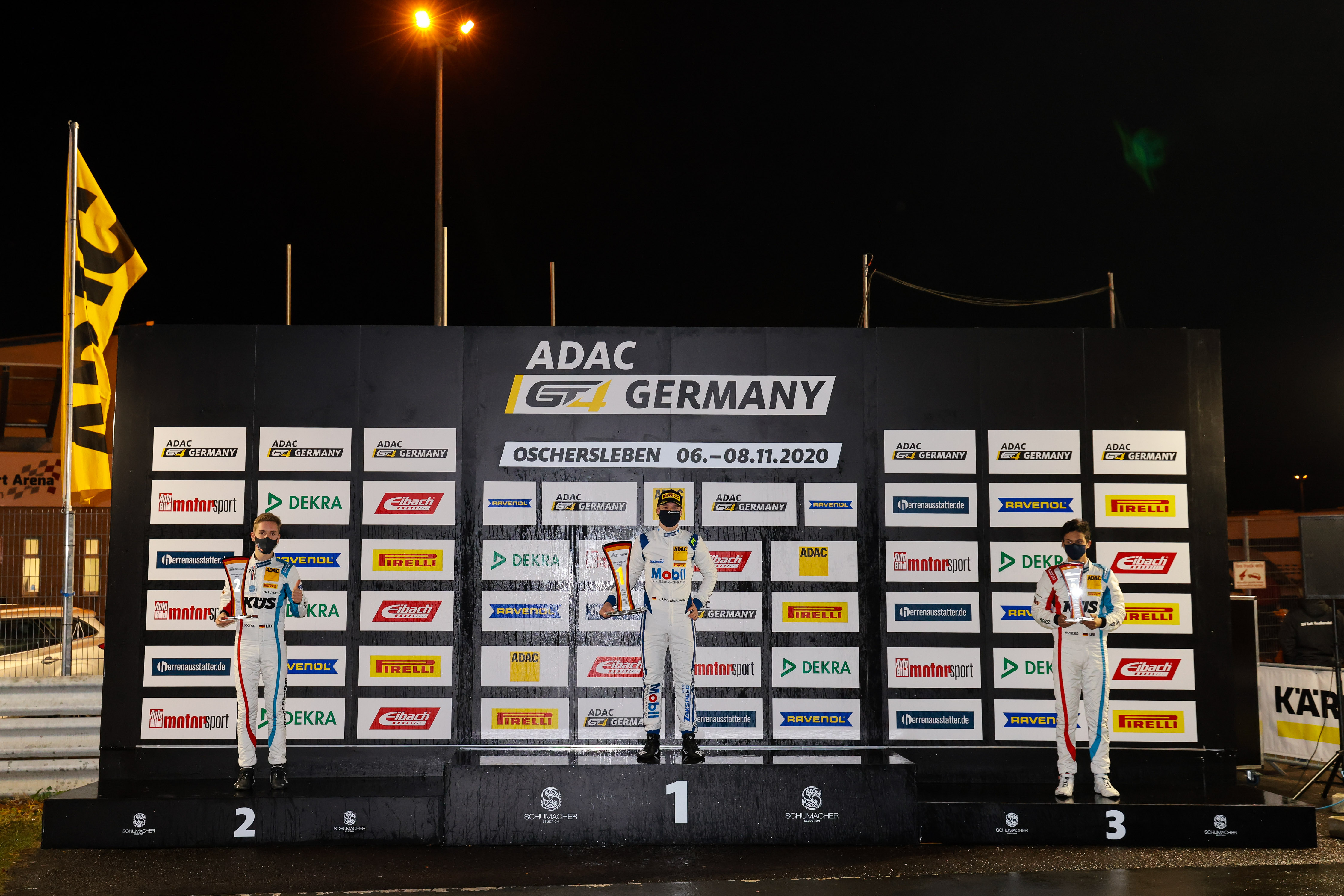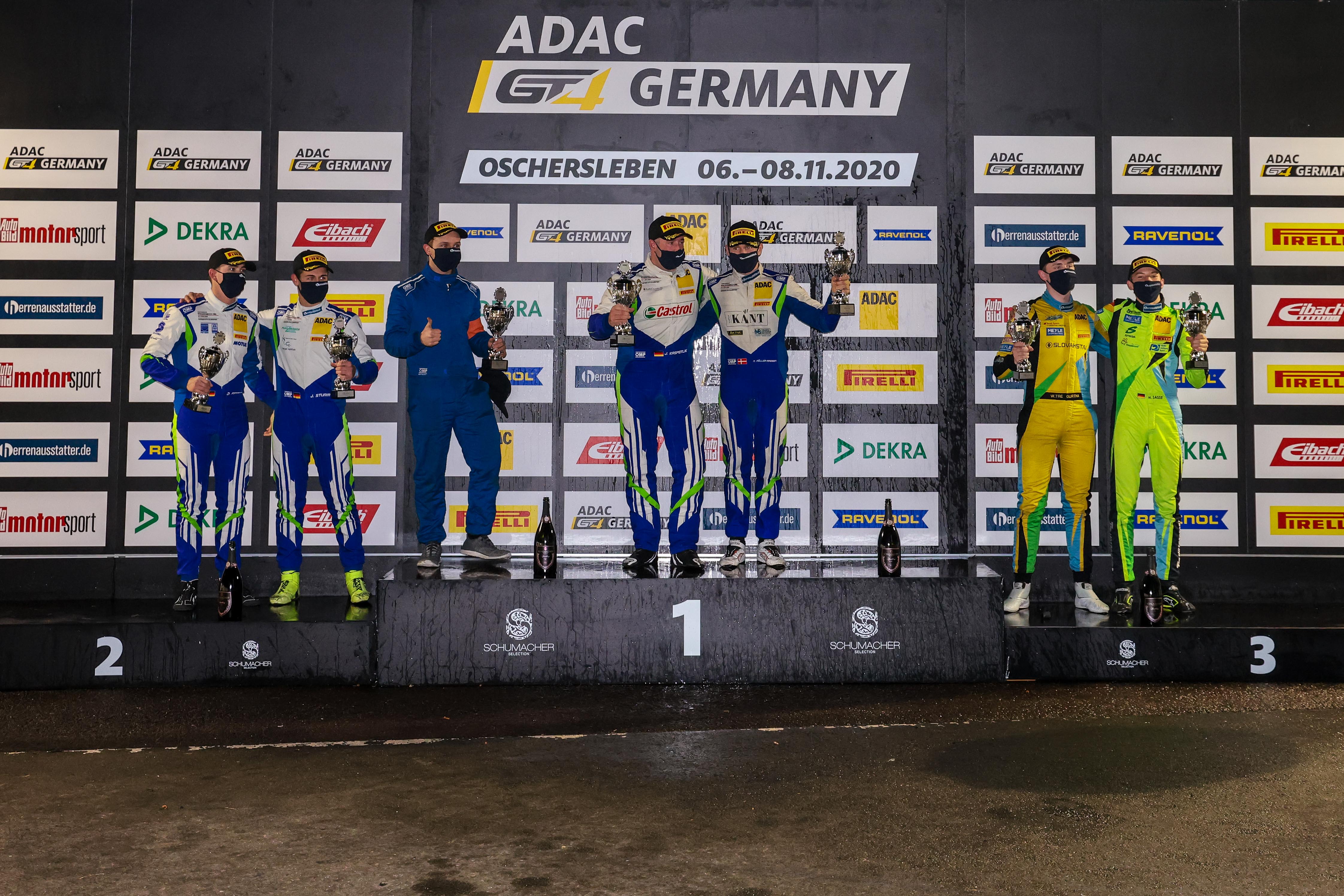 Das Meister-Podium der Saison 2020 in der ADAC GT4 Germany