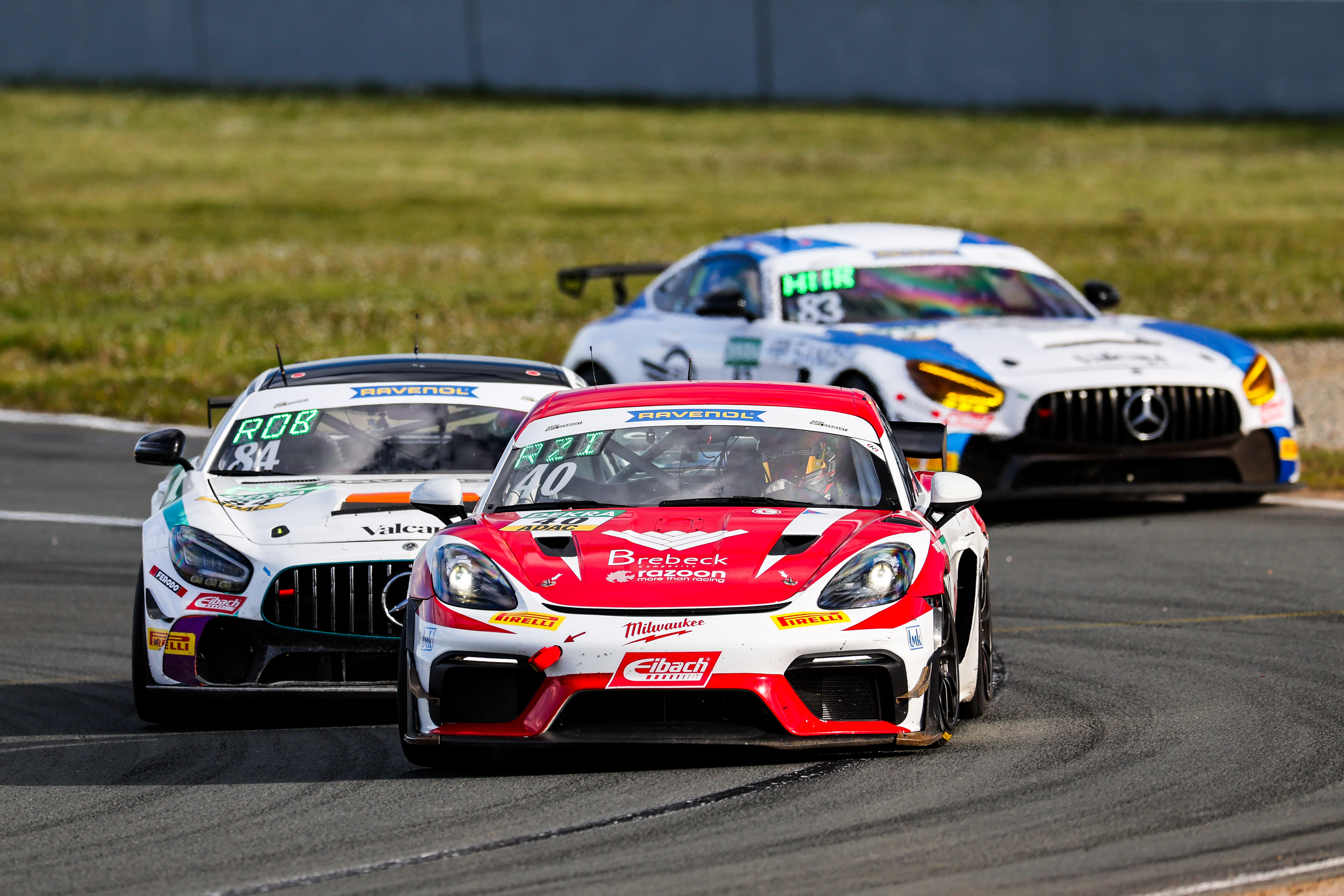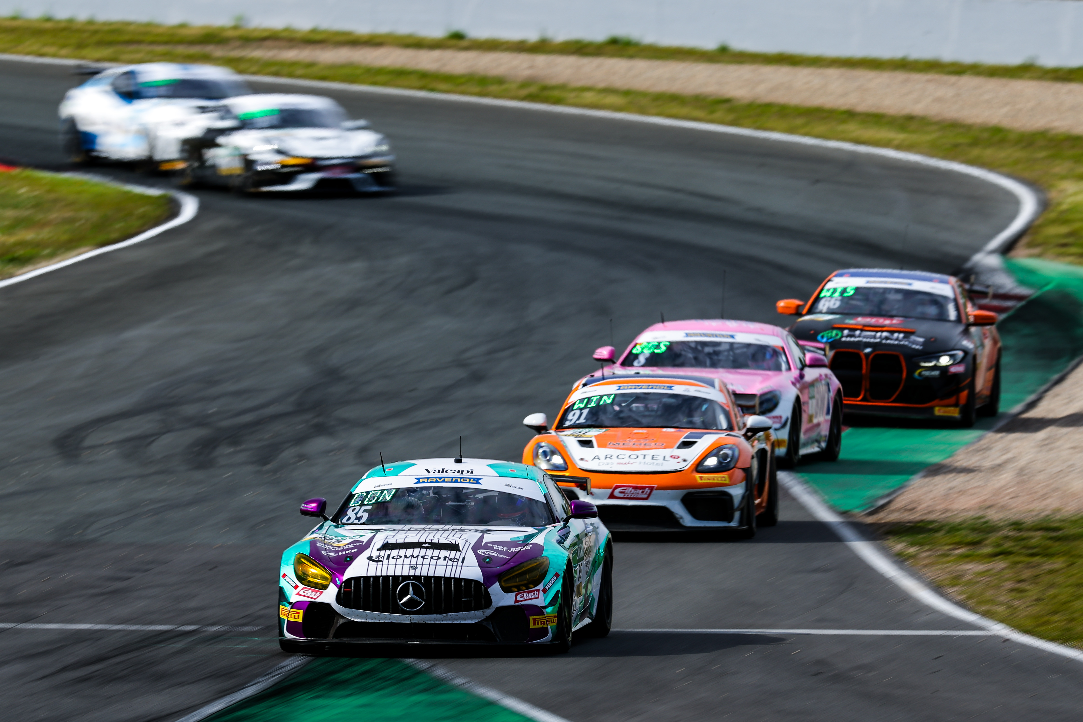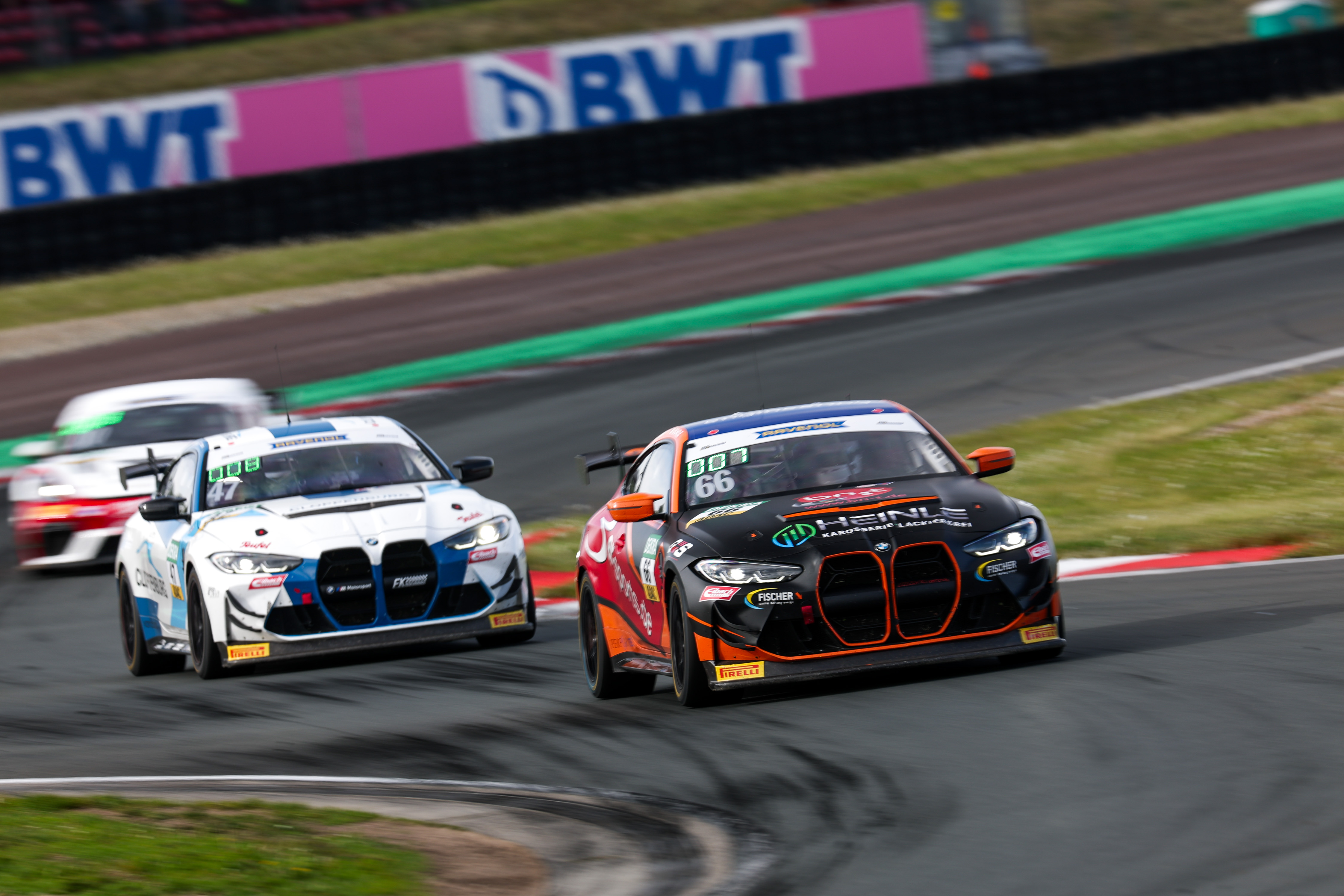 #18 BWT Mücke Motorsport / Marc de Fulgencio / Enzo Joulié / Mercedes-AMG GT4, #2 Hofor Racing by Bonk Motorsport / Gabriele Piana / Michael Schrey / BMW M4 GT4 G82, #3 Hofor Racing by Bonk Motorsport / Leon Wassertheurer / Tim Reiter / BMW M4 GT4 G82 / O
