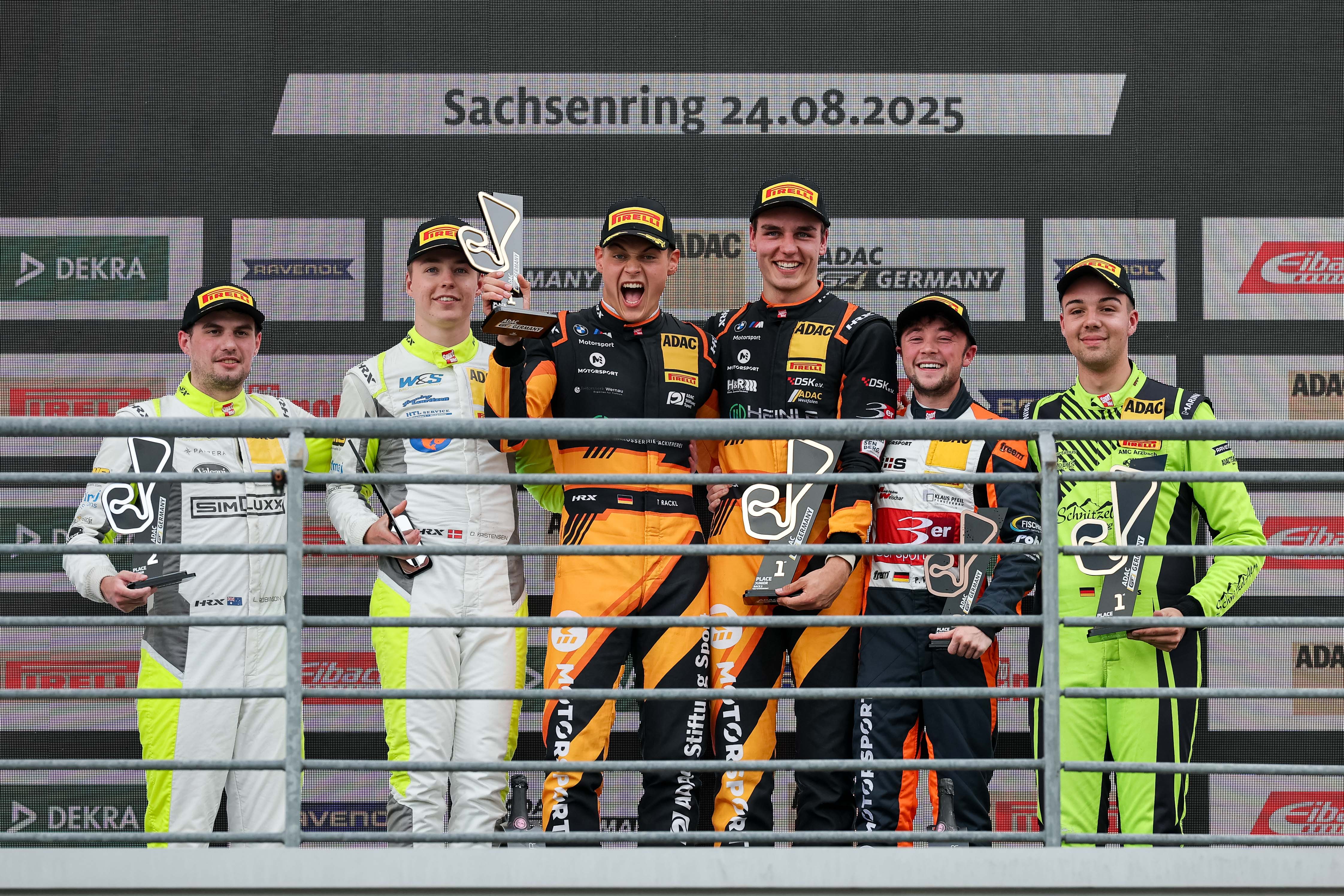 Großer Jubel auf dem Podium der ADAC GT4 Germany auf dem Sachsenring