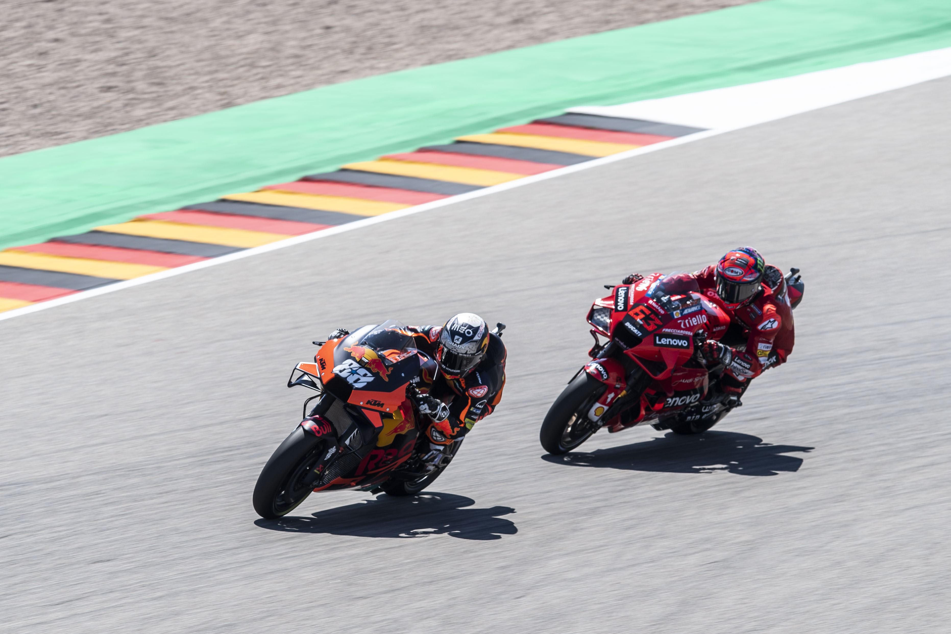 Hohenstein-Ernstthal. Der Portugiese Miguel Oliveira (Red Bull KTM Factory Racing) hat die MotoGP-Elite am Trainings-Freitag beim LIQUI MOLY Motorrad Grand Prix Deutschland auf dem Sachsenring hinter sich gelassen. Der 26-Jährige setzte sich bei hochsommerlichen Temperaturen von bis zu 32 Grad mit einer Rundenzeit von 1:20.690 Minuten durch. Zweiter wurde der Franzose Fabio Quartararo (Monster Energy Yamaha MotoGP) vor seinem spanischen Teamkollegen Maverick Vinales.