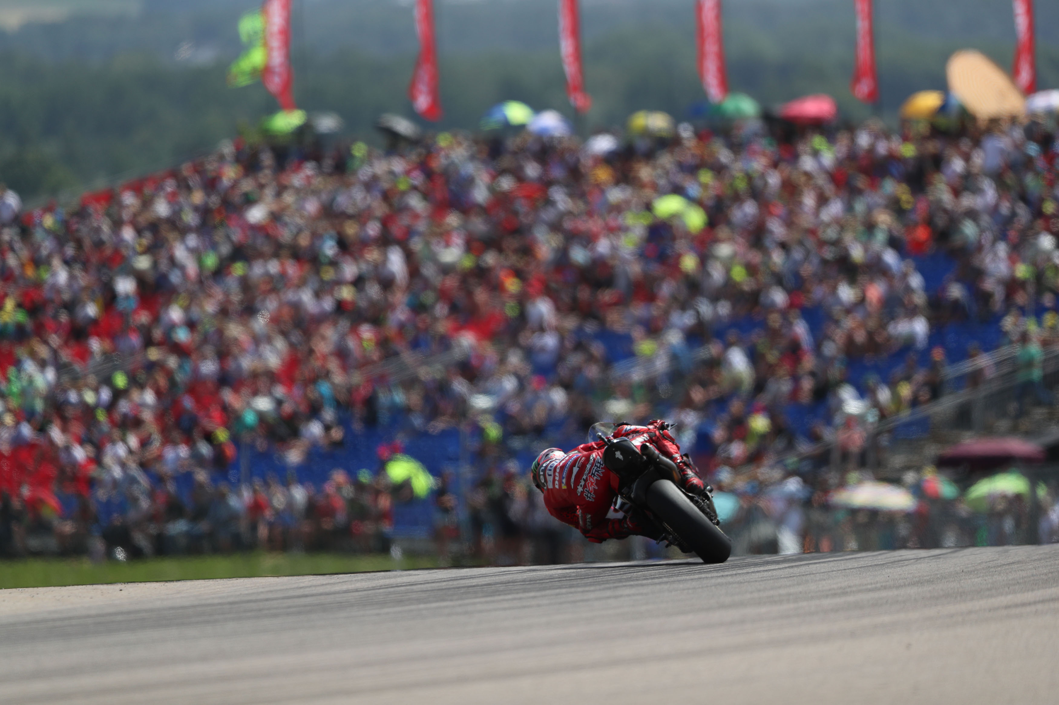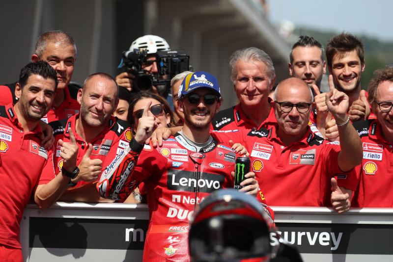 „Gestern war ich überrascht davon, so gut ins Wochenende zu starten. Das Gefühl wurde von Training zu Training sogar besser. Jetzt fühle ich mich mit allem wohl. Unser Potenzial ist sehr hoch.“ Vor vollbesetzten Tribünen und bei hochsommerlichen Außentemperaturen von über 30 Grad Celsius setzte Bagnaia seine Rekordjagd fort: Im dritten Freien Training stellte er die neue Rekordmarke in 1:19,765 Minuten auf. Damit knackte die MotoGP auf dem Sachsenring erstmals in ihrer Geschichte die magische Grenze von 1:20 Minuten.