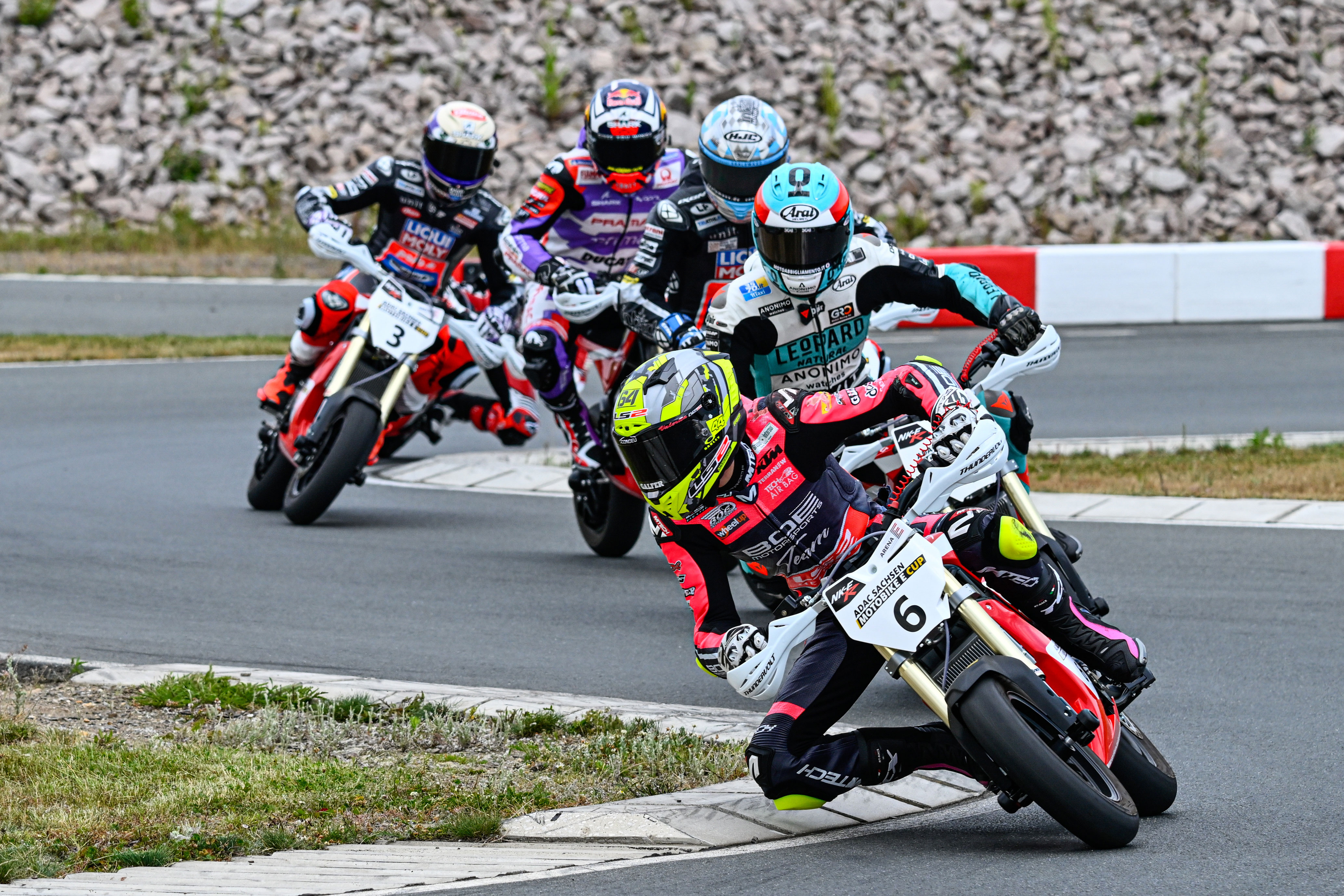 Im Northern Talent Cup, der vom ADAC unterstützten Nachwuchsschmiede des Motorradrennsports, starten in diesem Jahr fünf deutsche Nachwuchshoffnungen. Luca Göttlicher, Rocco Sessler, Valentino Herrlich, Julius Coenen und Dustin Schneider trafen sich im Rahmen ihres Heimspiels auf dem Sachsenring für ein Gruppenfoto. Die fünf Teenager hoffen, eines Tages die Nachfolge des letzten deutschen Weltmeisters Sandro Cortese anzutreten. Der mittlerweile zurückgetretene Ex-Champ gewann 2012 den Moto3-Titel und wurde 2018 Champion in der Supersport-Weltmeisterschaft. Schneider glänzte mit Platz drei im Samstagsrennen.