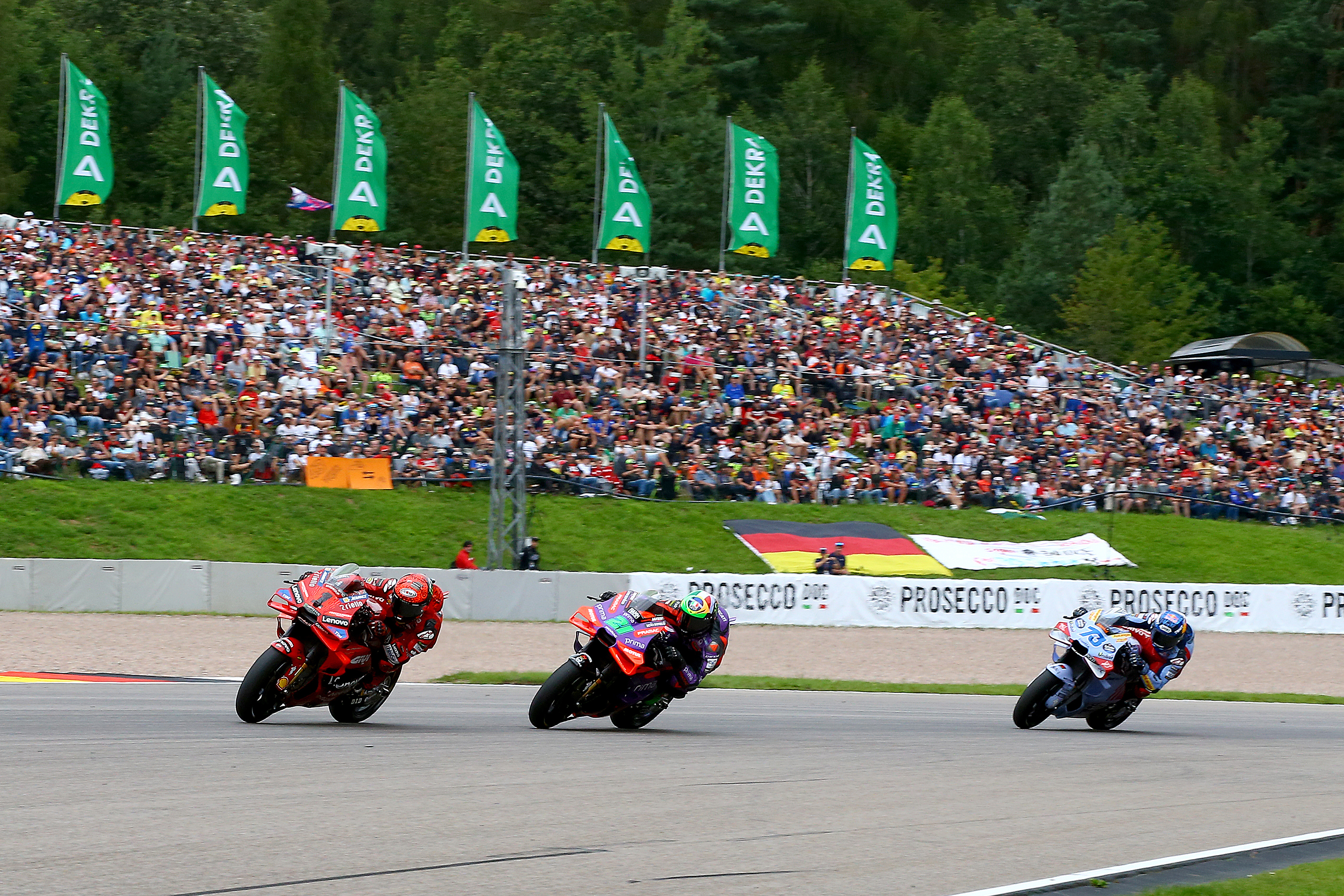 Bei der MotoGP auf dem Sachsenring wartet auf und neben der Strecke ein volles Programm. Auch 2025 gibt es mit dem MotoGP-Sprint am Samstag und am MotoGP Rennen am Sonntag ein Motorradsportwochenende der Extraklasse. Das abwechslungsreiche Rahmenprogramm mit Konzerten, Fahrerpräsentationen, dem Red Bull Rennzirkus oder dem MotoGP Hero Walk in der Karthalle macht den WM-Lauf zu einem wahren Motorsport-Festival. Karten für den Motorrad Grand Prix Deutschland sind im Online-Ticketshop unter adac.de/motogp, telefonisch über die Hotline 03723/8099111 oder per Mail an