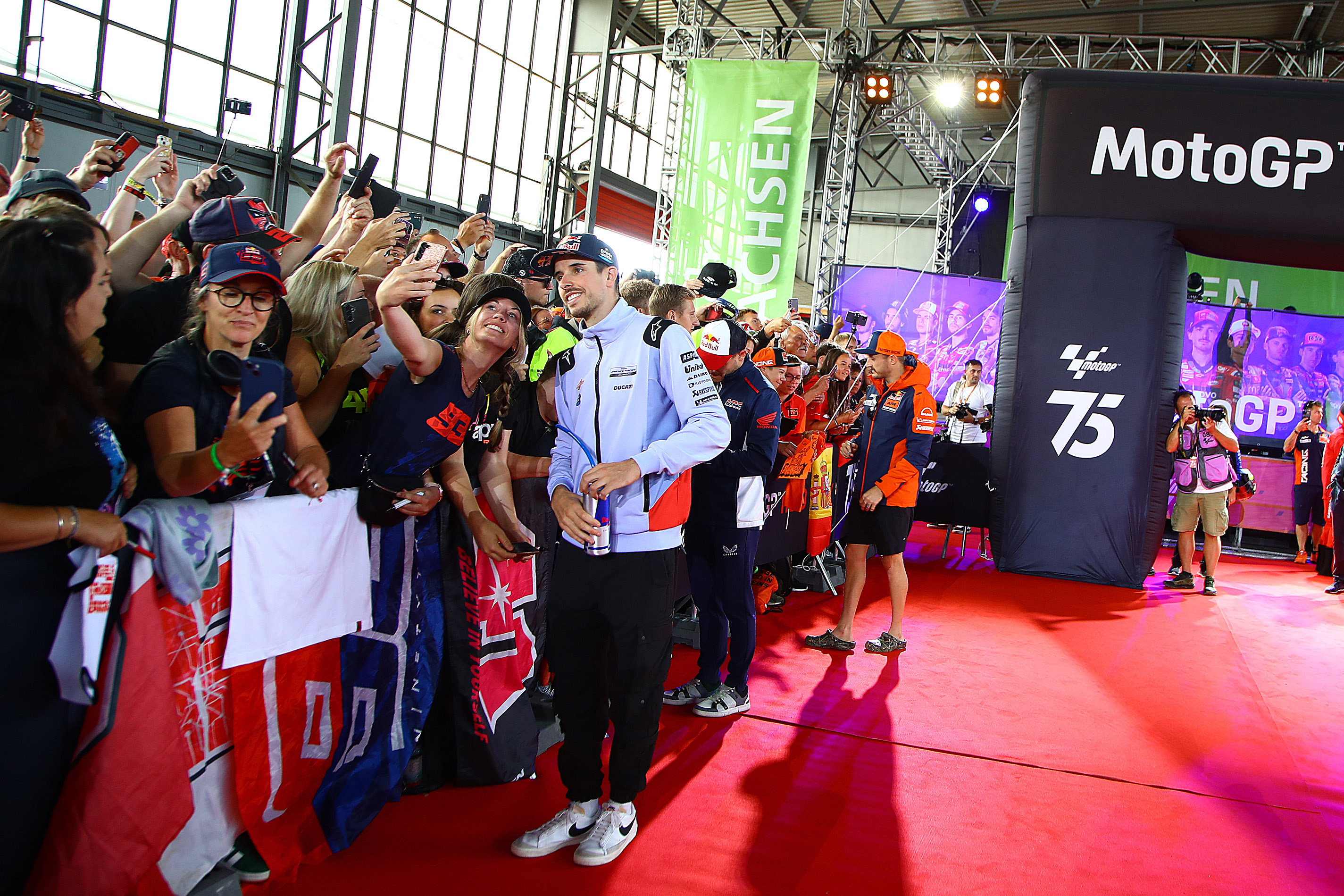 The Liqui Molo MotoGP Germany gives fans the closest-possible access to the MotoGP stars. During the pit walk on the Thursday, spectators will have the opportunity to watch their heroes and the teams at work in the pit lane. The MotoGP Hero Walk puts the spotlight on the riders once again: On the Saturday afternoon, the Moto2 and Moto3 riders will introduce themselves in the karting hall. Then, on the Sunday morning after the riders’ parade, the MotoGP riders will gather for the Hero Walk.