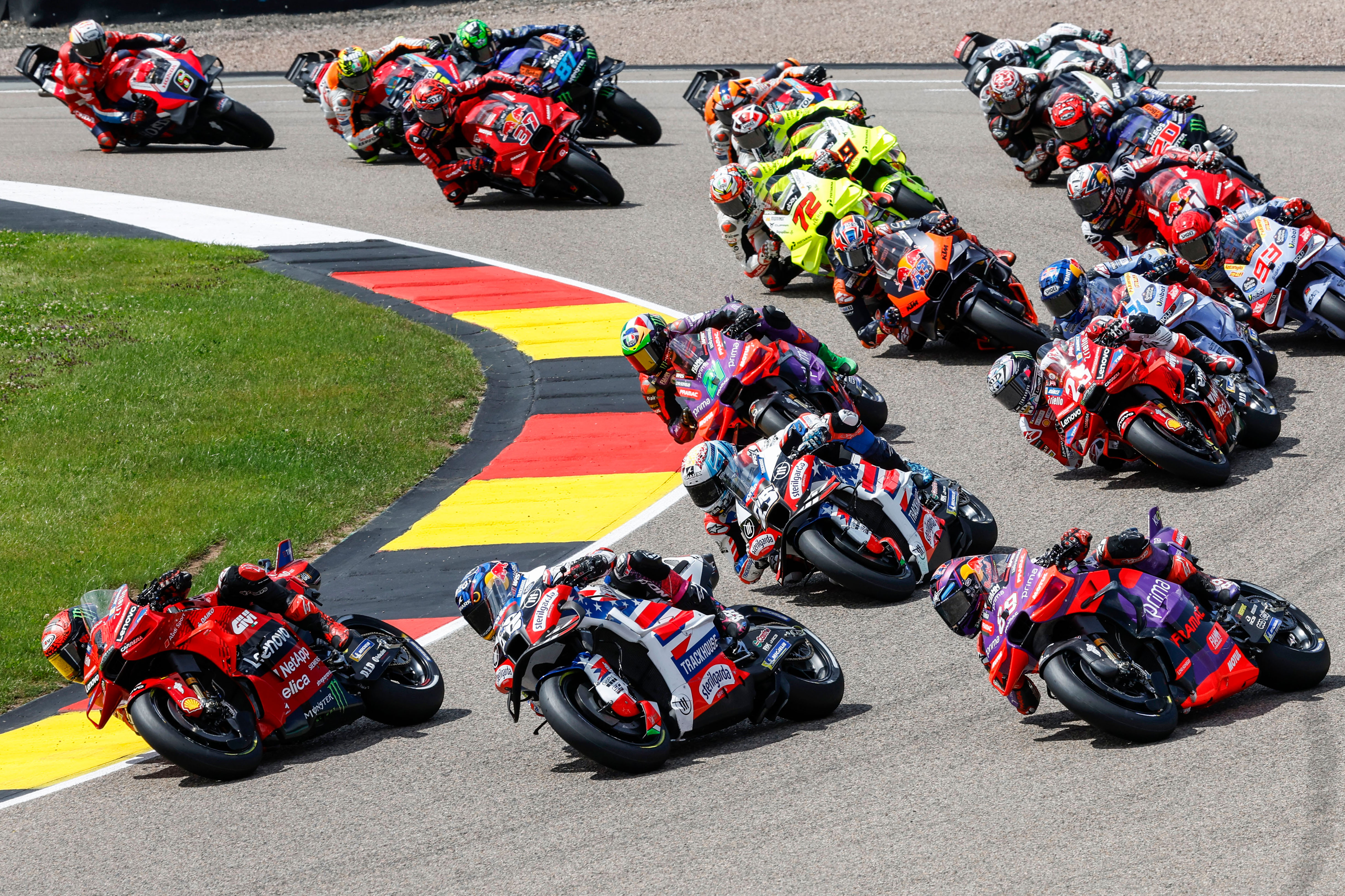 Ob Álex Márquez beim deutschen Motorrad Grand Prix antreten kann, ist derzeit noch ungewiss. Bei einem Sturz in Assen zog sich der jüngere Bruder von Marc eine Verletzung an der linken Hand zu. Zuvor befand sich der 29-Jährige in bestechender Form: Beim Heimrennen in Jerez feierte er erstmals in seiner Karriere einen Sieg in der Königsklasse. Gemeinsam mit Marc sorgte Álex Márquez in dieser Saison bereits für vier Bruder-Doppelsiege. Während die Familie Márquez aktuell die MotoGP-Welt dominiert, möchte das restliche Feld am Sachsenring zurückschlagen. Besonders Francesco Bagnaia, zweifacher Weltmeister aus dem Ducati-Werksteam, will die Vorherrschaft der beiden Márquez-Brüder durchbrechen. Der Italiener gewann einen Grand Prix in diesem Jahr und liegt in der Gesamtwertung auf dem dritten Platz.
