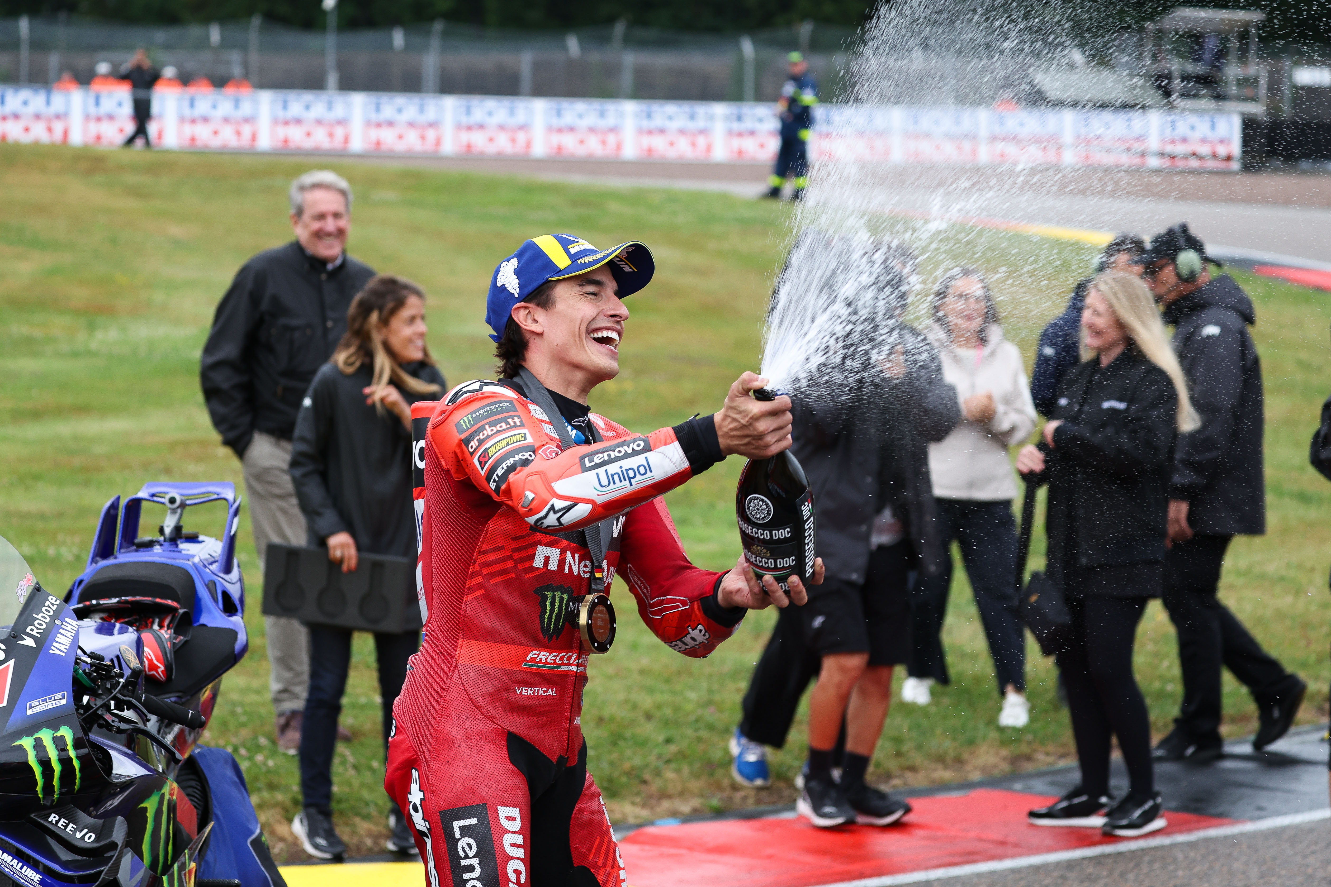 Hohenstein-Ernstthal. Ducati works rider Marc Márquez lived up to his reputation as “King of the Ring”, claiming victory in Saturday’s sprint race at the Liqui Moly Motorrad Grand Prix of Germany. It proved to be a tumultuous race in the rain at the Sachsenring for the six-time MotoGP world champion. The pole-setter lost a handful of positions after the start but gradually battled his way back to the front, snatching the win with a decisive overtaking manoeuvre on the final lap.
