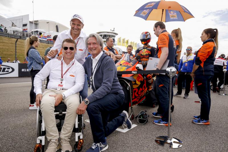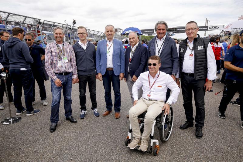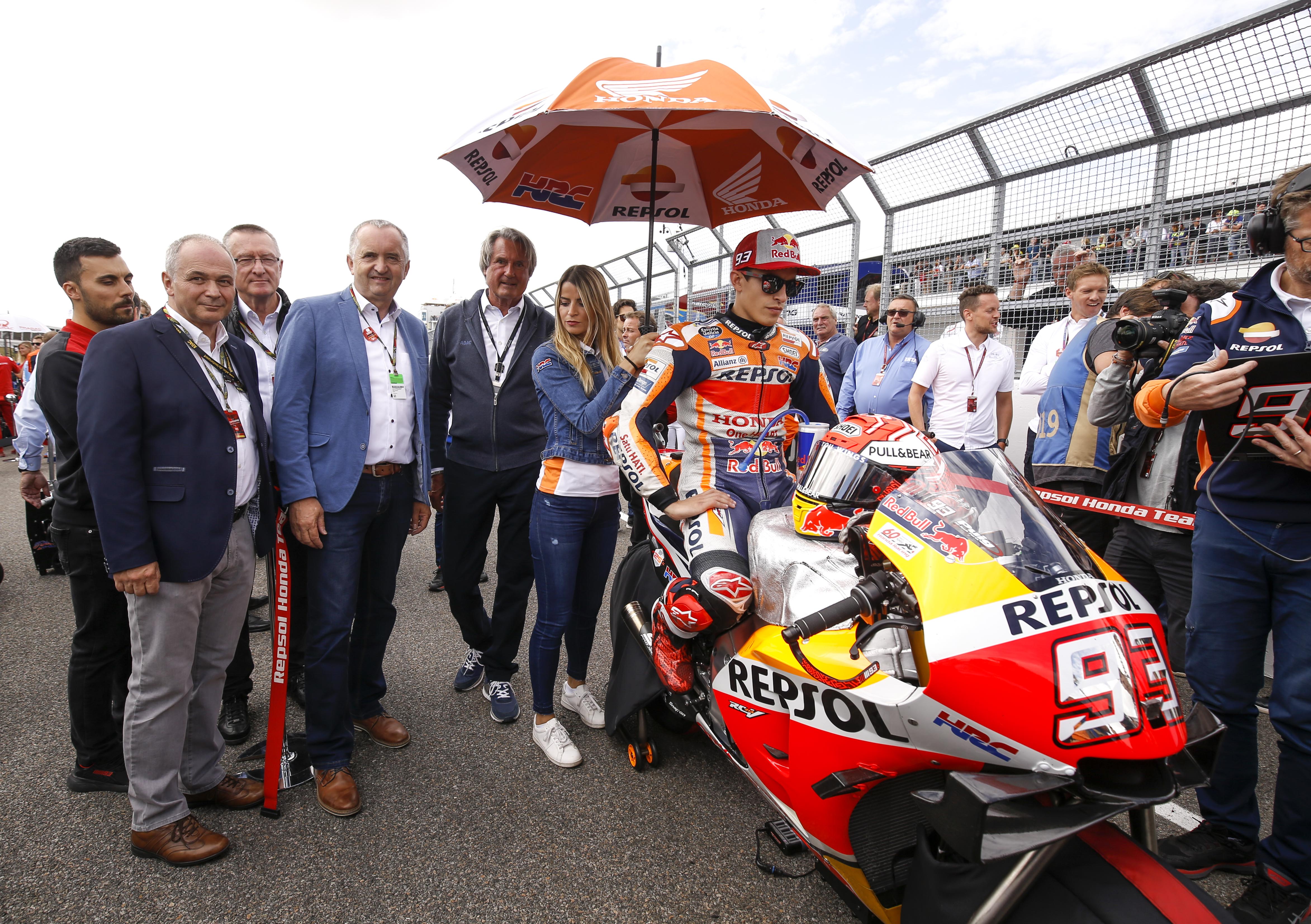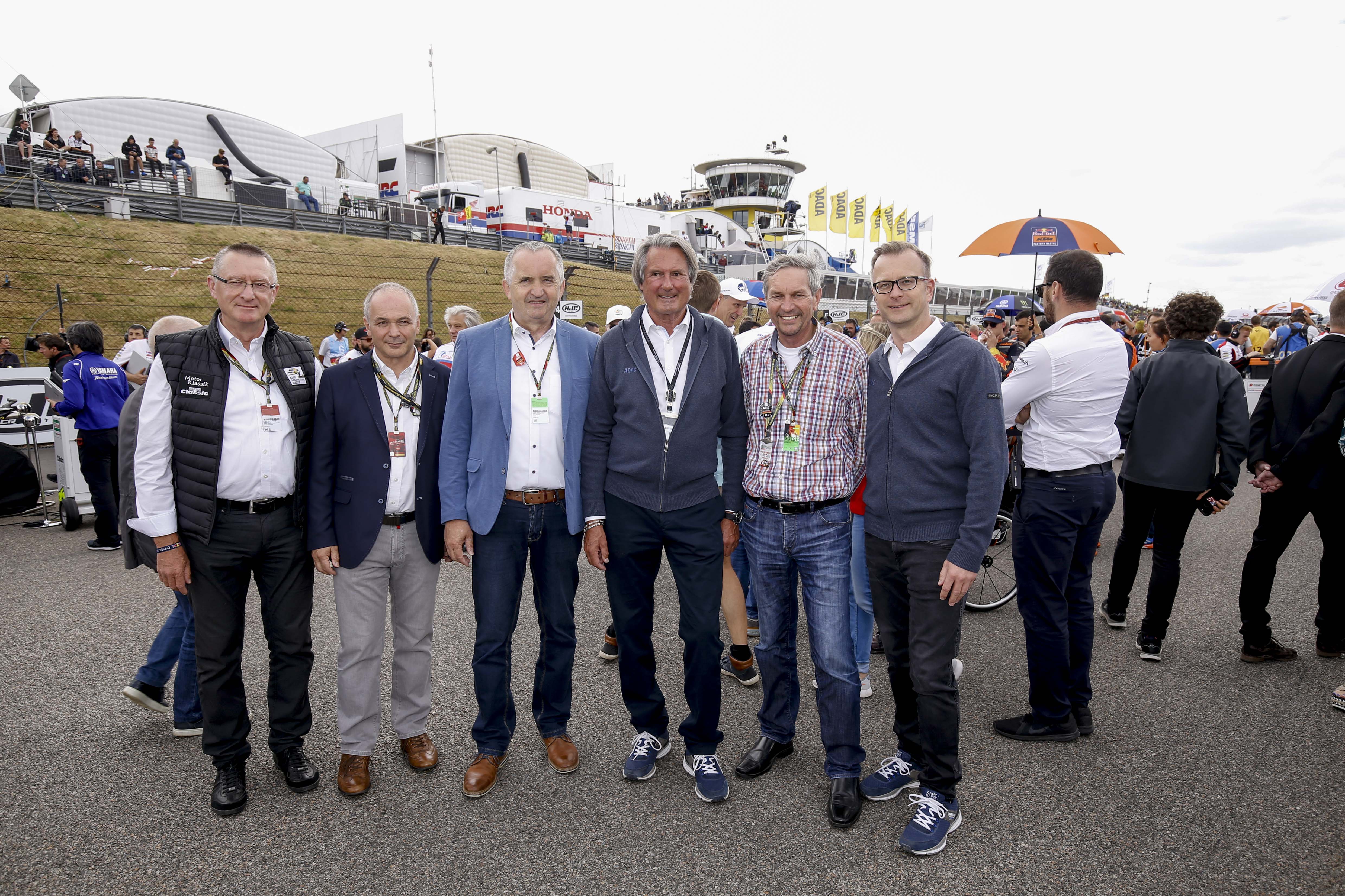 Klaus Klötzner, Peter Weidinger (beide ADAC Sachsen), Minister Thomas Schmidt, Hermann Tomczyk bei Marc Marquez