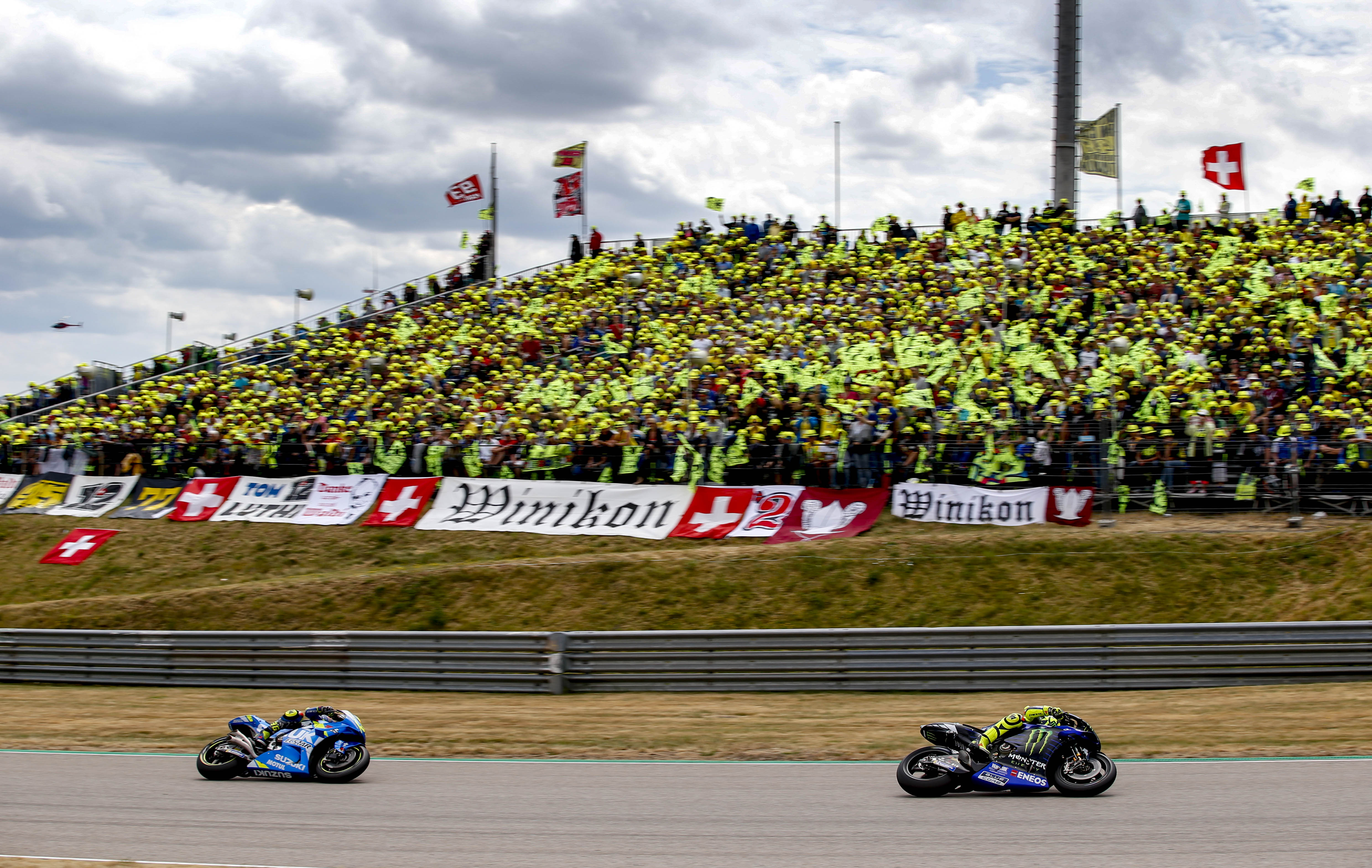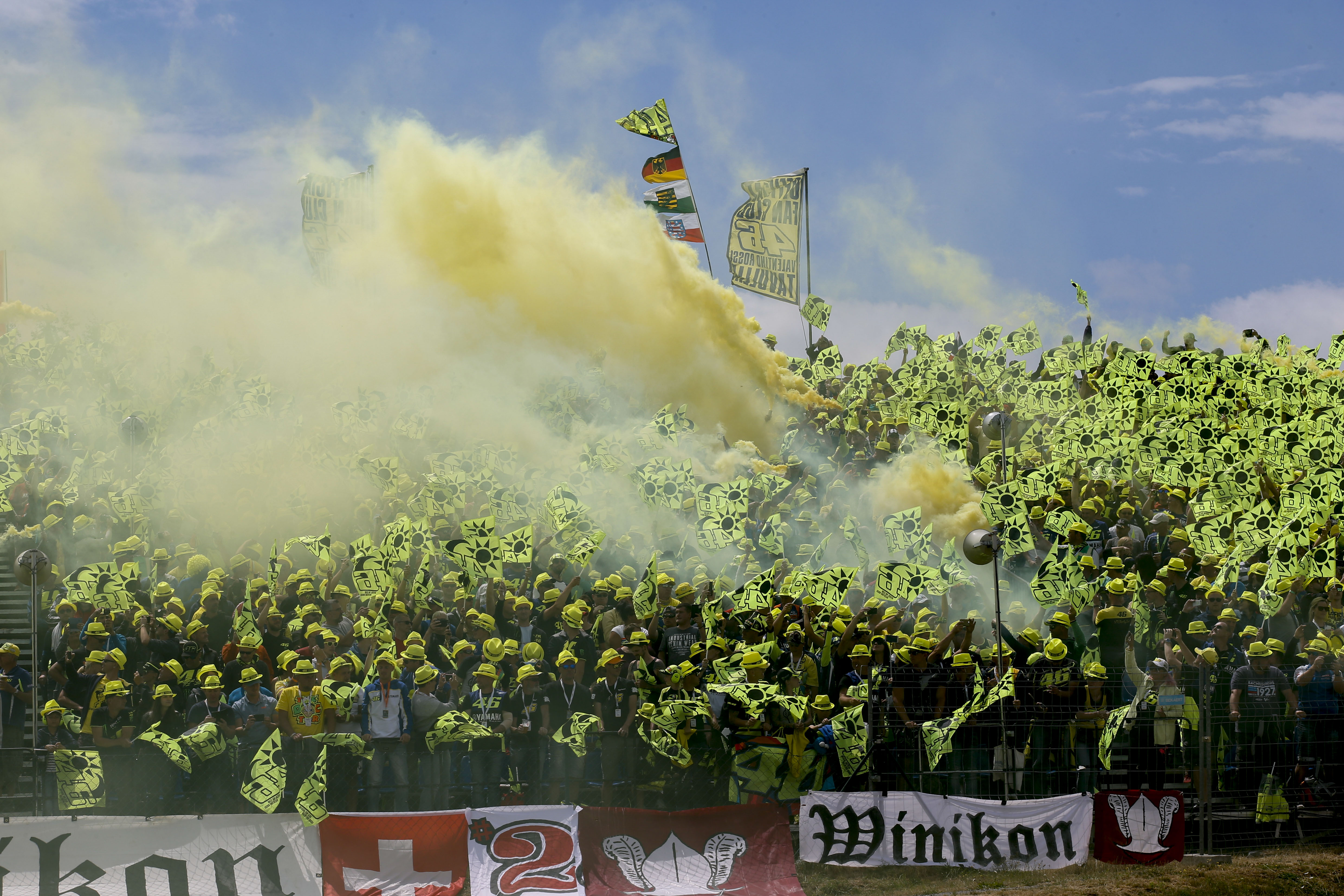 Gute Stimmung auf den VR46-Fantribünen bei der MotoGP am Sachsenring 2019