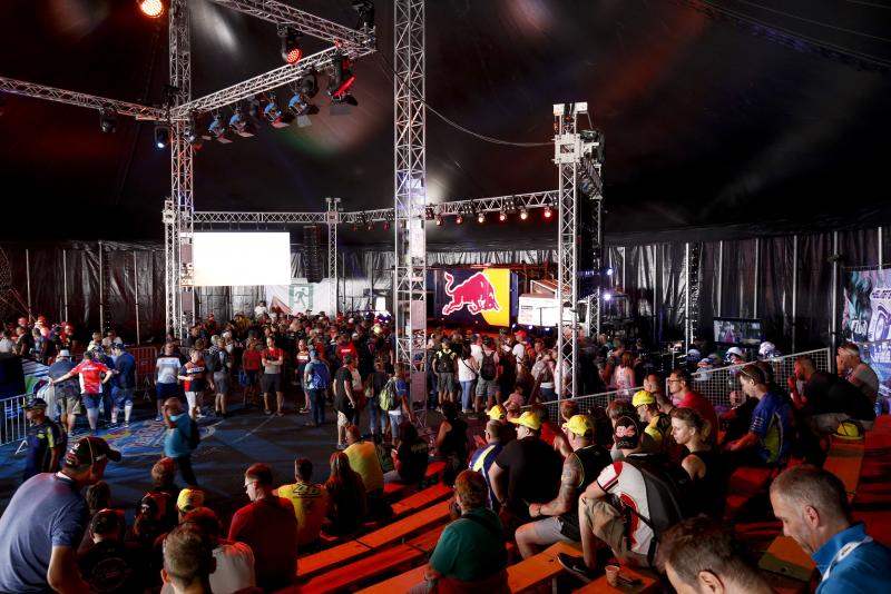 Die KTM-Fantribüne an der Karthalle bietet beste Sicht auf das Renngeschehen © KTM