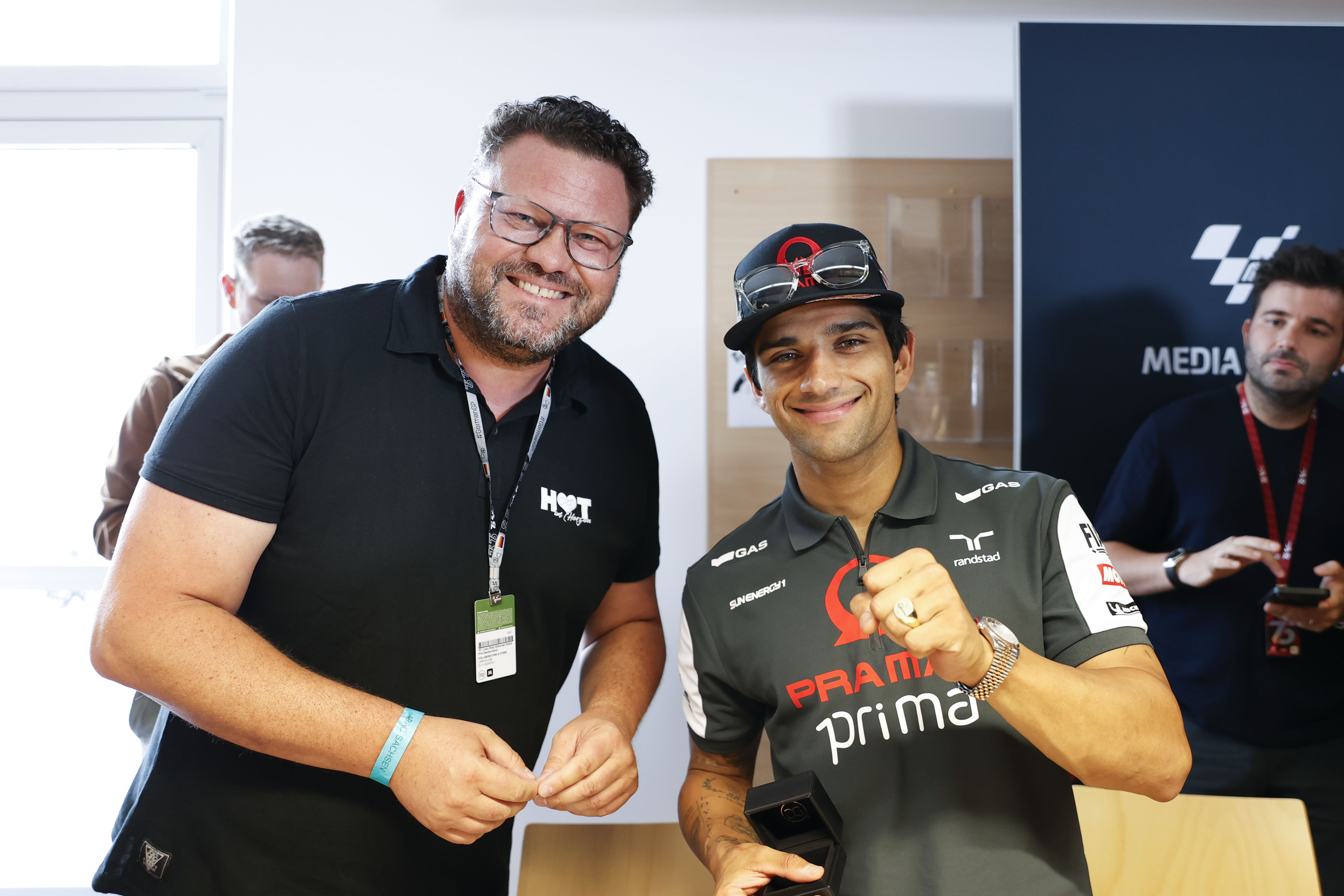 Lokalmatador Marcel Schrötter und Celestino Vietti ließen sich bei der Fahrerpräsentation feiern