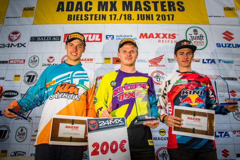 ADAC MX Masters, Bielstein, Siegerehrung beim ADAC MX Youngster Cup v.l.n.r.: Tom Koch ( Deutschland / KTM / KTM Sarholz Racing Team ), Martin Krc ( Tschechien / KTM / Sturm Racing Team ) und Michael Sandner ( Österreich / KTM / Thermotec Racing KTM )