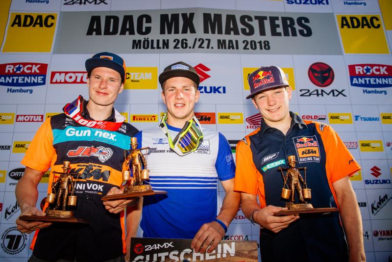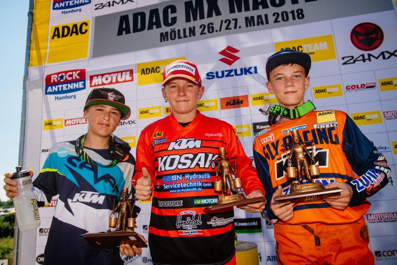 ADAC MX Masters, Mölln, ADAC MX Junior Cup 85ccm, v.l.n.r.: Liam Everts ( Belgien / KTM ), Camden Mc Lellan ( Südafrika / KTM / Kosak Racing Team ) und Constantin Piller ( Deutschland / KTM / MEFO SPORT RACING TEAM / MSC Freisinger Bär )