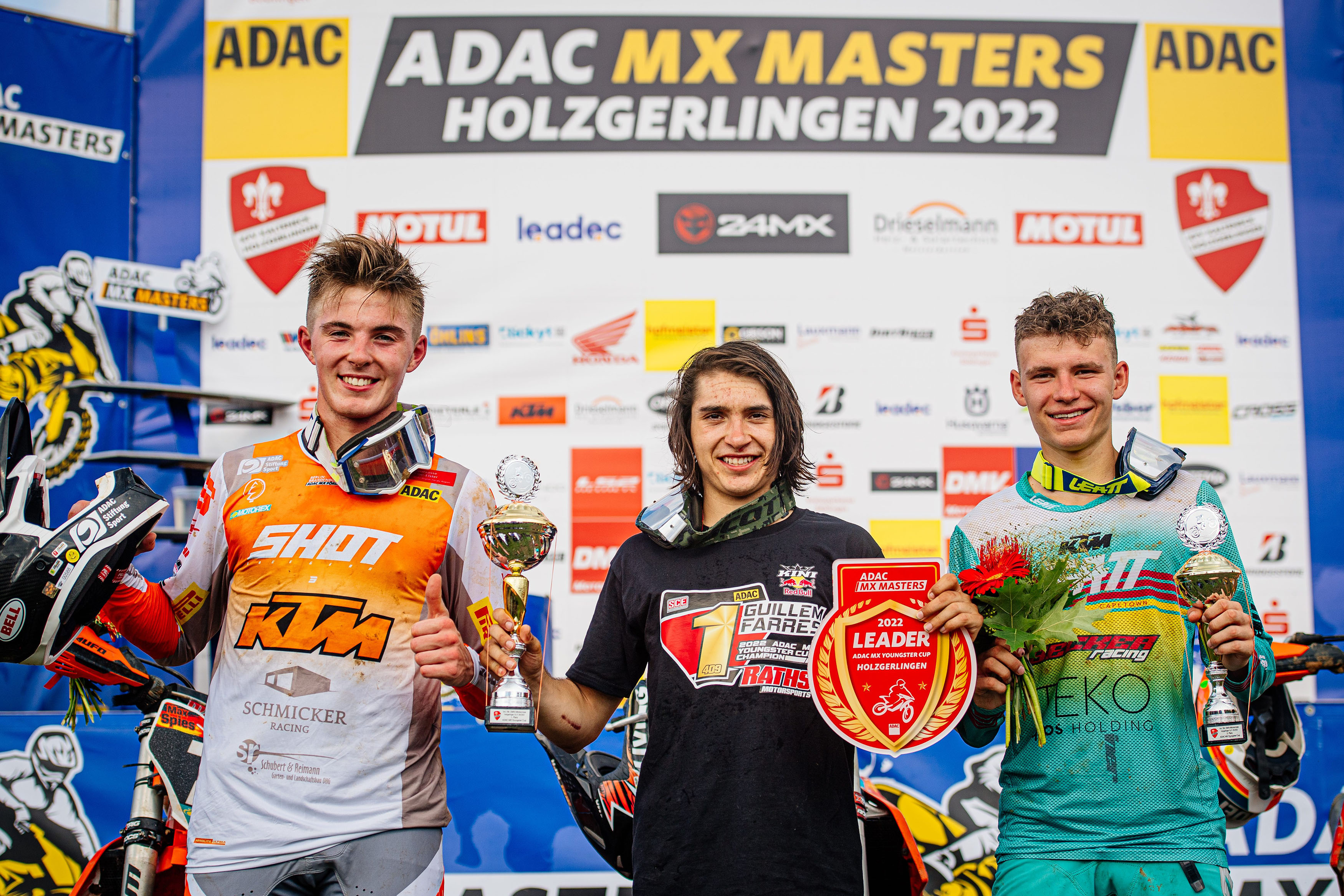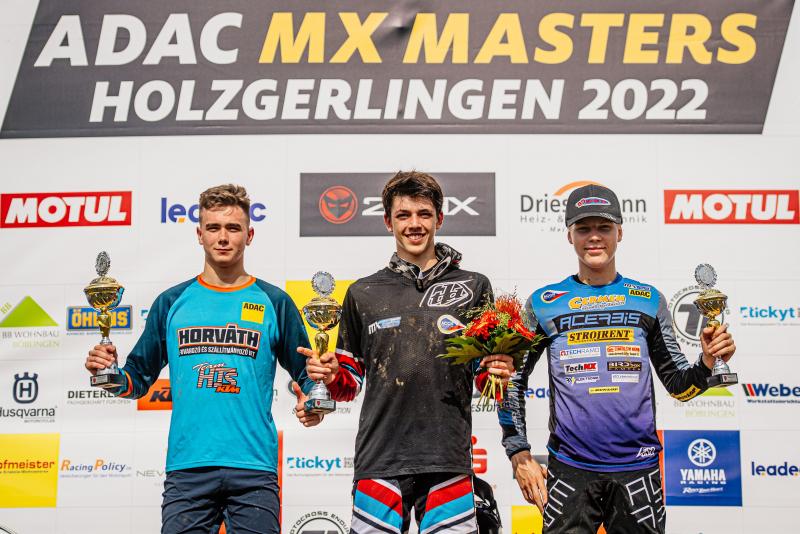 Das Gesamtpodium des ADAC MX Youngster Cup in Holzgerlingen (v.l.): Maximilian Spies, Guillem Farres und Noah Ludwig