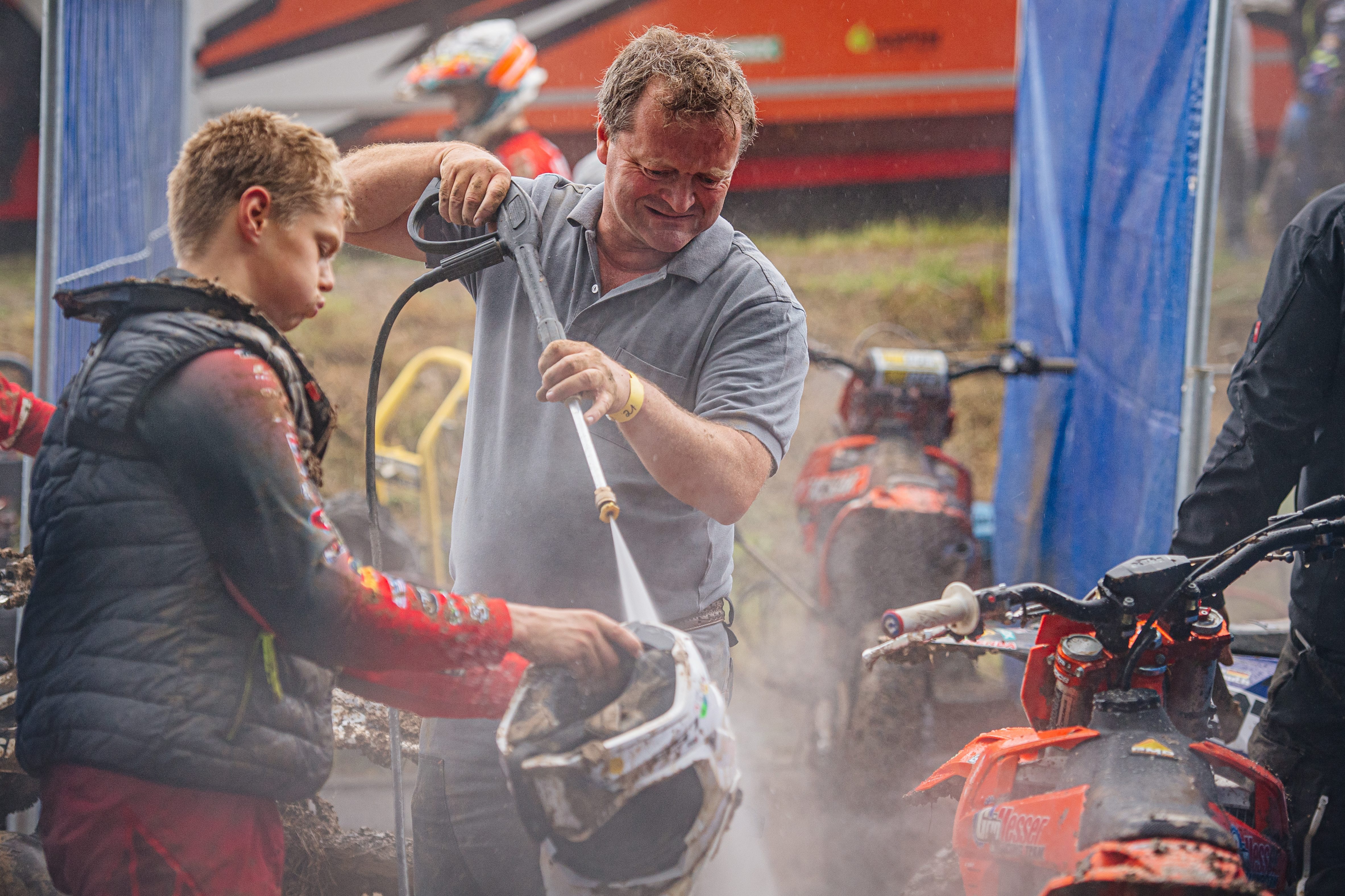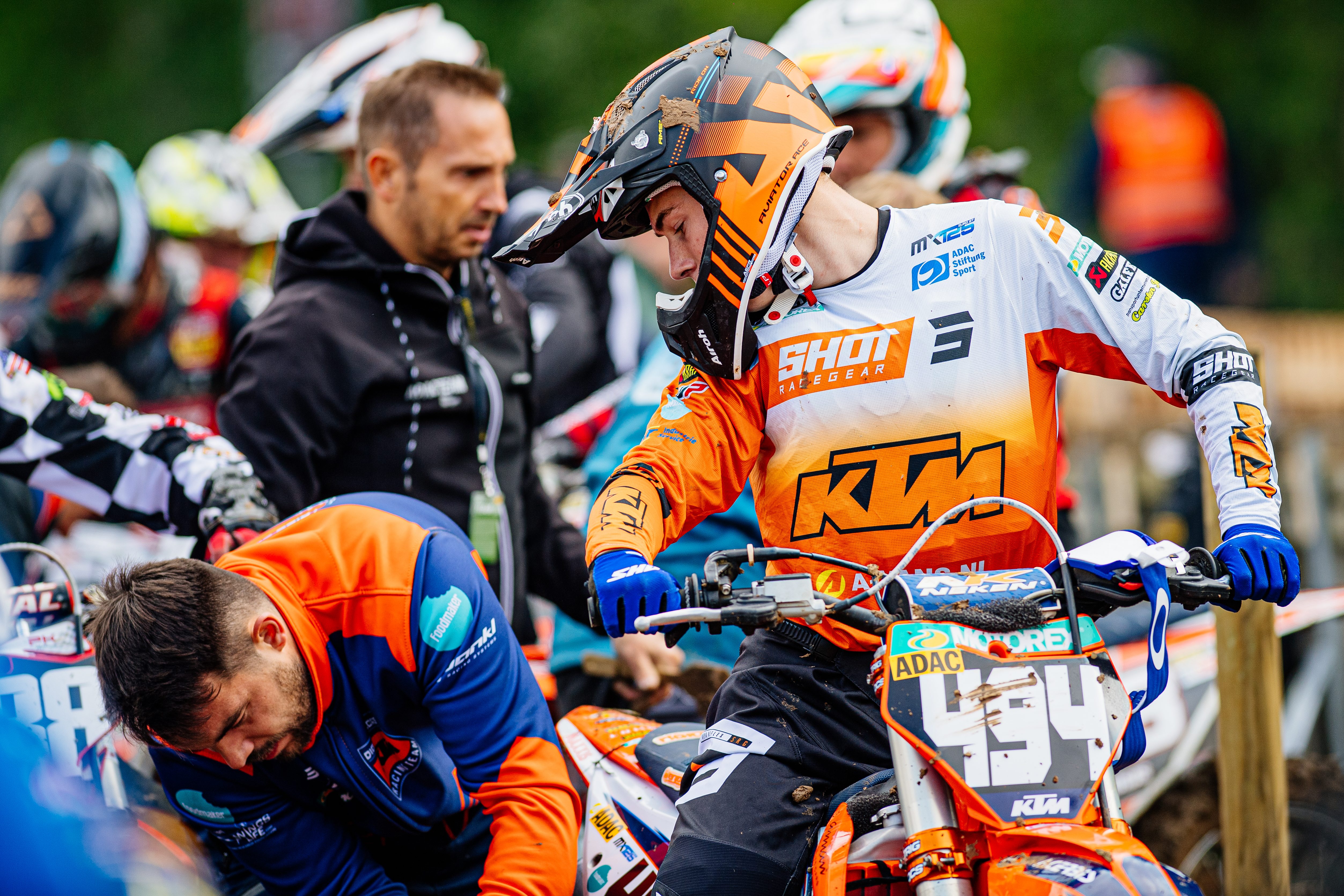 Mechaniker von Maximilian Werner ( Deutschland / KTM / DIGA PROCROSS KTM RACING ) beim ADAC MX Junior Cup 125 in der Helferbox