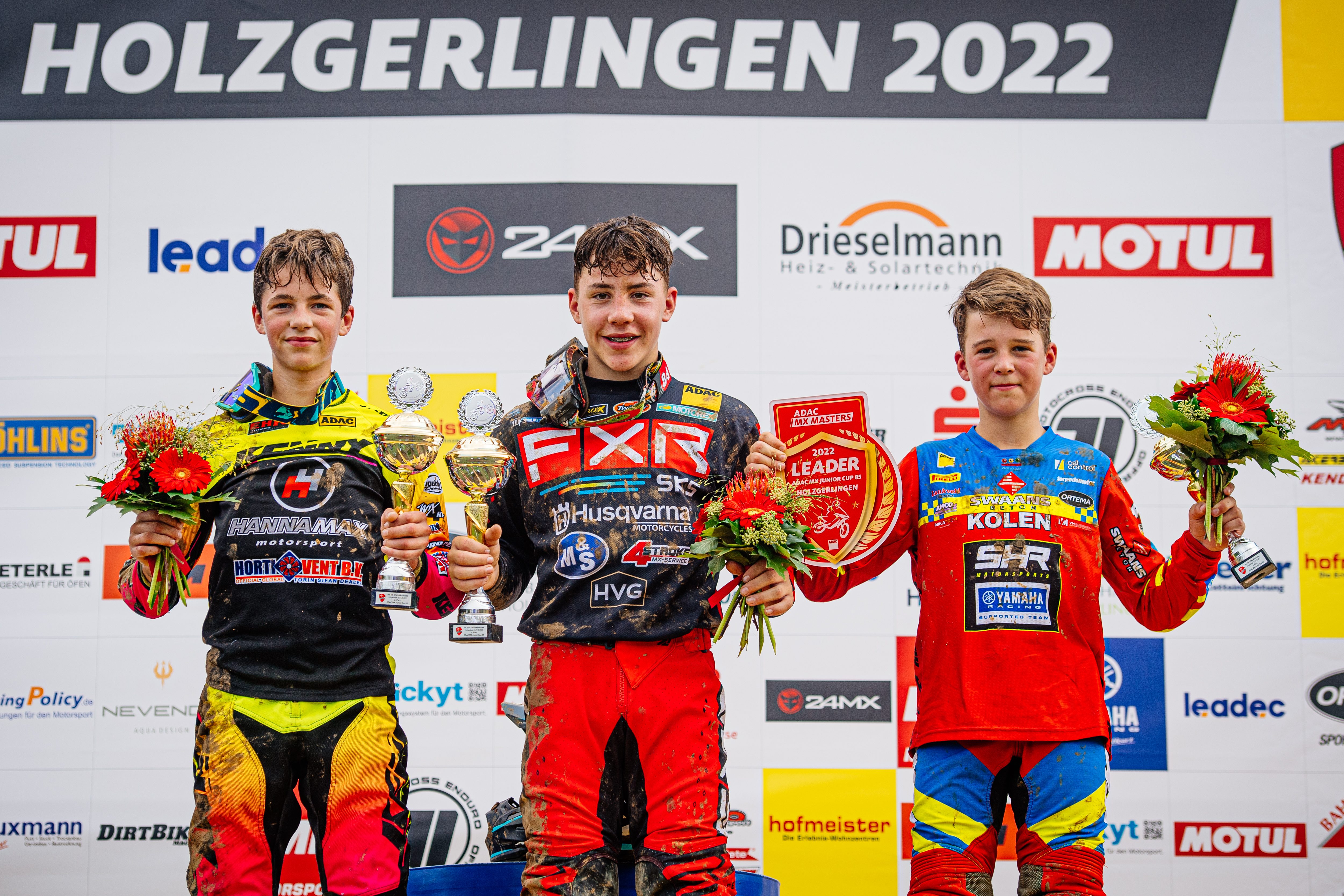 Tageswertung beim ADAC MX Juniorcup Cup 85 v.l.n.r.: Mick Kennedy ( Niederlande / KTM / Motocross AAD ), Gyan Doensen ( Niederlande / Husqvarna / Husqvarna SKS-Racing NL Team ) und Jayson Van Drunen ( Niederlande / Yamaha / SHR Motorsports-Yamaha Motor Eu
