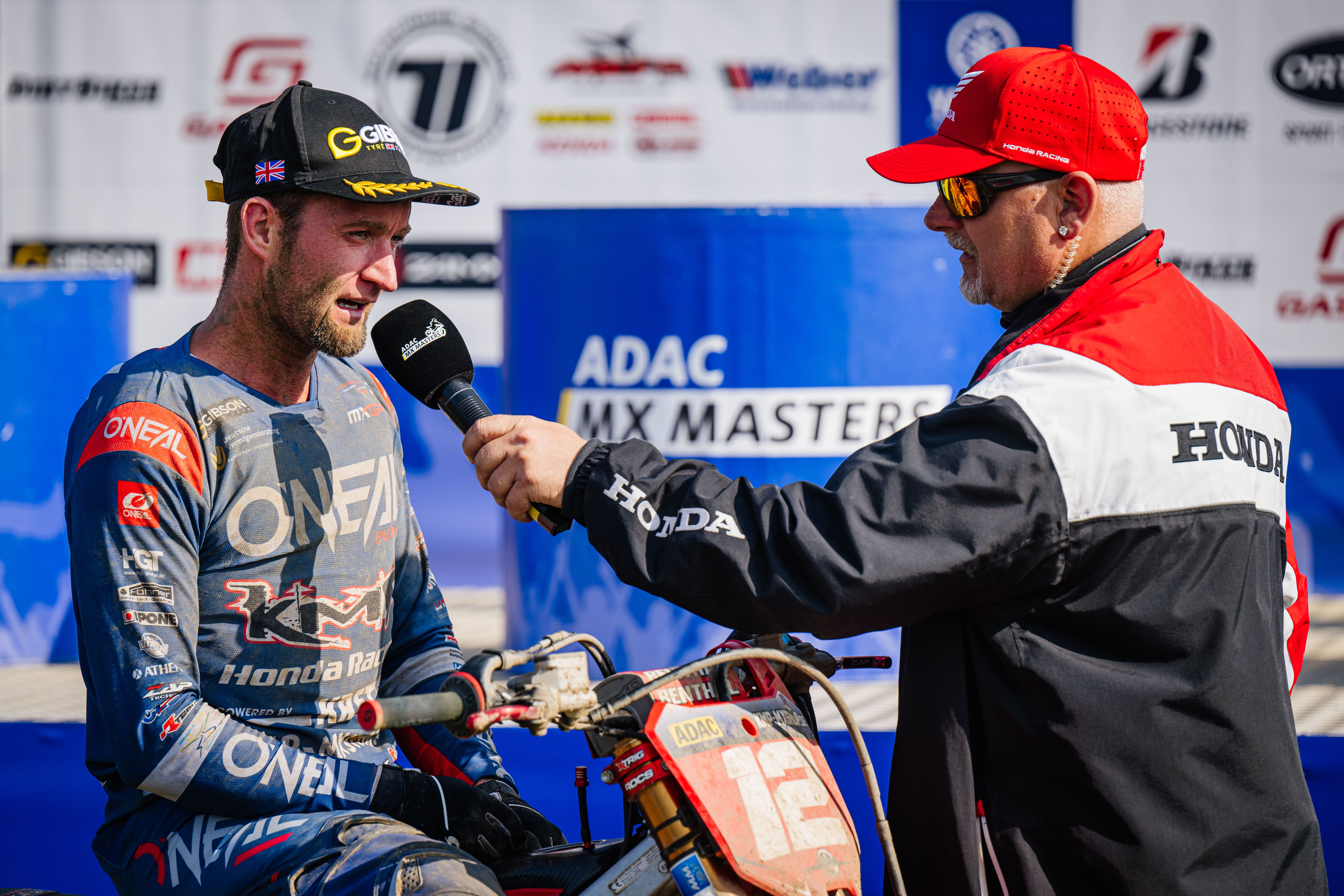 Adam Sterry ( Großbritannien / KTM / KTM Sarholz Racing Team ) und Crew, Moderator Thomas Deitenbach beim ADAC MX Masters