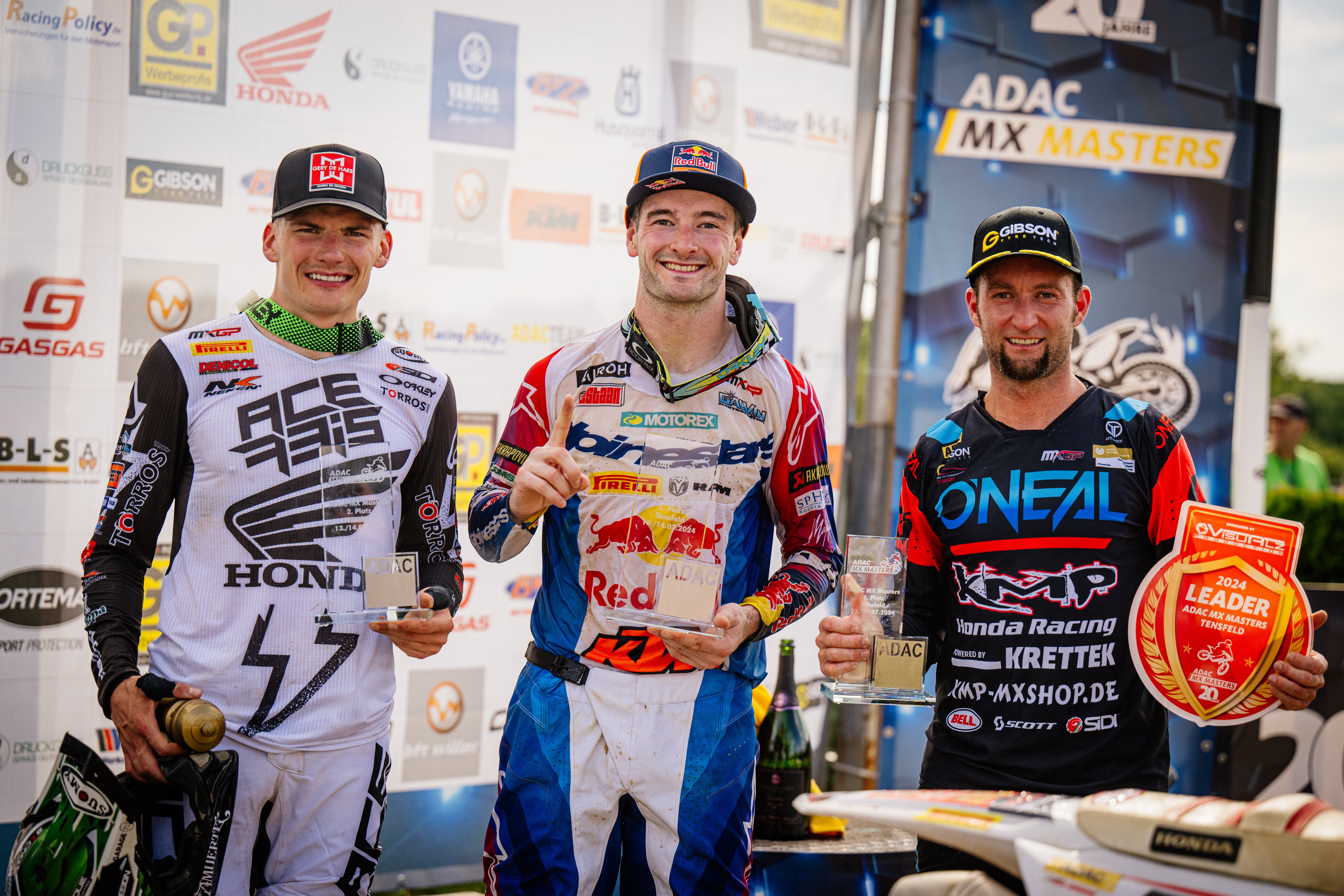 Tageswertung beim ADAC MX Youngster v.l.n.r.: Bence Pergel ( Ungarn / KTM / HTS KTM ), Nico Greutmann ( Schweiz / Husqvarna / Cat Moto Bauerschmidt Husqvarna ) und Bradley Mesters ( Niederlande / KTM / Kosak Racing Team )