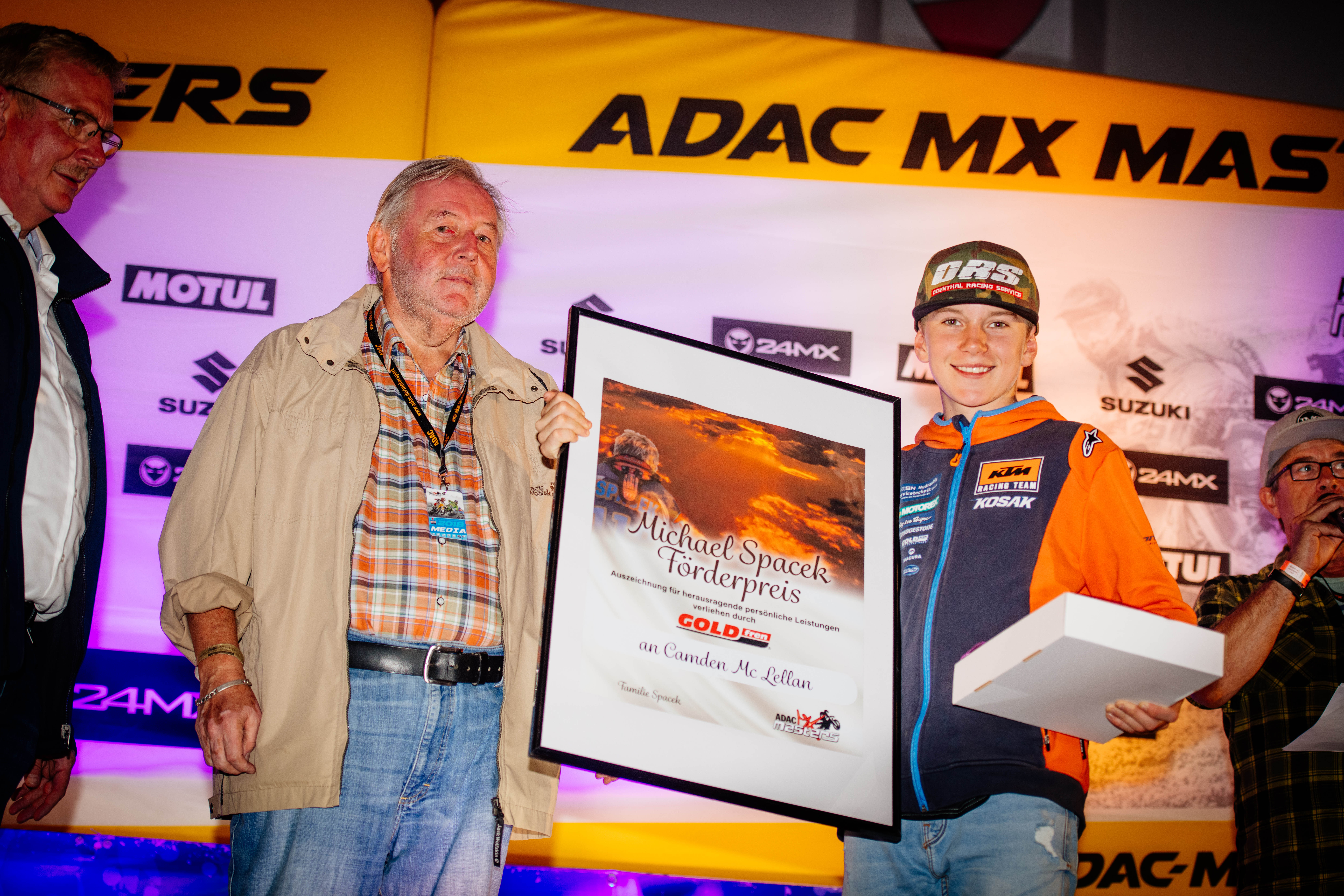 Rudolf Weschta (Team AB Racing by Suzuki Reinecke) erhielt die Auszeichnung für seinen sportlichen Einsatz, sein vorbildliches Verhalten und seinen positiven Charakter während den vergangenen 15 Jahren beim ADAC MX Masters. Camden Mc Lellan wurde abermals ausgezeichnet und mit dem Michael Spacek Preis bedacht, weil er im Alter von nur 14 Jahren, häufig ohne seine Familie, zwischen seiner Heimat Südafrika und Deutschland hin und her pendelte, um den Rennsport auf solch hohem Niveau ausüben zu können. Als weitere Preisträger wurde die Familie Lawrence für ihren außergewöhnlichen persönlichen Einsatz ausgezeichnet. Die Eltern gaben ihr vorheriges Leben in Australien komplett auf, um ihren Söhnen Hunter und Jett eine Motocross-Karriere zu ermöglichen. Auch Max Nagl erhielt den Michael Spacek-Sonderpreis, weil er durch stets vorbildliches Verhalten und extrem hohe Motivation auch in schwierigen Situationen als Vorbild für den Nachwuchs dient. Der Bayer behauptet sich seit vielen Jahren in der Weltspitze und hat sich schon mehrmals nach Verletzungen wieder nach oben gekämpft.