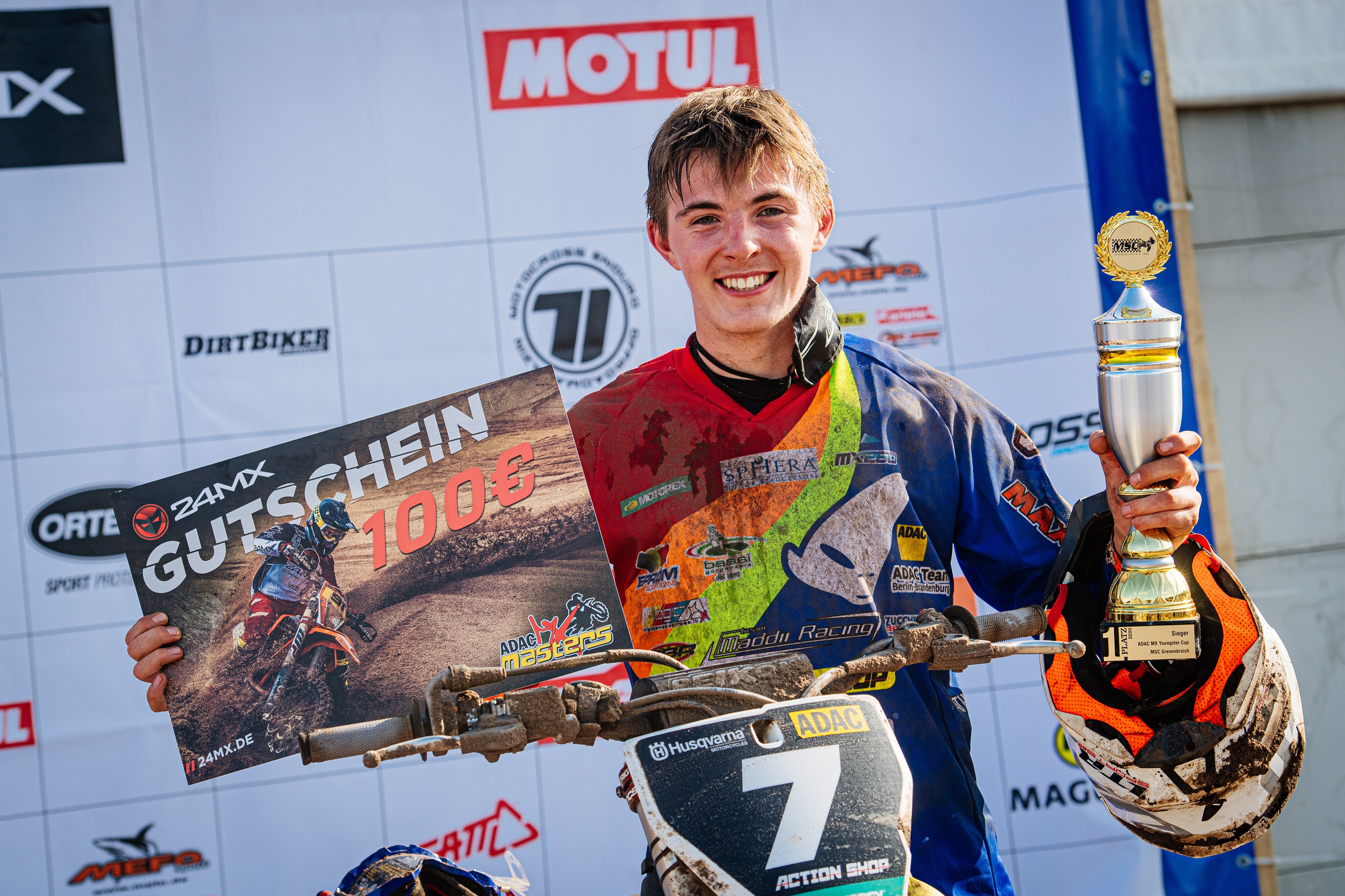 Im ADAC MX Youngster Cup lieferte Maximilian Spies nach einer starken Aufholjagd am Vortag zwei weitere starke Rennen zum Gesamtsieg ab. Der Brandenburger gewann in Lauf zwei zunächst den Red Bull Holeshot und wurde danach von den Verfolgern nicht mehr gesehen. Bereits in der ersten Rennrunde distanzierte sich der Husqvarna Junior Madii Racing-Pilot von den Verfolgern Lion Florian und Noah Ludwig und siegte. Im dritten Lauf machte Spies sich die Arbeit deutlich schwerer, nachdem er in der Startkurve mit einem anderen Fahrer kollidierte, und als Vorletzter die Fahrt wieder aufnehmen konnte. Doch mit einem enormen Tempo lag er am Ende der zweiten Runde bereits in den Top Ten. Spies fuhr sich noch bis auf den dritten Platz vor, was ihm seinen ersten Gesamtsieg im ADAC MX Youngster Cup einbrachte. "Ich habe endlich alles umgesetzt, was in mir steckt", strahlte der Sieger überglücklich. "Nach dem Holeshot im zweiten Lauf konnte ich erstmals so ein hochkarätiges Rennen anführen und wusste im ersten Moment gar nicht, was ich tun soll. Ich habe mich dann für Vollgas entschieden. Nach dem Sturz im dritten Lauf wusste ich, dass ich in die Top drei muss und habe alles dafür gegeben." Für Tensfeld zeigt er sich selbstbewusst: "Red Plate verteidigen und den Titel holen ist die Devise!"