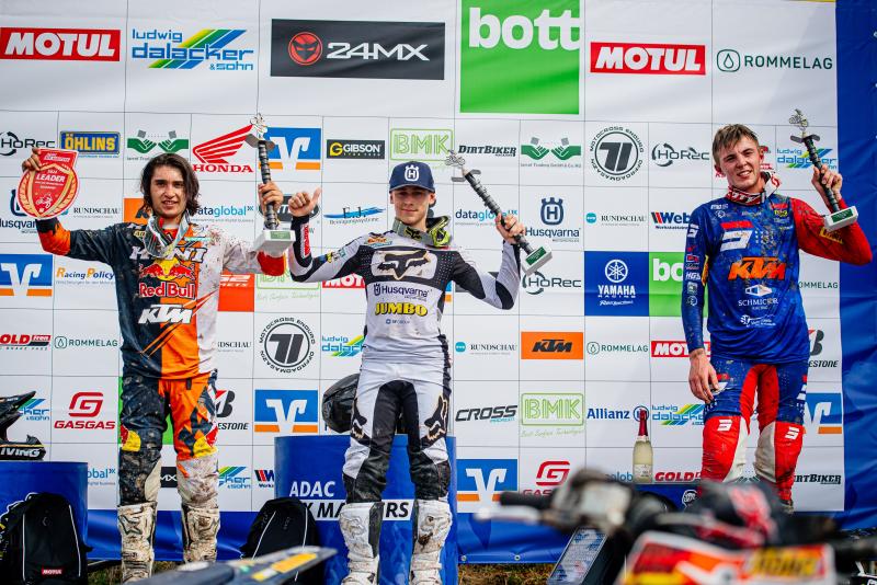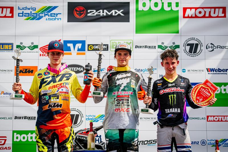 In der jüngsten Rennklasse setzte sich Gyan Doensen auf der Rennstrecke „Auf der Wacht“ mit zwei Laufsiegen und damit der Maximalpunktzahl durch. Im ersten der zwei Wertungsläufe besiegte er den LS2 Best Qualifier Mick Kennedy (NL/Motocross AAD), der den Red Bull Holeshot gewann, und Dex Kooiker (NL/Bloody Harry Energy/RGX MX Team). Kennedy ging im zweiten Rennen beim Start zu Boden und konnte das Rennen erst mit fast einer Runde Rückstand aufnehmen, wodurch er punktelos blieb. Kooiker wurde im zweiten Lauf erneut Dritter, dieses Mal musste er Áron Katona (HUN/HTS Team) den Vorrang lassen. Hinter Doensen, Kooiker und Katona rundeten Kjetil Oswald (CH/Kosak Racing Team) und Jayson Van Drunen (NL/SHR Motorsports/Yamaha Motor Europe) die Gesamt-Top-Fünf ab. Der Meisterschaftsführende Maxime Lucas hatte zwei schlechte Starts und ging im zweiten Rennen dabei zu Boden. Er kämpfte sich dann vom Ende des Feldes noch bis auf den 16. Platz vor. Jonathan Frank hatte ebenfalls ein herausforderndes Wochenende, sah jedoch bis zur letzten Runde des zweiten Laufes wie der neue Tabellenführer aus. Doch nach einem Sturz in der letzten Runde verlor er drei Positionen, wodurch Lucas nach wie vor die Tabelle anführt. Sein Vorsprung ist jedoch bis auf einen Punkt geschrumpft.