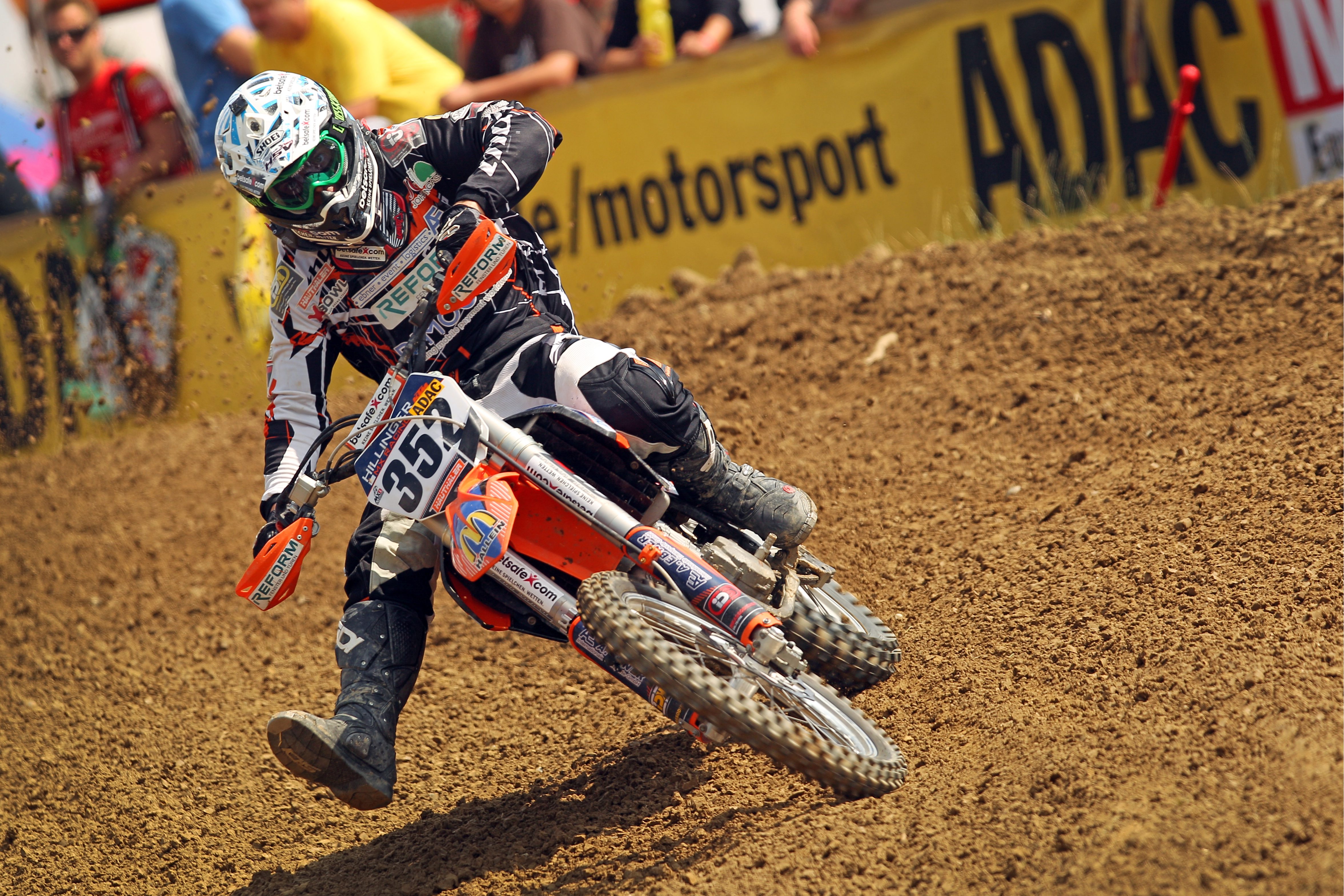 Ried im Innkreis. Nach einem kräftigen Regenguss am Freitag herrschten am Samstag beim ADAC MX Masters im österreichischen Ried mit sonnigen 25 Grad optimale Bedingungen für die insgesamt 160 Fahrer aus 20 Nationen, die auf der 1890 Meter langen Lehmbodenstrecke an den Start gingen. In der Hauptklasse des ADAC MX Masters konnte sich der 26-jährige Österreicher Matthias Walkner (betsafe hillinger mx racing) aus Kuchl im Qualifikationsrennen durchsetzen. Der KTM-Pilot schaffte seine Bestzeit auf den letzten Drücker in der finalen Runde. „Das Qualifying war wahnsinnig anstrengend, da die Strecke sehr tiefe Rillen hatte. Ich musste hier 110 Prozent geben, um wirklich schnell zu sein“, erklärte Walkner. Der 23-jährige Franzose Grégory Aranda (Sturm Racing Team) zeigte sich in guter Form und landete mit seiner Kawasaki auf Position zwei. „Der Regen am Freitag war genau das Richtige für die Beschaffenheit der Piste. Ich bin gespannt, wie stark ich im Rennen bin.“ Sehr zufrieden gab sich auch der Ungar Kornel Nemeth (HTS KTM). Der 30-Jährige konnte gut in seinen Rhythmus finden und freute sich am Ende über seinen dritten Platz vor Lokalmatador Pascal Rauchenecker (AUT/HSV Ried, KTM).