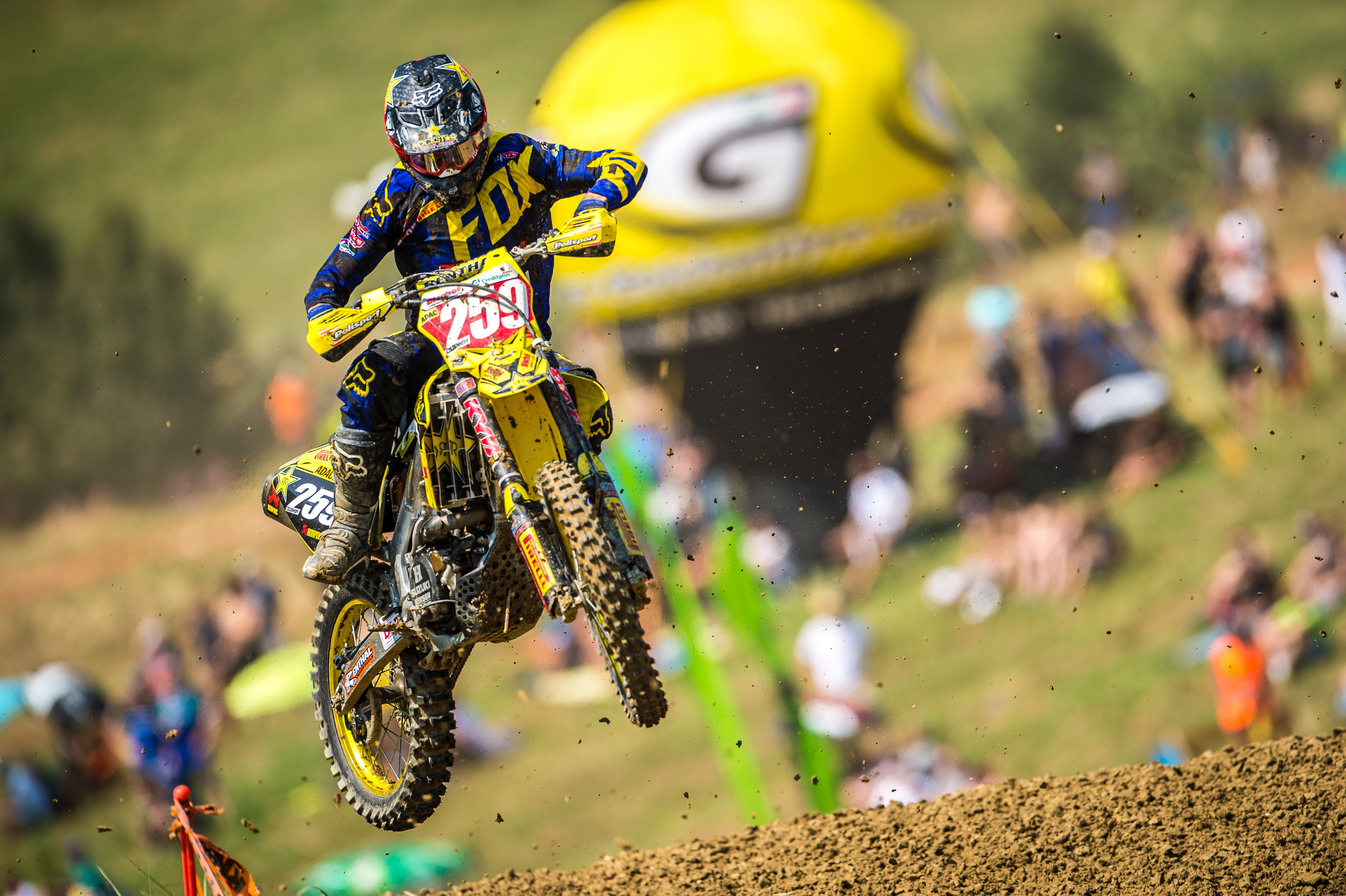 „Ich fühlte mich unglaublich gut auf meiner Maschine und auf der Strecke während des Rennens. Es hat Spaß gemacht, nach meinem Einsatz in Aichwald wieder in der Serie zu starten. Und noch schöner ist es oben auf dem Podium“, kommentierte der 18-jährige Gajser seinen Erfolg. Er verwies den niederländischen WM-Fahrer und Meisterschaftsführenden Glenn Coldenhoff (24/Team Rockstar Energy Suzuki Europe) auf Platz zwei. „Meine Starts wurden mir diesmal zum Verhängnis. In beiden Läufen sind mir meine Hinterräder durchgedreht und ich bin nicht schnell genug weggekommen. Bis auf den zweiten Platz konnte ich mich in beiden Rennen wieder vorarbeiten, doch Gajser war zu weit weg“, sagte der potenzielle Titelanwärter der Internationalen Deutschen Motocross Meisterschaft. Dritter in der Gesamtwertung wurde sein Teamkollege Jeremy Seewer (21) aus der Schweiz. Lokalmatador Pascal Rauchenecker vom veranstaltenden HSV Ried, verpasste vor heimischem Publikum nur knapp das Podium (Cofain Racing KTM). „Ich ärgere mich nicht, denn ich konnte der Spitze ordentlich Druck machen. Am Ende hat es leider nicht ganz gereicht“, sagte der 22-Jährige, der nur zwei Kilometer von der Strecke entfernt in Eitzing wohnt. Hinter ihm reihte sich der deutsche Titelverteidiger Dennis Ullrich (21/Team Castrol Power1 Suzuki Moto-Base) aus Kämpfelbach ein. In der Gesamtwertung bleibt Coldenhoff mit 264 Punkten an der Spitze, gefolgt von Ullrich (213 Zähler) und Seewer mit 209 Punkten.