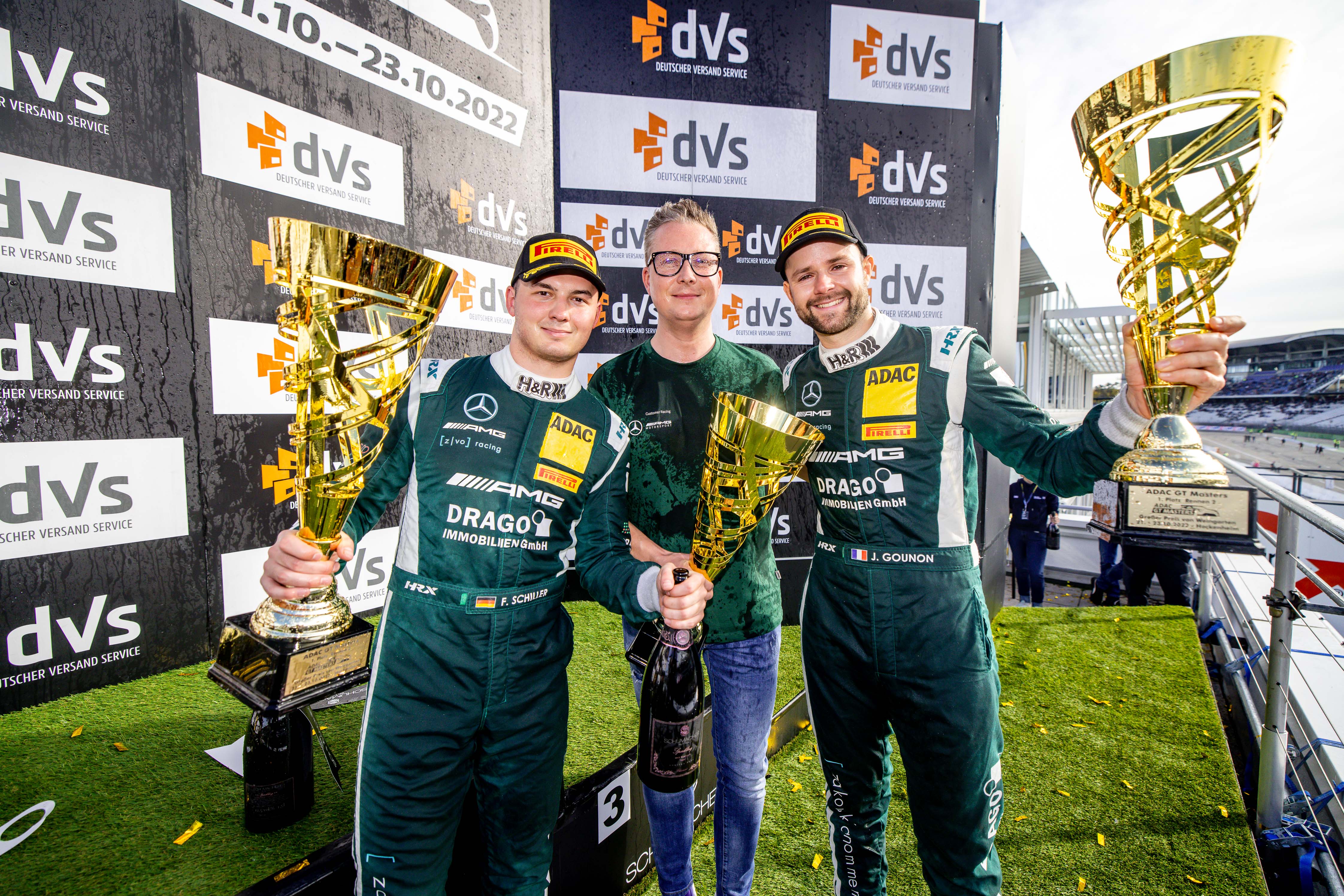 Feier auf dem Podium mit Schaumwein von Serienpartner Schumacher Selection