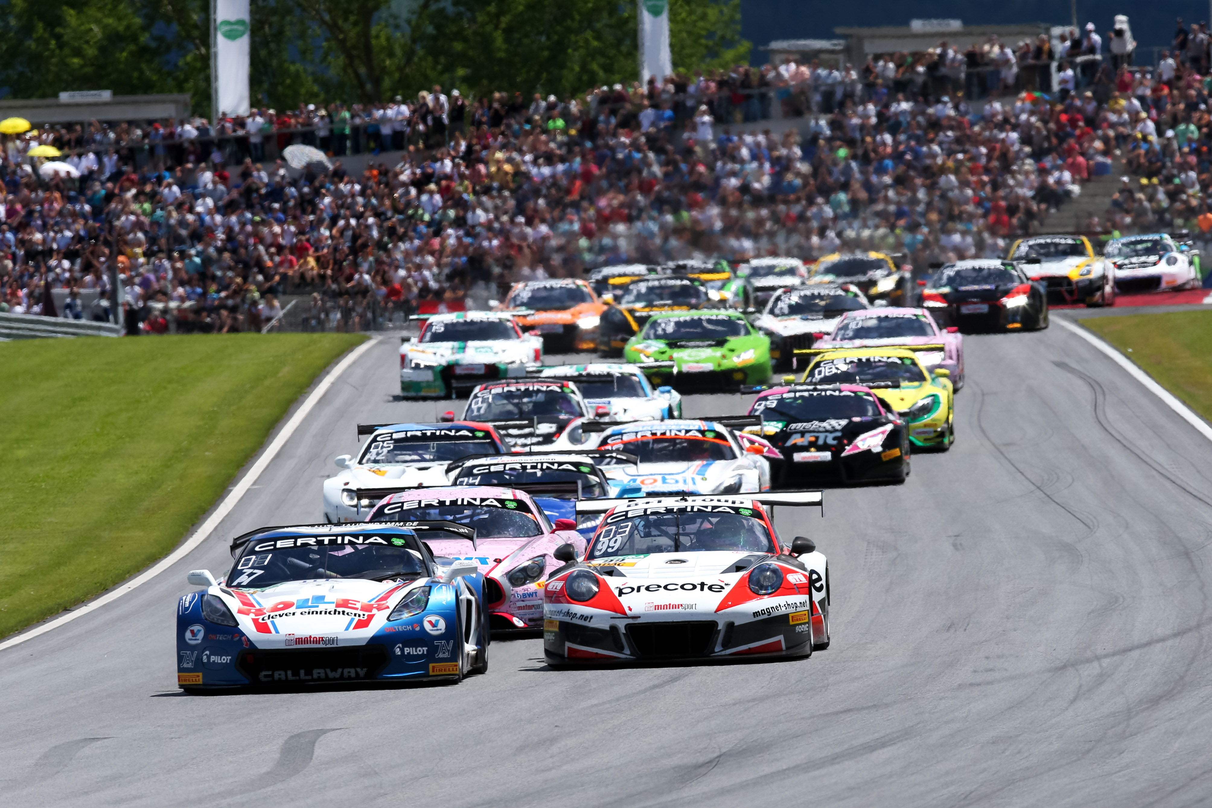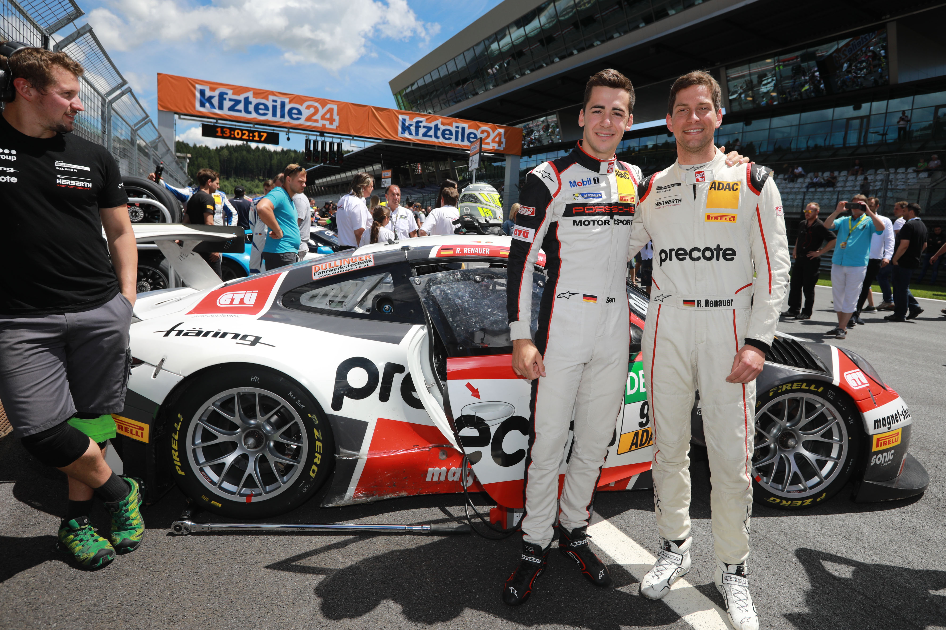 Ranked third, fourth, fifth and sixth, Robert Renauer (32, DEU) & Sven Müller (25, DEU, both Precote Herberth Motorsport) in the Porsche 911, Mercedes drivers Luca Stolz (21, DEU) & Luca Ludwig (27, DEU, both Mercedes-AMG Team ZAKSPEED) and the two Lamborghini crews from GRT Grasser Racing Ezequiel Perez Companc (22, RA) & Mirko Bortolotti (27, I) and Rolf Ineichen (39, CH) & Christian Engelhart (30, DEU) are closely bunched together separated by just four points. While the two Porsche and Lamborghini pairings have each achieved a win, Stolz & Ludwig have yet to stand on the top rung of the podium. Mathieu Jaminet (22, F) and Michael Ammermüller (31, DEU, both KÜS Team75 Bernhard) were the sixth pair to win so far this season. The driver pairing fielded by the team of two-time Le Mans winner, Timo Bernhard, is currently ranked eighth.