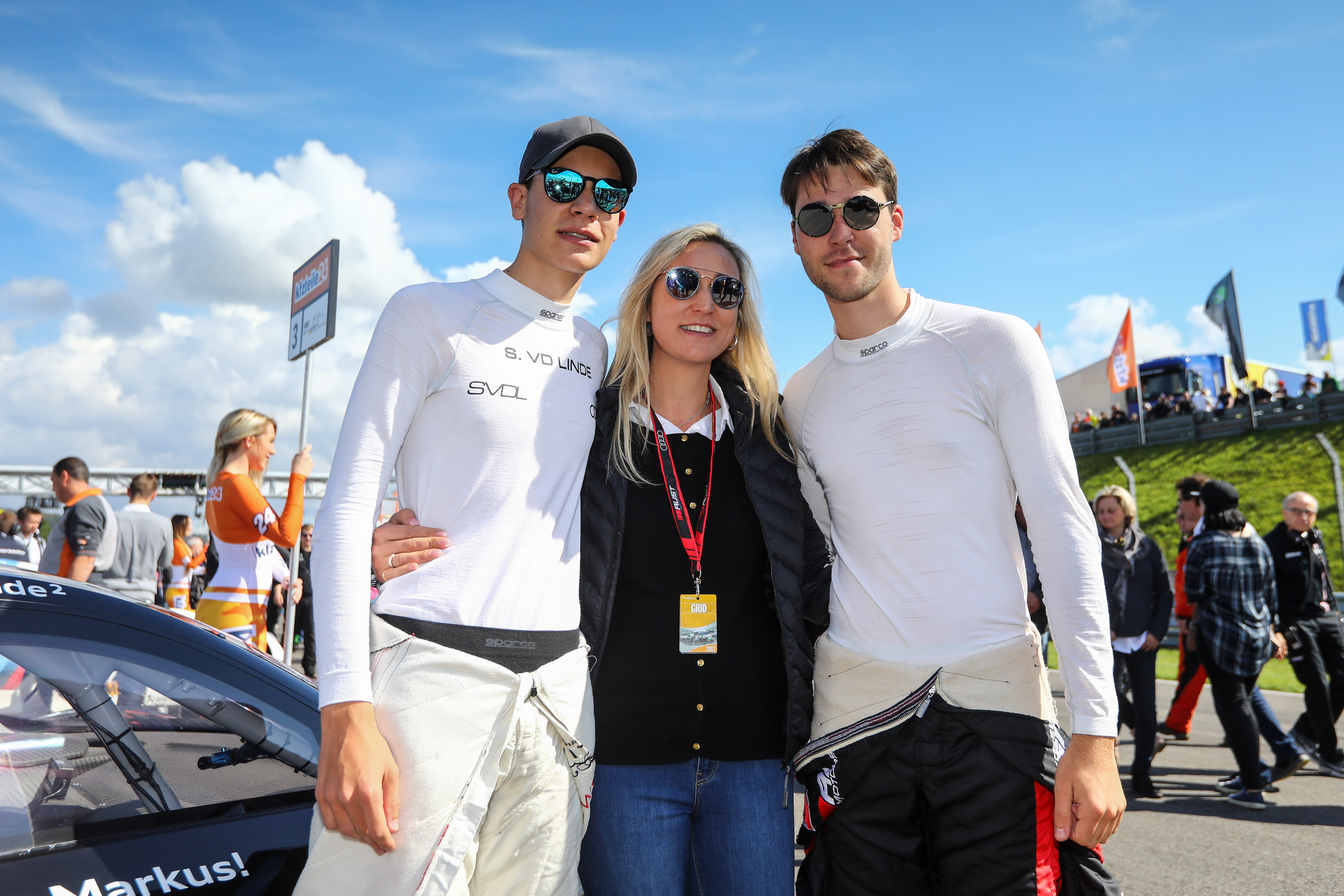 Mütterlicher Beistand: Kelvin van der Linde (21/ZA, Aust Motorsport) und sein Bruder Sheldon (18/ZA, Aust Motorsport) haben am Sachsenring ihren größten Fan in der Box. Ihre Mutter Bernadine van der Linde ist extra aus Johannesburg angereist, um live mitzuerleben, wie sich ihre Söhne zum ersten Mal überhaupt einen Rennwagen teilen. „Ich besuche pro Saison drei bis vier Rennen“, so die Südafrikanerin. Die 46-Jährige bringt ihren Söhnen Glück: Im Samstagsrennen fuhren sie im Audi R8 LMS auf das Podest der Junior-Wertung, zudem gelang Sheldon der Premierensieg in der ADAC TCR Germany.