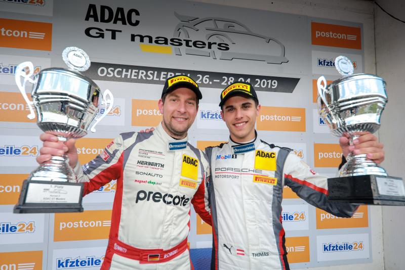 Oschersleben. Die Operation Titelverteidigung ist angelaufen: Vorjahreschampion Robert Renauer (34/Jedenhofen) und sein neuer Teamkollege Thomas Preining (20/A, beide Precote Herberth Motorsport) führen nach ihrem Sieg im Sonntagsrennen des ADAC GT Masters-Auftakts in Oschersleben die Tabelle an. Die Porsche-Piloten gewannen das zweite von 14 Saisonrennen vor den Audi-Fahrern Ricardo Feller (18/CH) und Dries Vanthoor (21/B, beide Montaplast by Land-Motorsport) und Rolf Ineichen (40/CH) und Franck Perera (34/F, beide Orange1 by GRT Grasser) im Lamborghini Huracán GT3 Evo. „Definitiv ein sehr gutes Auftaktwochenende“, so Sieger Renauer. „Viel besser hätte die Saison für uns nicht beginnen können.”