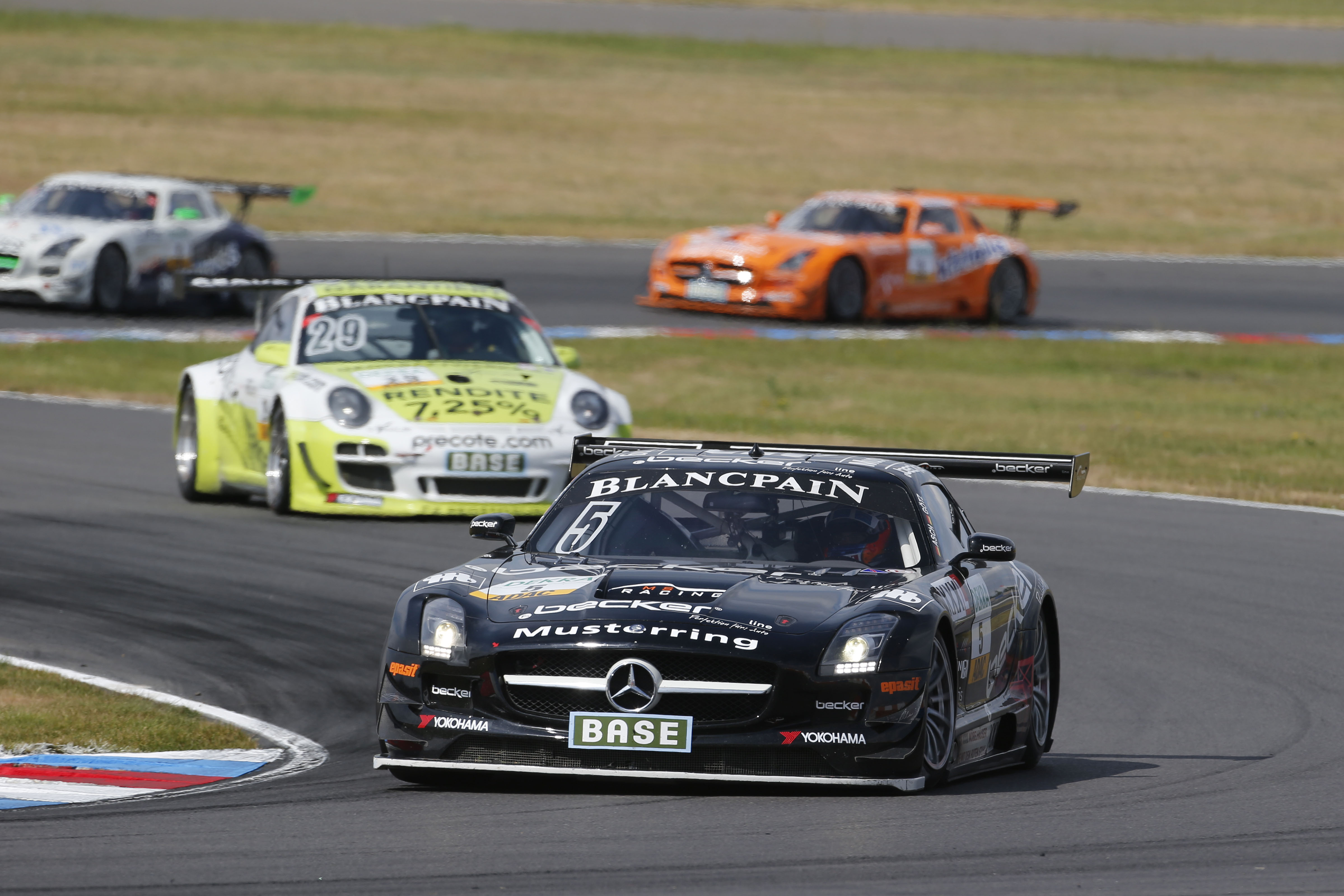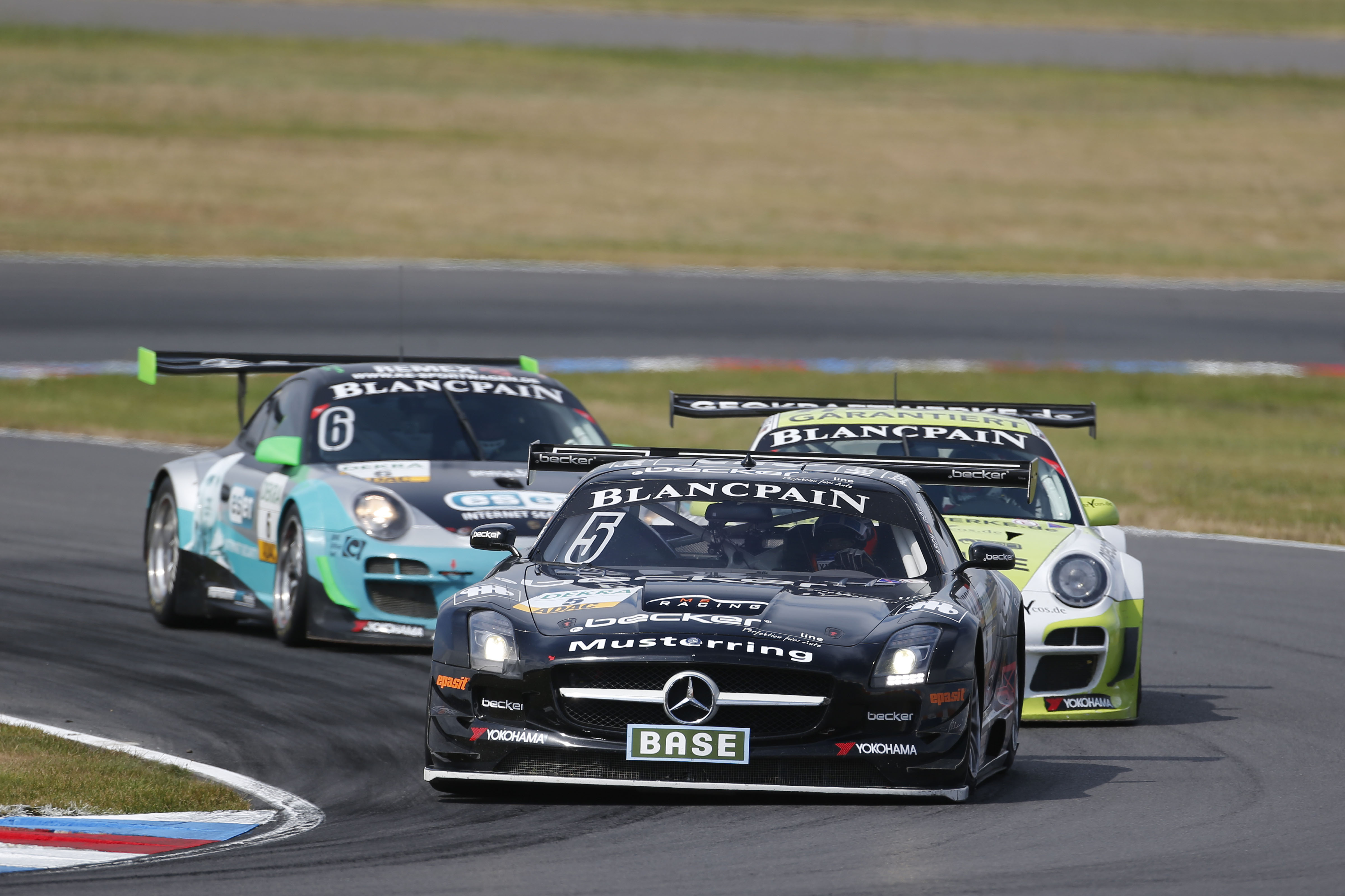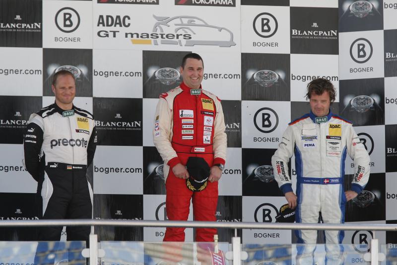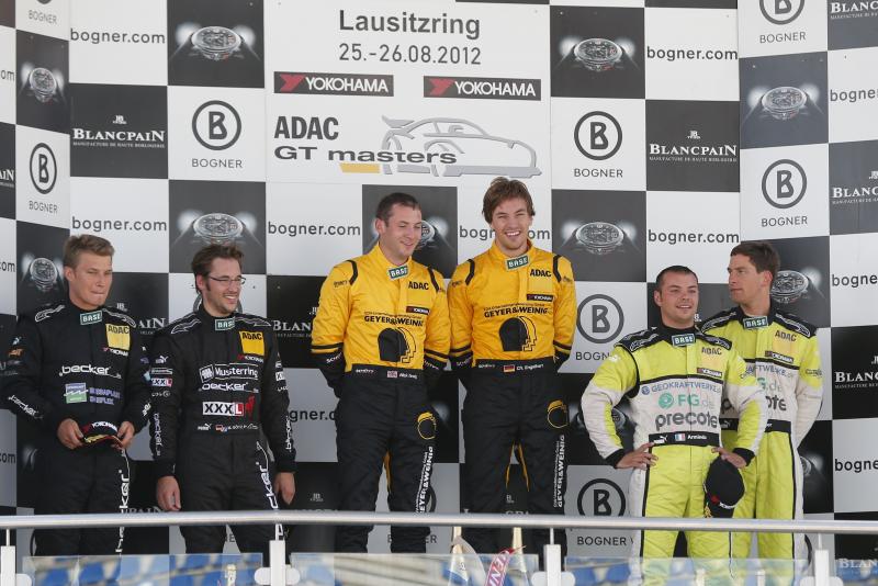 Die finalen 13 Rennminuten wurden dann für Tandy, der durch einen perfekten Boxenstopp den Porsche von Engelhart ohne Verlust der Führung übernahm, zu einem schweren Sprint. Die Verfolgerrolle des schwarz-gelben Porsche übernahm Maximilian Götz im Mercedes-Benz SLS AMG, den ein guter Boxenstopp von Platz vier auf die zweite Position nach vorn brachte. Im Zentimeterabstand jagte der schwarze Mercedes-Benz den Porsche über den Lausitzring. In den beiden finalen Runden setzte sich Götz zwei Mal neben Tandy, der Brite wusste die Attacken dank der besseren Traktion seines Porsche aber stets erfolgreich zu parieren und rettete seinen dritten Saisonsieg knapp vor Götz über die Ziellinie. „Je länger das Rennen dauerte, desto schneller wurde der Mercedes-Benz und ich musste alle Stärken des Porsche ausspielen, um vorn zu blieben“, beschrieb Tandy. „Es war ein sehr faires Duell, wir haben uns beide Platz gelassen und es hat Spaß gemacht.“ Für Christian Engelhart, der durch den dritten Saisonsieg die Tabellenführung vor Asch/Götz übernimmt, war der Sieg vor allem eine Teamleistung. „Wir haben als Team heute einen super Job gemacht und mussten im Duell mit dem schnellen Mercedes in allen Bereichen an das Limit gehen.“ Maximilian Götz war mit Platz zwei nicht unzufrieden. „Im Hinblick auf die Meisterschaft habe ich nichts riskiert. Ich konnte mich zwei Mal neben Tandy setzen, doch beim Herausbeschleunigen war er immer auf der besseren Linie.“