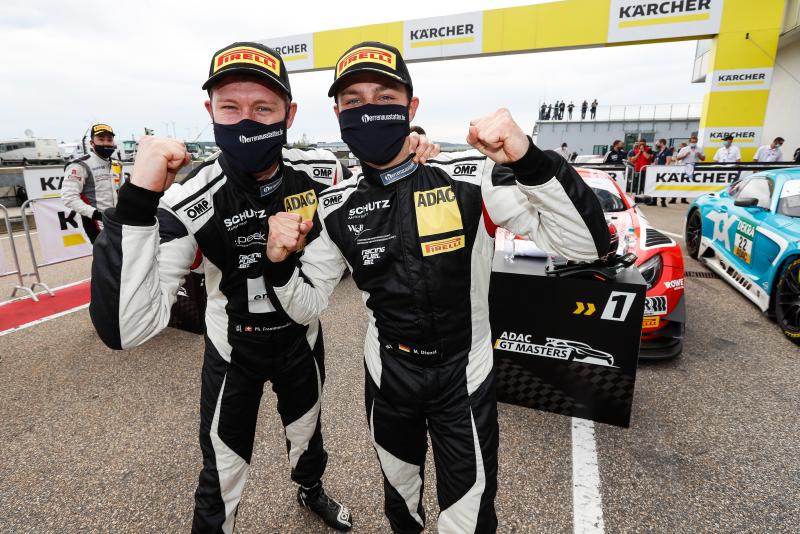 Hohenstein-Ernstthal. Souveräne Vorstellung auf dem Sachsenring: Die Mercedes-Fahrer Marvin Dienst (23/Lampertheim) und Philipp Frommenwiler (31/CH, beide DLV-Team Schütz Motorsport) fuhren am Samstag auf dem Sachsenring von der Pole-Position aus ihren ersten Sieg im ADAC GT Masters ein. Zweite wurden auf der spektakulären Berg-und-Tal-Bahn Robert Renauer (35/Vierkirchen) und Sven Müller (28/Bingen am Rhein, beide Precote Herberth Motorsport) im besten Porsche. Platz drei ging an die Mercedes-AMG-Fahrer Luca Stolz (25/Brachbach) und Maro Engel (35/Monte Carlo, beide Toksport WRT), die zur Saisonhalbzeit nach sieben von 14 Rennen wieder an der Tabellenspitze stehen. „Ich habe die letzten Runden wirklich genossen“, so Sieger Philipp Frommenwiler im Ziel. „Wir hatten keinen einfachen Saisonbeginn und sind jetzt wieder auf der Erfolgsspur. Marvin hat schon im Qualifying mit der Pole-Position einen Topjob gemacht und das Team hat uns ein sensationelles Auto für das Rennen gegeben.“