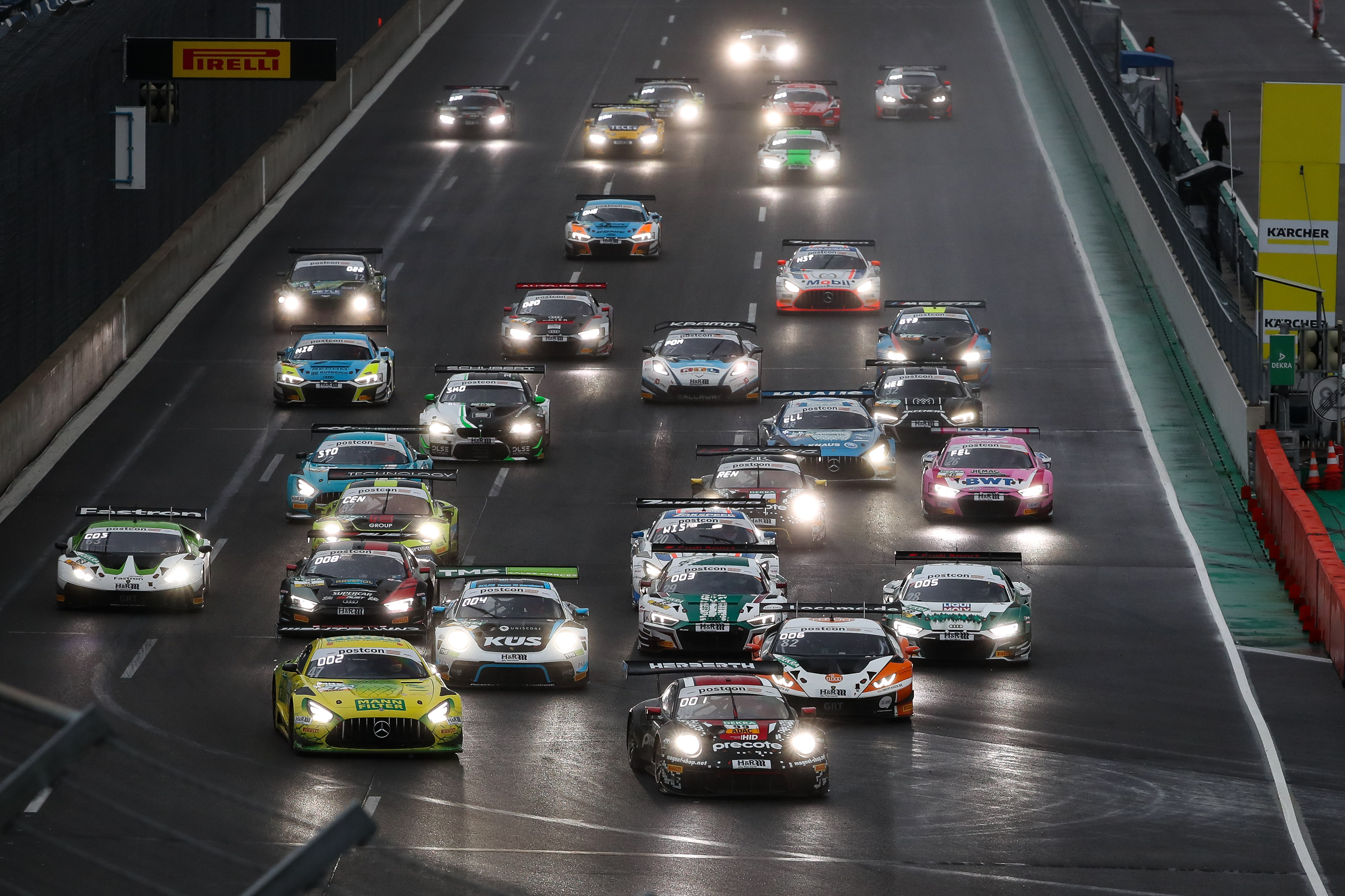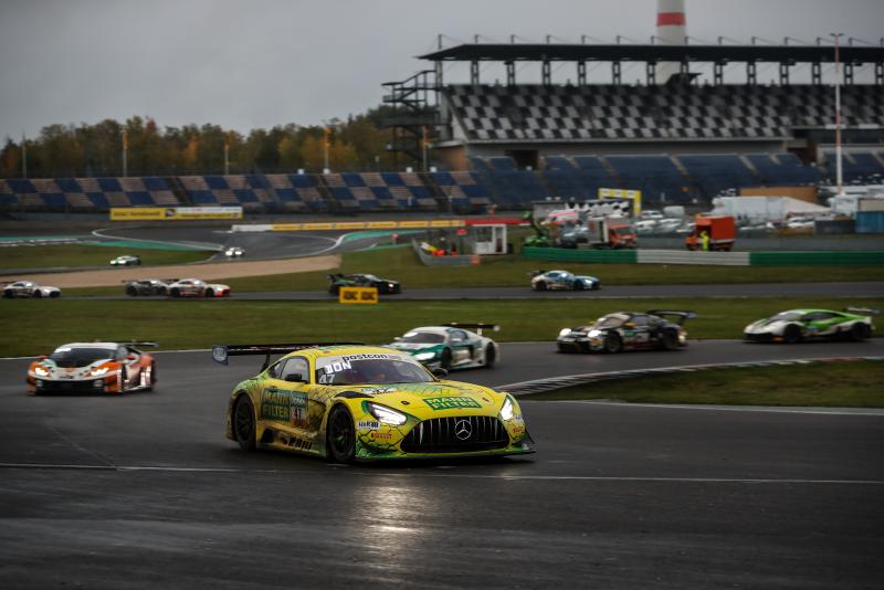 Die erste Hälfte des nassen elften Saisonrennens stand im Zeichen von Pole-Setter Robert Renauer. Der Porsche-Pilot blieb beim Start vorn, dahinter folgte Mercedes-AMG-Pilot Indy Dontje, der ebenfalls aus der ersten Reihe gestartet war. Das Spitzenduo setzte sich danach leicht vom Feld ab, bis in der achten Runde für drei Umläufe das Safety-Car zur Bergung des Audi R8 LMS von Hendrik von Danwitz ausrückte. Renauer und Dontje blieben auch danach bis zum Boxenstoppfenster vorn. Beide absolvierten schon früh die Fahrerwechsel zu Klaus Bachler und Maximilian Götz.