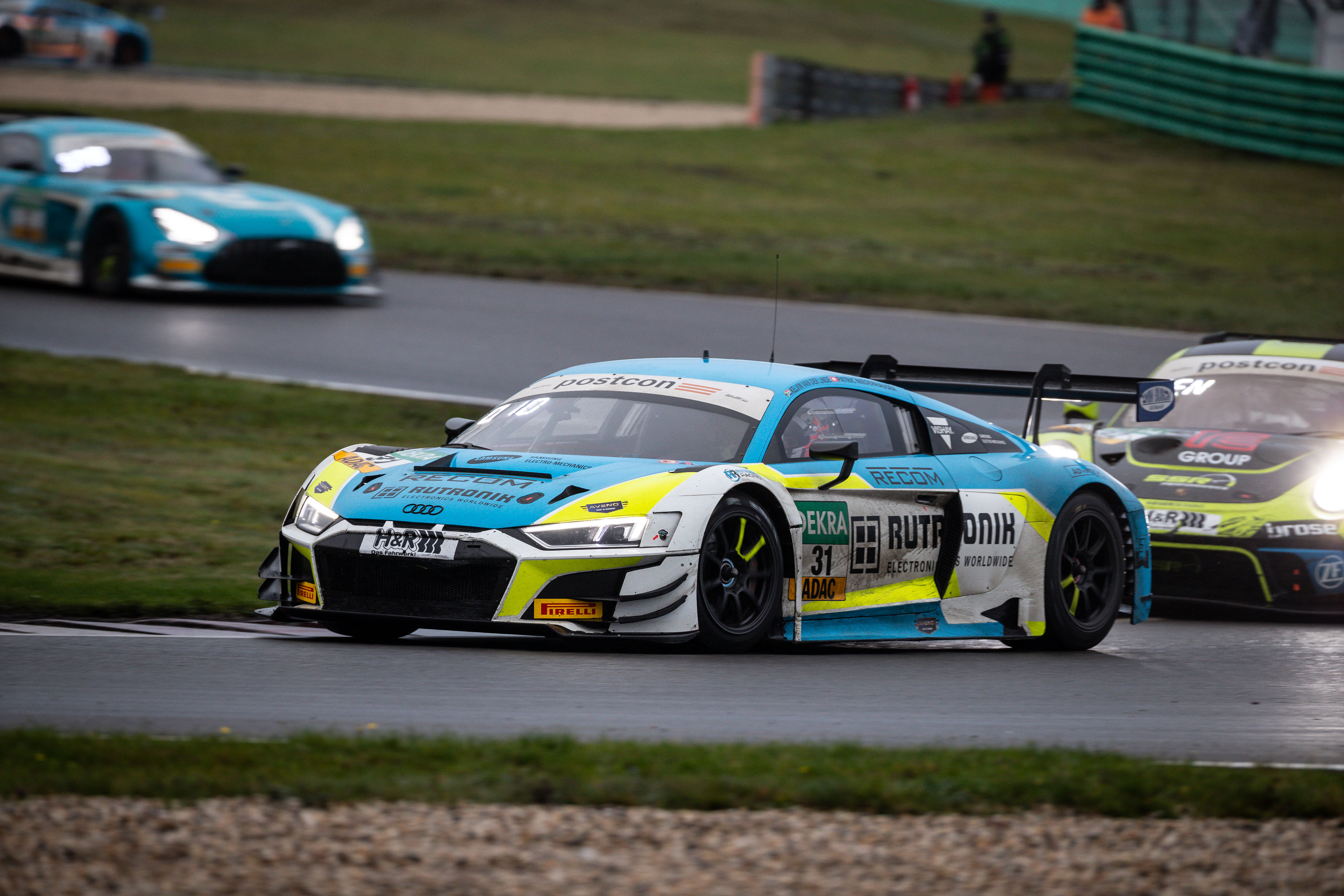 Direkt dahinter folgten als Sechste die Gesamtzweiten Christian Engelhart (33/Starnberg) und Michael Ammermüller (34/Rotthalmünster). Ihr Rückstand in der Gesamtwertung beträgt nun zwei Zähler, in der Teamwertung liegt deren Mannschaft SSR Performance nun drei Rennen vor Saisonende zwei Punkte vor Rutronik Racing an der Spitze. Hamza Owega (29/Köln) und Dennis Marschall (24/Eggenstein, beide Rutronik Racing) kamen mit ihrem Audi auf Rang sieben vor den Corvette-Fahrern Markus Pommer (29/Neckarsulm) und Jeffrey Schmidt (26/CH, beide Callaway Competition). Die Top 10 vervollständigten Ricardo Feller (20/CH) und Stefan Mücke (38/Berlin, beide BWT Mücke Motorsport) in einem weiteren Audi R8 LMS und Constantin Schöll (22/A) und Jordan Pepper (24/ZA, beide T3-HRT-Motorsport), die ihr bisher bestes Ergebnis mit dem Bentley Continental GT3 einfuhren.