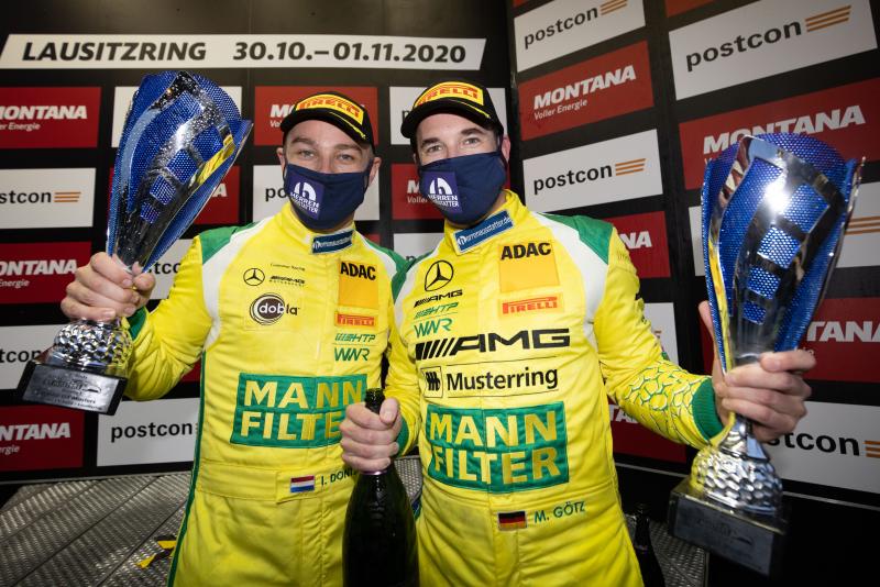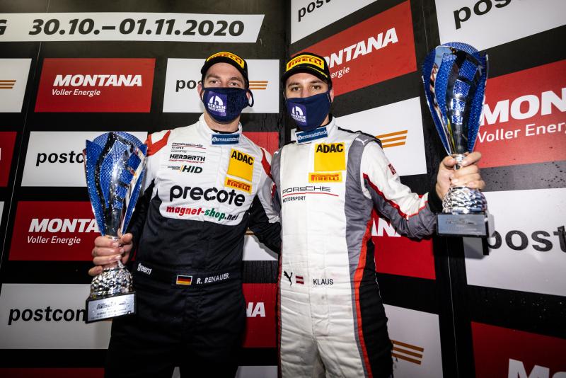 Dontje und Götz verpassten den Sieg zwar knapp, durften sich als Zweite aber über ihr erstes Podium der Saison freuen. Alfred Renauer und Sebastian Asch sahen als Dritte die Zielflagge, wurden aber nachträglich wegen eines Vergehens unter gelben Flaggen mit einer 30-Sekunden-Strafe belegt, die das Duo aus den Top 10 warf. Rang drei ging daher an ihre Teamkollegen Robert Renauer und Klaus Bachler. Renauer verkleinert damit als bestplatzierter Fahrer unter den Titelkandidaten seinen Punkterückstand zur Tabellenspitze auf 15 Punkte. Diese verteidigten als Fünfte hinter den Porsche-Fahrern David Jahn (29/Leipzig ) und Jannes Fittje (21/Langenhain, beide Küs Team75 Bernhard), dem Rennsieger der Pirelli-Junior-Wertung, die Titelverteidiger Patric Niederhauser (29/CH) und Kelvin van der Linde (24/ZA, beide Rutronik Racing) im Audi R8 LMS.
