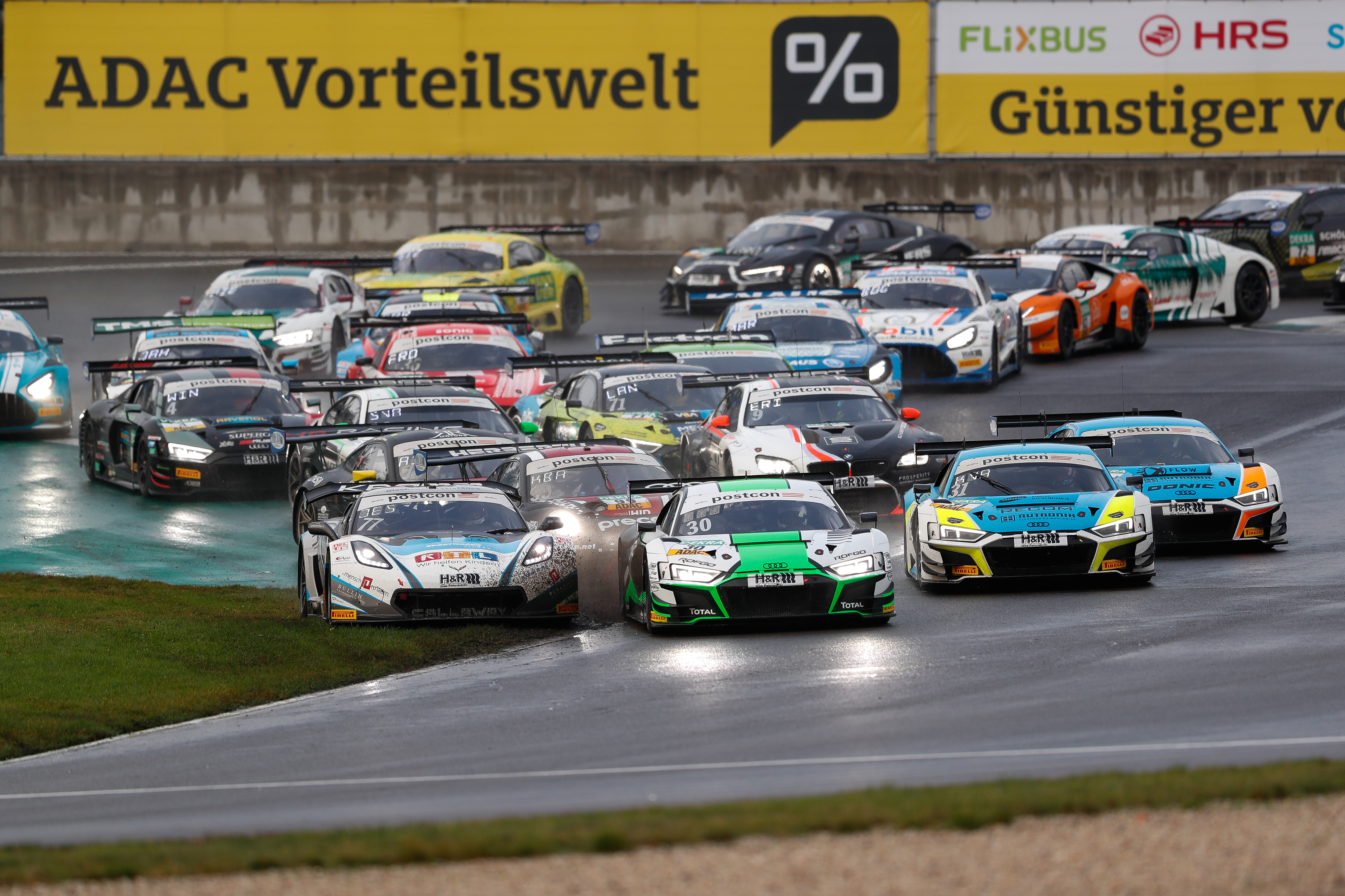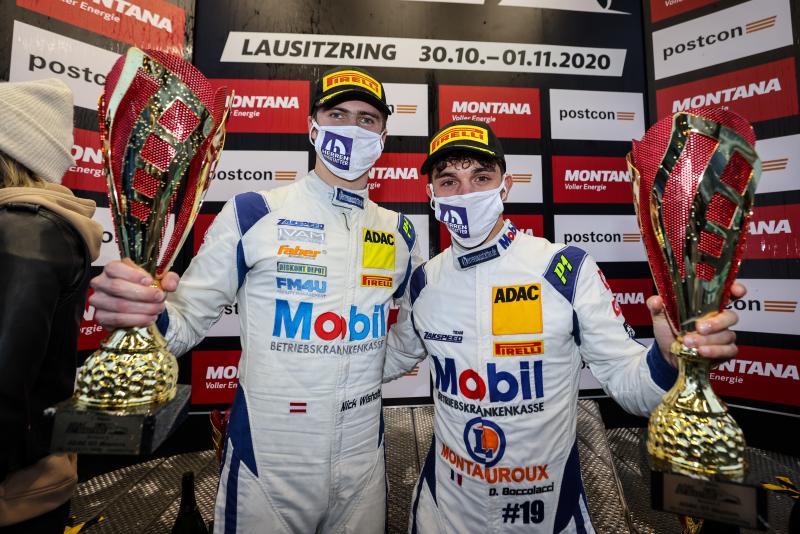 Klettwitz. Von Startplatz 17 zum Sieg: Mit einer starken Leistung gelang den Mercedes-AMG-Piloten Mick Wishofer (21/A) und Dorian Boccolacci (22/F, beide Team Zakspeed BKK Mobil Oil Racing) im Sonntagsrennen des ADAC GT Masters auf dem Lausitzring ein Überraschungscoup. Das Duo sicherte sich bei nassen Bedingungen seinen ersten Sieg in der "Liga der Supersportwagen". Rang zwei holten sich Robert Renauer (35/Vierkirchen) und Klaus Bachler (29/A, beide Precote Herberth Motorsport). Renauer verbesserte sich damit auf den zweiten Gesamtrang. Die dritte Position holte sich das Schwesterauto von Alfred Renauer (35/Jedenhofen) und Sebastian Asch (34/Ammerbuch, beide Precote Herberth Motorsport). Bei zwei noch ausstehenden Rennen führen die Audi-Fahrer und Titelverteidiger Patric Niederhauser (29/CH) und Kelvin van der Linde (24/ZA, beide Rutronik Racing) weiter die Tabelle an und liegen fünf Punkte vor Renauer und sieben Punkte vor dem Porsche-Duo Christian Engelhart (33/Starnberg) und Michael Ammermüller (34/Rotthalmünster, beide SSR Performance). "Ein Megaergebnis!", jubelte Sieger Dorian Boccolacci. "Ich bin wirklich stolz auf unser Team, denn unser Auto war schon das ganze Rennwochenende über wirklich gut."