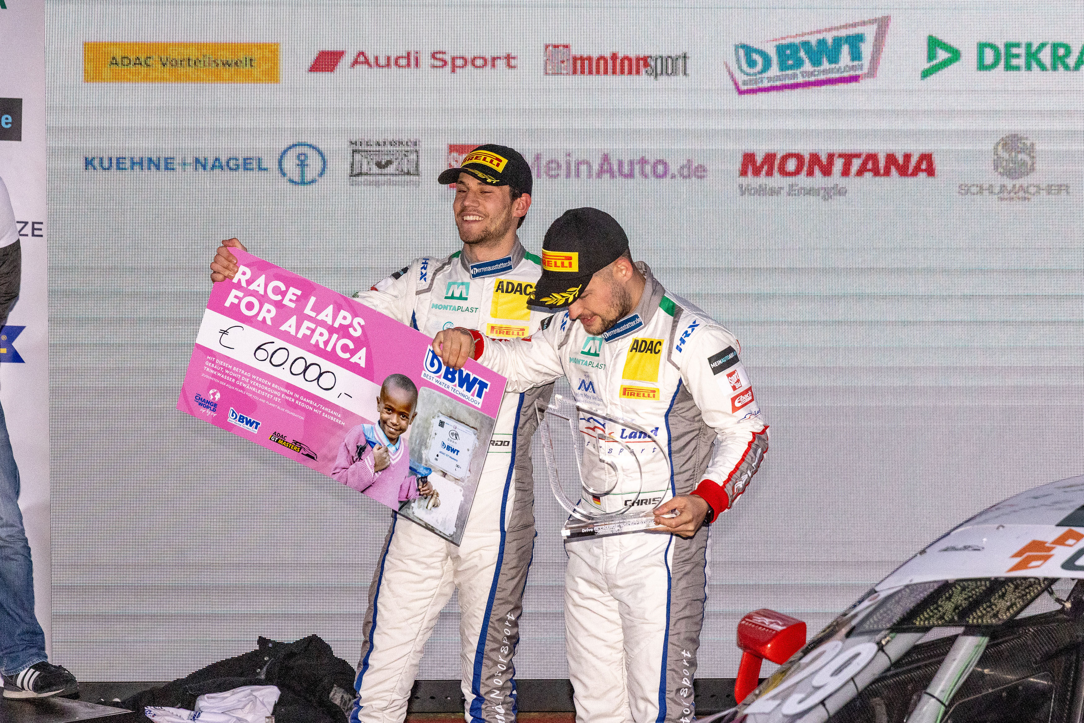 München. 12.181 Rennrunden und jede davon für den guten Zweck. Für jede gefahrene Runde in den 14 Rennen der Int. Deutschen GT-Meisterschaft 2021 spendeten Serienpartner BWT, das führende Wassertechnologie-Unternehmen in Europa, und der ADAC vier Euro. Insgesamt kamen so 48.724 Euro zusammen, dieser Betrag wurde von BWT und dem ADAC auf eine Gesamtsumme von 60.000 Euro aufgestockt. Im Rahmen der b.waterMISSION von BWT, die sich für sauberes Trinkwasser einsetzt, werden mit dem Betrag Brunnen in Gambia und Tansania gebaut. Bei der Siegerehrung der Int. Deutschen GT-Meisterschaft übergaben Lutz Hübner, CMO der BWT AG, und Lars Soutschka, Vorstand ADAC e. V., symbolisch einen Scheck an die Deutschen GT-Meister Ricardo Feller (21/CH) und Christopher Mies (32/Düsseldorf). Auch die von BWT und dem ADAC GT Masters in diesem Jahr initiierte „Bottle Free Zone“ im Fahrerlager war ein voller Erfolg. Rund 100.000 Plastikflaschen wurden durch Wasserspender in den Boxen der Teams, im Media Center und in organisatorischen Bereichen eingespart und damit ein signifikanter Beitrag zur Reduzierung von Plastikmüll geleistet.