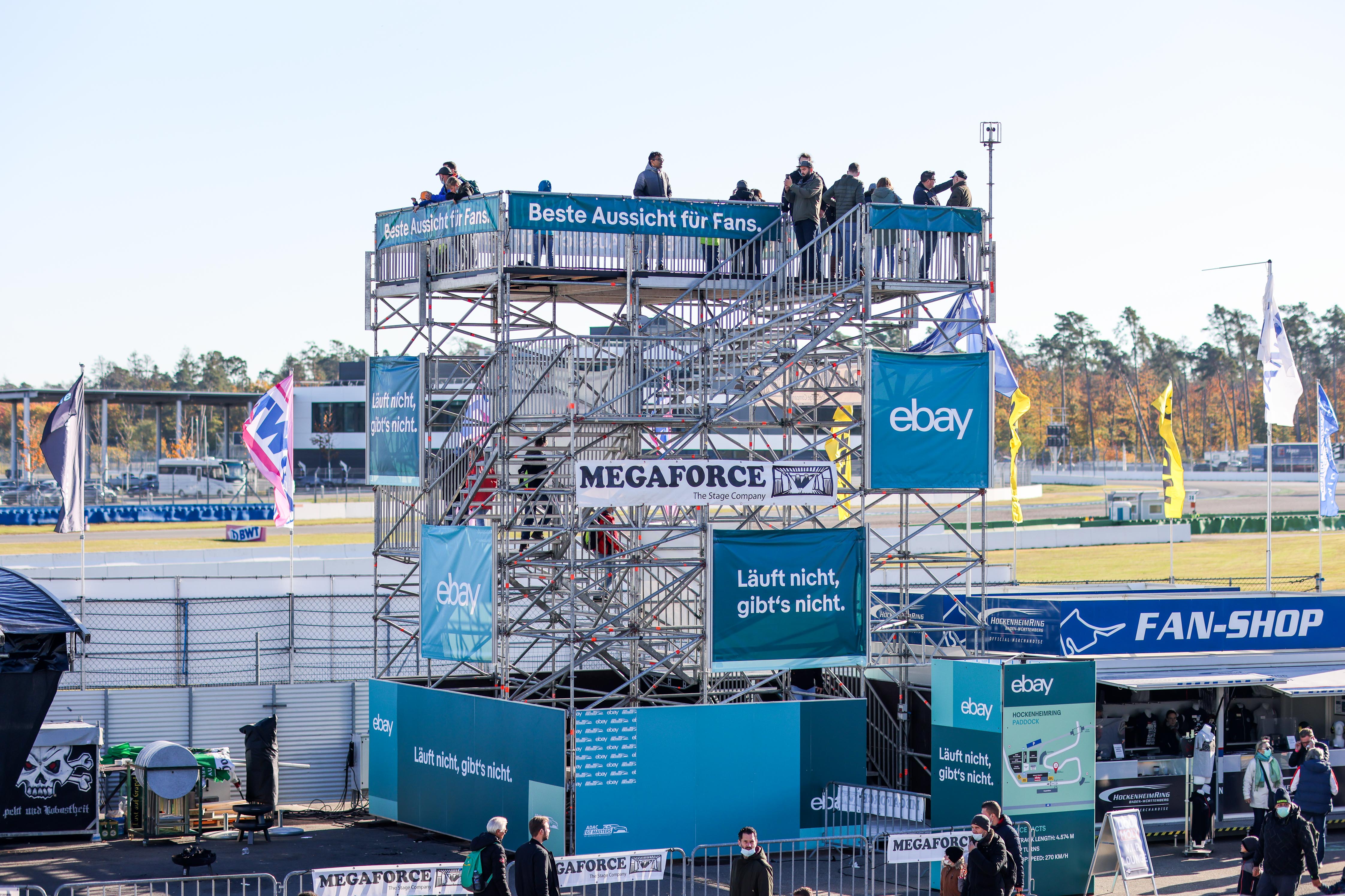 Auch am Nürburgring können sich die Fans im Fahrerlager auf die populäre eBay Box und den einzigartigen eBay Tower freuen. In der eBay Box haben die Fans eine einmalige Sicht in die Boxengasse – auch während der Trainings und Rennen auf der Strecke. Am Sonntag wird dort während des Pitwalk die neueste Ausgabe des Online-Magazins „ADAC GT Masters Backstage“ gesendet, Fans sind dabei willkommen. Ein echter Höhepunkt ist der knapp neun Meter hohe eBay Tower. Von der Aussichtsplattform haben die Besucher einen spektakulären Blick auf die traditionsreiche Rennstrecke in der Eifel.