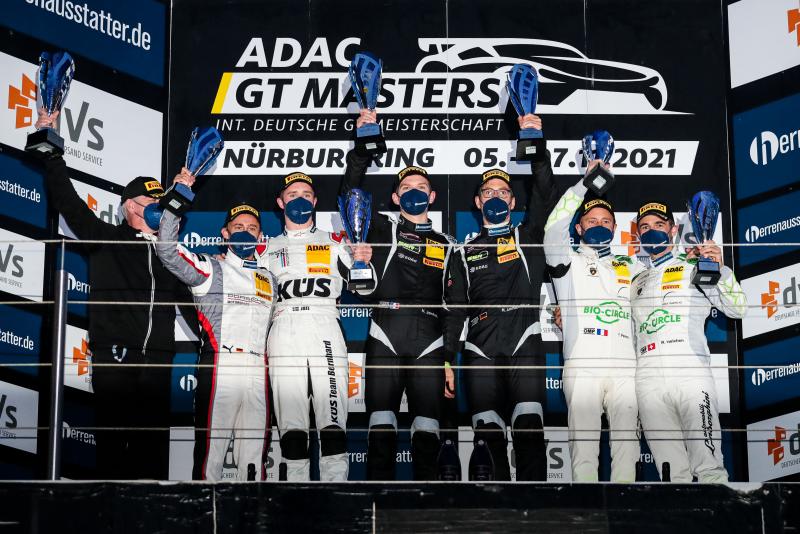 Auch hinter den Siegern Jaminet und Ammermüller zeigte das ADAC GT Masters im letzten Saisonrennen nochmals besten Sport. Marco Holzer und Joel Eriksson setzten sich im Kampf um Platz zwei durch und kamen mit nur 0,3 Sekunden Vorsprung vor den Lamborghini-Fahrern Ineichen und Perera ins Ziel. Vierte wurden ihre Teamkollegen Mirko Bortolotti (31/I) und Marco Mapelli (34/I, beide GRT Grasser Racing Team). Jusuf Owega (19/Köln) und Patric Niederhauser (30/CH) holten beim Heimrennen ihres Teams Phoenix Racing Platz fünf vor dem Mercedes-AMG von Igor Waliłko (24/PL) und Jules Gounon (26/F, beide Team Zakspeed Mobil Krankenkasse Racing), die von Startplatz 21 eine starke Aufholjagd zeigten.