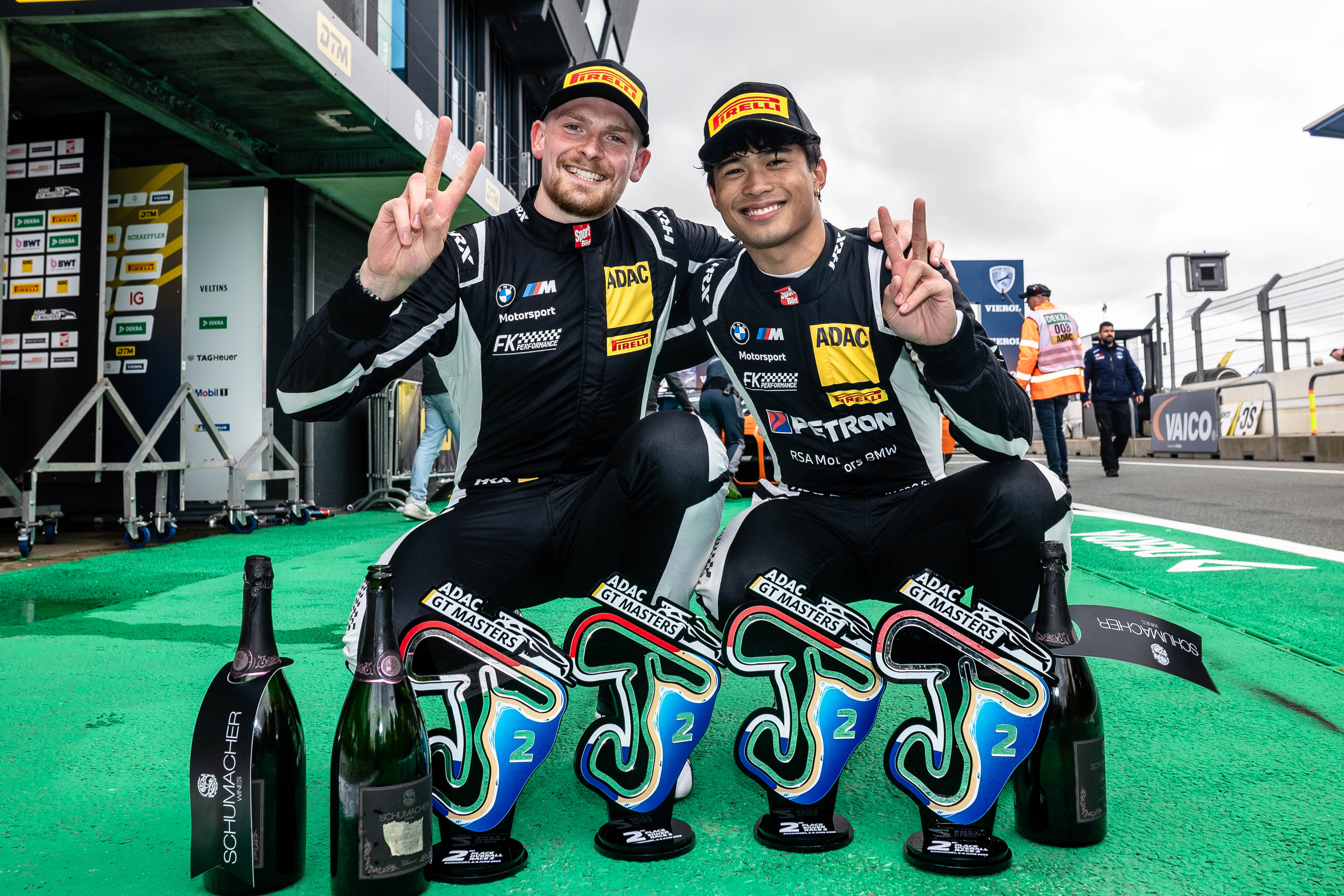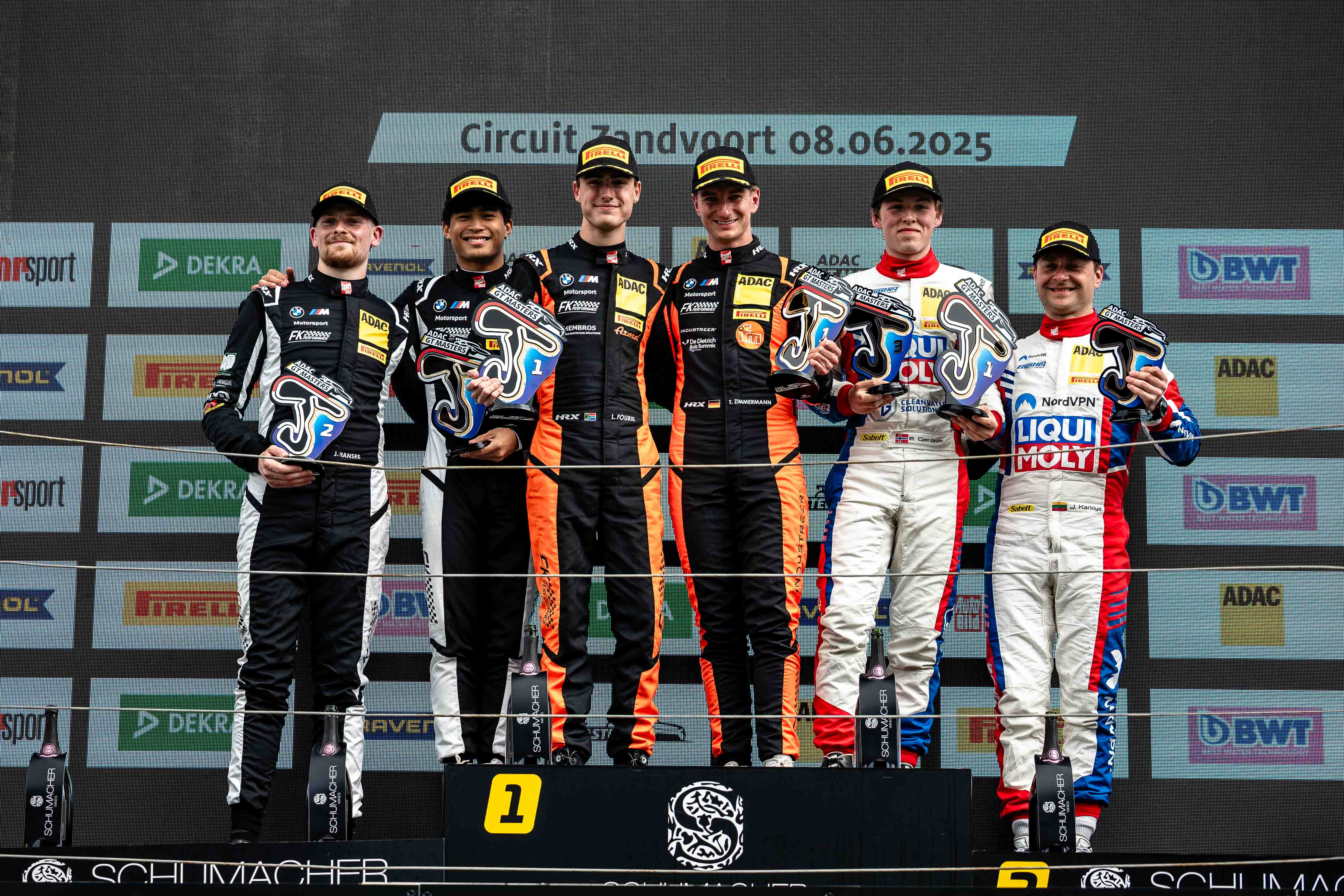 Zandvoort. Spannung bis zur Ziellinie beim Doppelsieg von FK Performance Motorsport im zweiten Rennen des ADAC GT Masters auf dem Circuit Zandvoort. Im rundenlangen Duell um den Sieg setzten sich Tim Zimmermann (28/Langenargen)/Leyton Fourie (19/RSA) mit 0,285 Sekunden Vorsprung vor ihren Teamkollegen Eduardo Coseteng (21/PHL)/Julian Hanses (27/Hilden) durch. Es war der fünfte Sieg und der erste Doppelerfolg des BMW-Teams im ADAC GT Masters. „Es gibt keine Worte, um meine Gefühle zu beschreiben. Es steckt so viel Arbeit dahinter. So viele Jahre wollte ich in einem GT3-Auto fahren. Ich bin so glücklich, dass wir jetzt gewonnen haben – und mit einem so tollen Team ist es umso schöner“, strahlte Rookie Fourie, der seinen ersten Sieg im ADAC GT Masters und gleichzeitig in der „Road-to-DTM“-Wertung feierte. „Die Erinnerung an meinen Stint ist wie ausgelöscht, aber Tim am Ende kämpfen zu sehen, da hat mir wirklich das Herz bis zum Hals geschlagen.“ Für Teamkollege Zimmermann war es der dritte Erfolg in der GT3-Nachwuchsliga des ADAC: „Wir hatten einen schwierigen Start in die Saison und ich bin erleichtert, dass wir nun eine gute Pace haben und entsprechende Ergebnisse erzielen können. Wenn wir jetzt noch im Qualifying etwas zulegen, bin ich absolut zufrieden.“ Das Podium komplettierten Jonas Karklys (35/LIT)/ Emil Gjerdrum (18/NOR/Liqui Moly Team Engstler by GRT) im Lamborghini Huracán GT3 Evo2. Das Duo gewann zum zweiten Mal am Wochenende die Pro-AM-Kategorie. Insgesamt 32.000 Besucher am Wochenende sahen die Rennen des ADAC GT Masters in den Niederlanden.