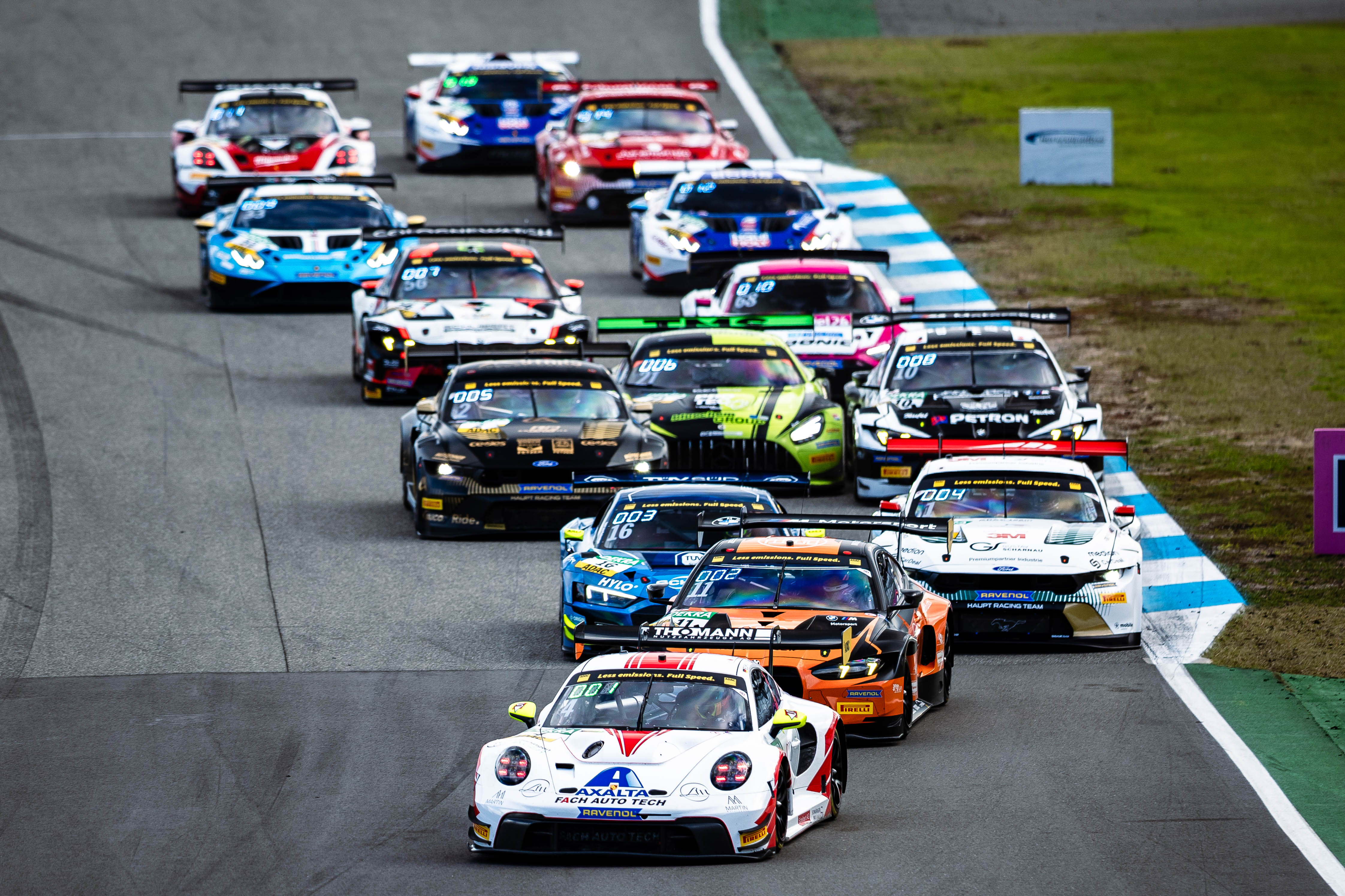 Am Start zum Finalrennen blieb zunächst Polesetter Alexander Fach (23/CHE/Fach Auto Tech) an der Spitze, doch Fourie im BMW arbeitete sich stetig an den führenden Porsche heran. Der Südafrikaner beobachtete Fach genau und machte die Schwachstellen des Porsche aus, um in Runde acht in der Spitzkehre schließlich zum Angriff anzusetzen. Nach einem kurvenlangen Duell ging er in Führung und versuchte fortan die Reifen für seinen Teamkollegen Zimmermann zu schonen. Dahinter lieferten sich Hantke und Owega zu Beginn ein kurzes Duell, hielten für ihren Stint aber letztlich die Positionen drei und vier. Nach dem Fahrerwechsel und der reglementbedingt kürzeren Standzeit kam Schwarzer (36/DEU) im Porsche mit knapp zehn Sekunden Vorsprung auf Zimmermann im BMW zurück auf die Strecke. Während dieser konstant an den Spitzenreiter heranfuhr, kam von Platz vier der neue Meister Wiebelhaus mit starken Rundenzeiten. Innerhalb kürzester Zeit arbeitete er sich in seinem Ford Mustang GT3 zunächst an Bulatov, dann an Zimmermann und schließlich an Schwarzer vorbei in Führung. „Salman hat mir gute Reifen übriggelassen und dann hieß es für mich nur noch Vollgas. Ich bin eine Quali-Runde nach der anderen gefahren“, verriet Wiebelhaus.