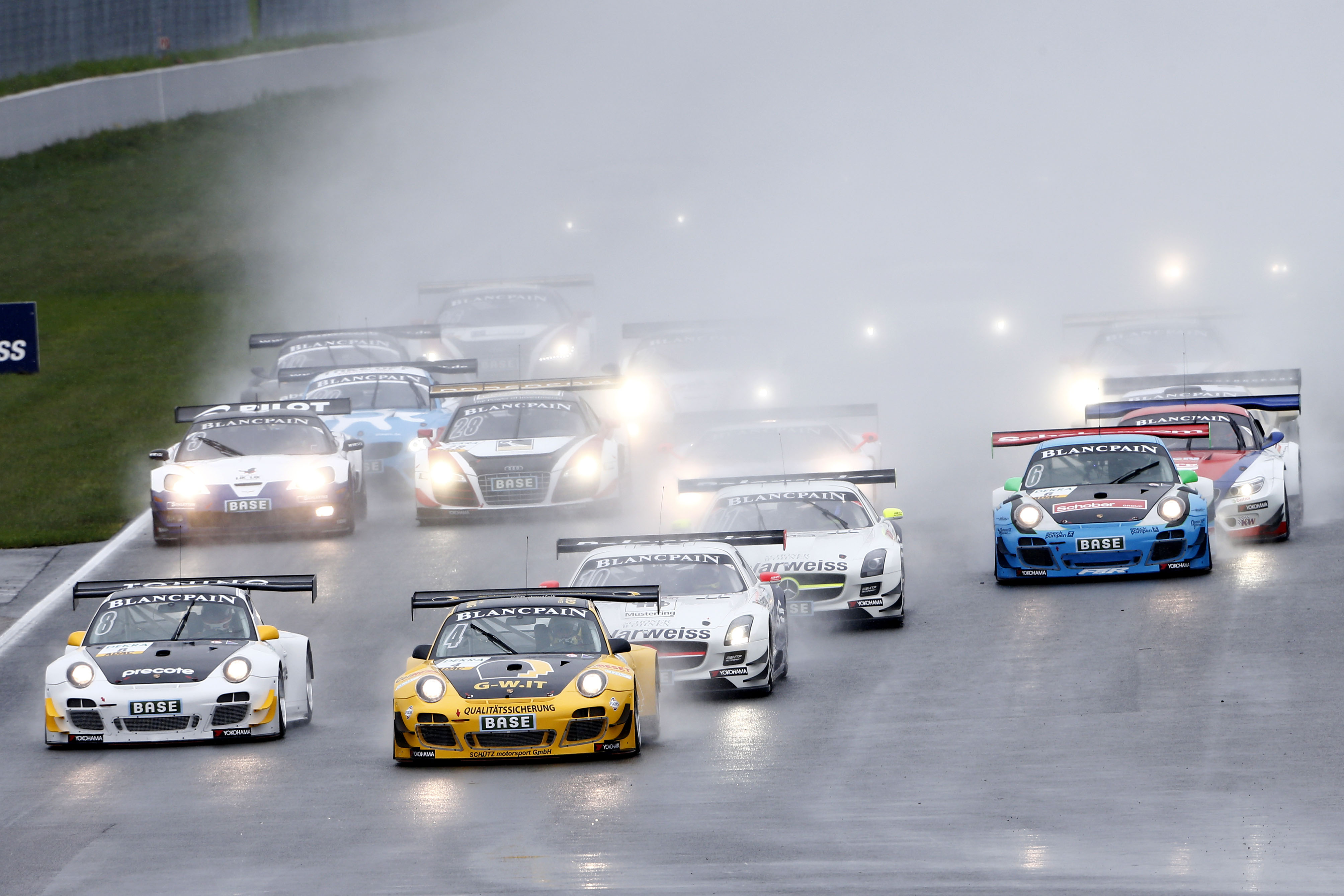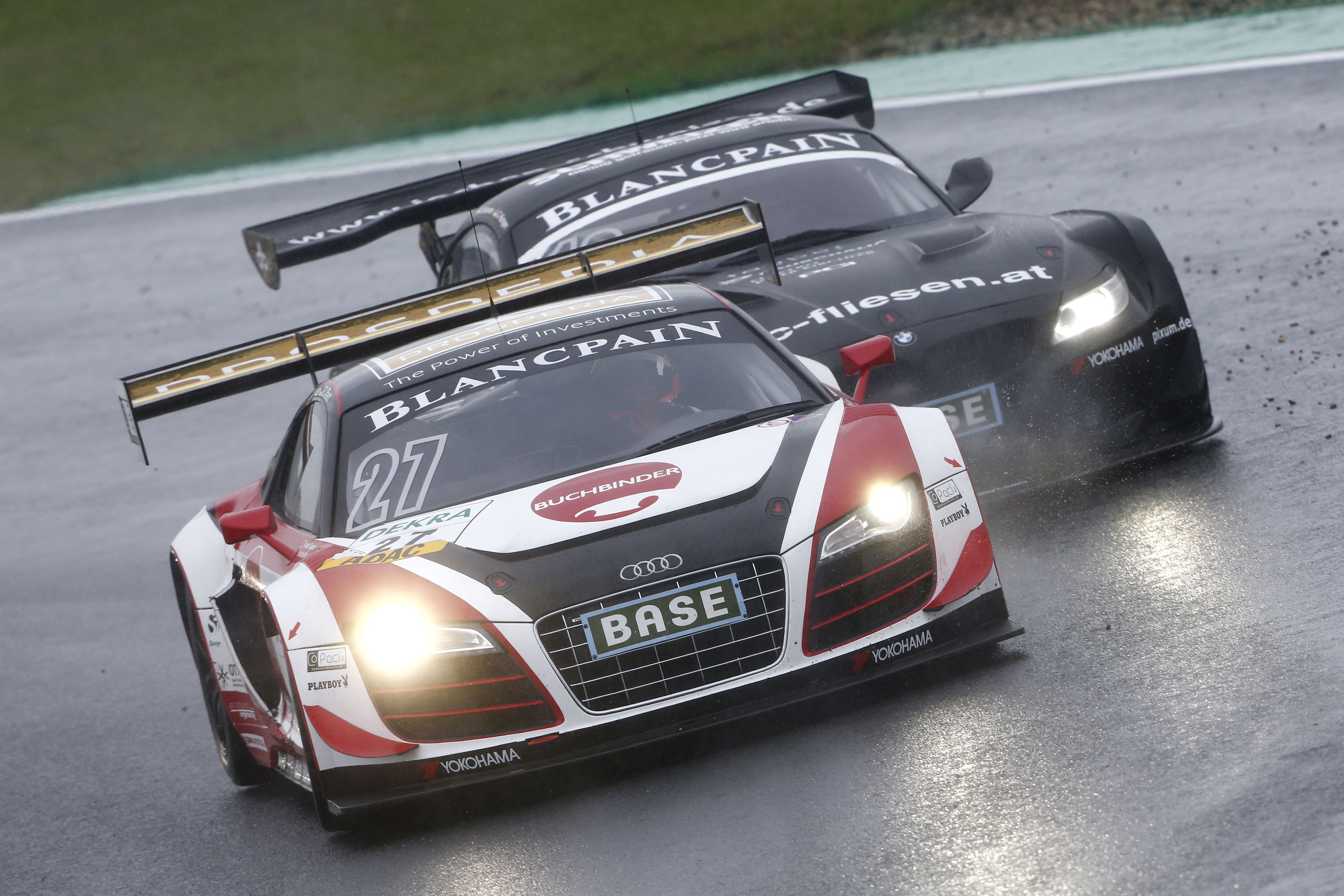 Die nasse Strecke in Oschersleben sorgte für Action von der ersten bis zur letzten Runde. Schon am Start ging es heiß her: Polesetter Maximilian Buhk (20, Dassendorf / Polarweiss Racing) im Mercedes-Benz und Porsche-Pilot Christian Engelhart (26 , Kösching / Team Geyer & Weinig / Schütz Motorsport) waren sich über die Vorfahrt in der ersten Kurve nicht einig. Lachender Dritter war Robert Renauer, der sich an die Spitze setzte und den Gegnern anschließend nur noch die Rückleuchten seines Porsche 911 zeigte. Bis zum Fahrerwechsel legte Renauer einen Vorsprung von 15 Sekunden zwischen sich und seine Verfolger, den ADAC GT Masters-Neueinsteiger Frommenwiler im Porsche und Sergej Afanasiev (25, RUS / Polarweiss Racing) im Mercedes-Benz SLS AMG. Nach dem Fahrerwechsel von Renauer auf Ragginger schmolz der Vorsprung des führenden Porsche rapide: Ragginger kämpfte durch einen Defekt am Auspuff mit Leistungsverlust und musste Markenkollege Farnbacher, der den Porsche 911 von Teamkollege Frommenwiler übernommen hatte, die Führung überlassen.