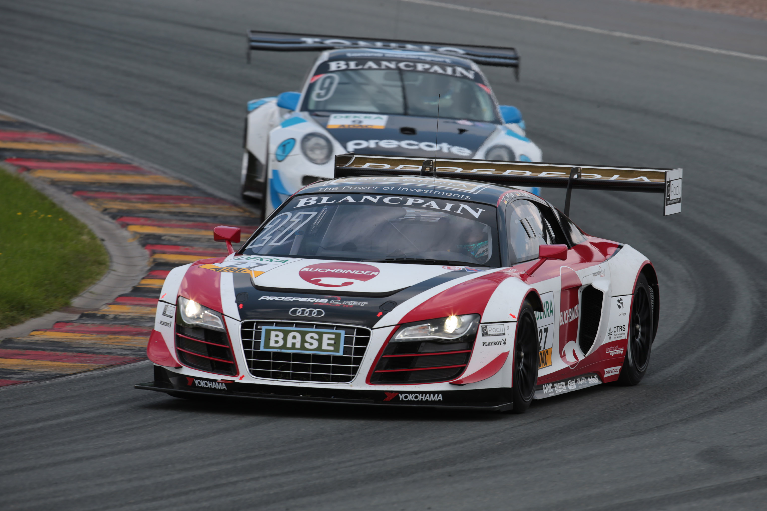 Auch die zweite Startreihe teilen sich im zweiten Rennen am Sonntag ein BMW und ein Audi. Dominik Baumann (20, A / PIXUM Team Schubert), Sieger vom letzten Rennen in Spa-Francorchamps, geht als Dritter vor dem ehemaligen ADAC GT Masters-Champion Christopher Haase (25, Kulmbach / Prosperia C. Abt Racing) im Audi R8 ins Rennen. Nicolas Armindo (31, F / Team Geyer & Weinig) qualifizierte sich im Porsche 911 für Startplatz fünf und teilt sich die dritte Startreihe mit dem Audi des ehemaligen Formel-1- und DTM-Piloten Markus Winkelhock (32, Berglen-Steinach / Prosperia C. Abt Racing).
