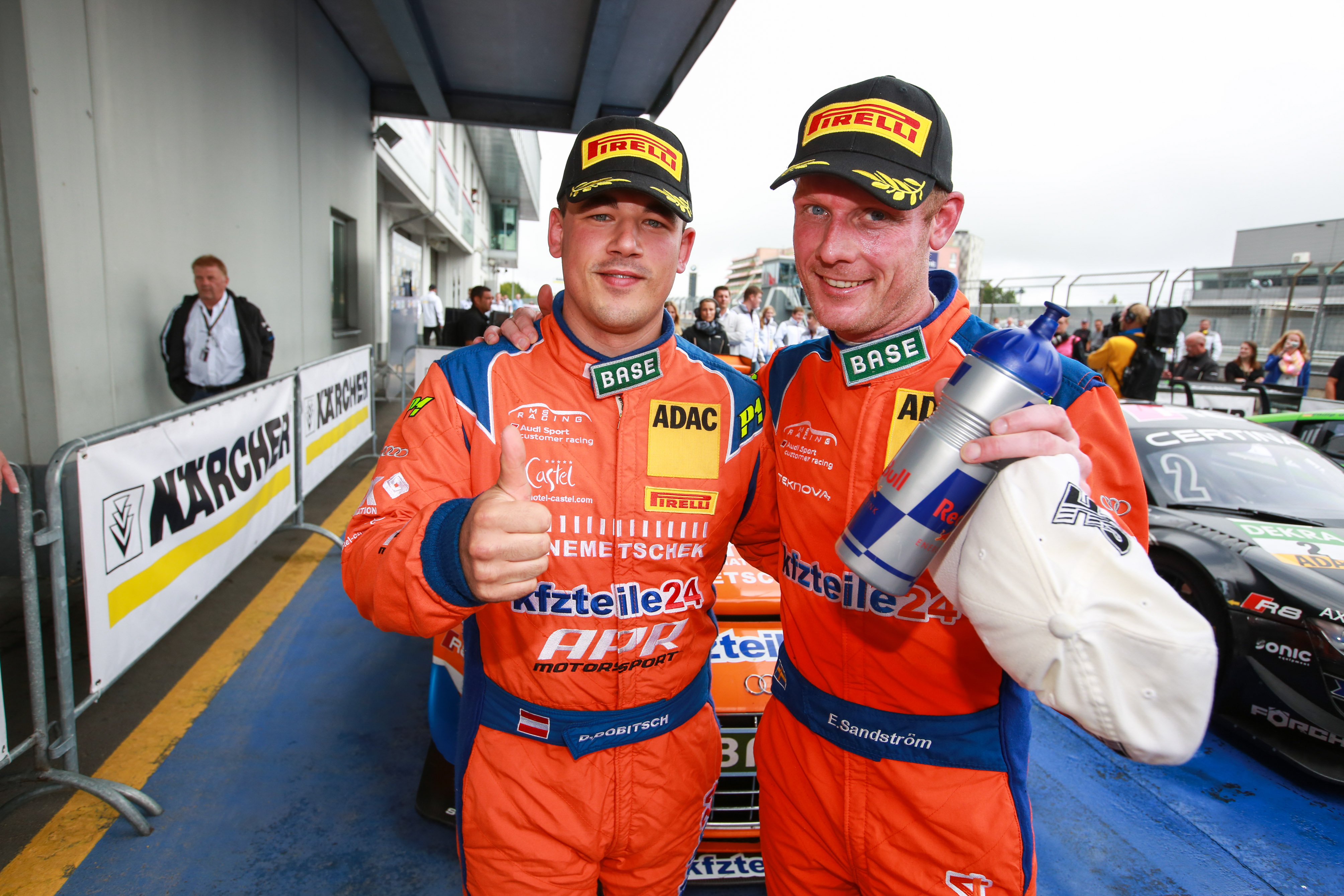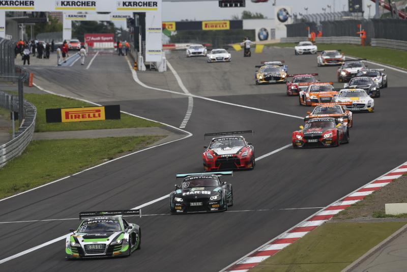 Nürburg: Two downpours and a safety car deployment at the Nürburgring made for spectacular racing in the ADAC GT Masters. The Super Sports Cars League returned from its summer break to changeable weather which caused some thrills and spills. Jordan Lee Pepper (19, ZA) and Nicki Thiim (26, DK) in a C.Abt Racing Audi R8 had the best strategy in the tough conditions, caused by two showers of rain and a track that began to dry out in between the downpours. They were first to cross the finish line, but the Audi drivers were handed a 30-second time penalty for an infringement of the rules during a safety car deployment and assigned fifth place after the race. That gave victory in the ninth race of the season to Daniel Dobitsch (31, AUT) and Edward Sandström (36, S), who secured their first ADAC GT Masters race win together in the kfzteile24 MS RACING Audi R8. Rahel Frey (29, CH) and Philip Geipel (28, Plauen, both YACO Racing) stuck with slicks for the whole race and placed second ahead of Stefan Wackerbauer (19, GER) and Kelvin van der Linde (19, ZA) in the C.Abt Racing Audi R8.